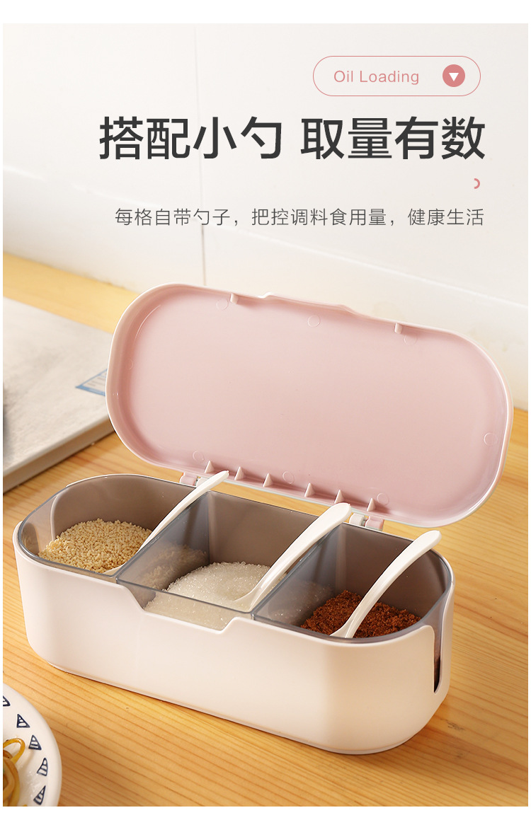 Kitchen Supplies Transparent Seasoning Box Three Grid Seasoning Box Three In One With Spoon Seasoning Can Set,