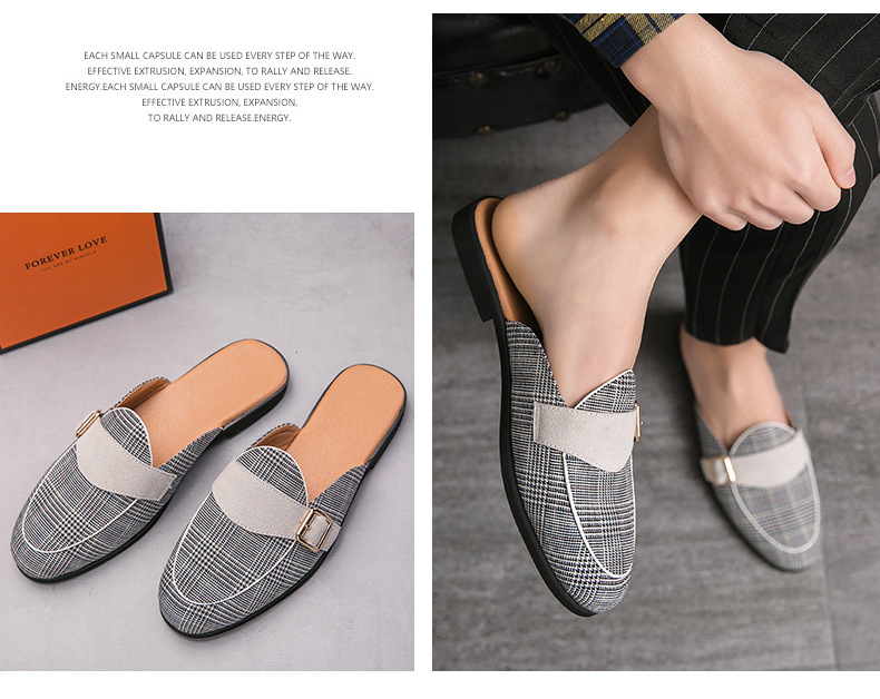 XRS-2020-17 Canvas Man Loafer Slides Elegant Casual Shoes Lightweight Half Shoes for Man Breathable Slip-on Mules Slippers