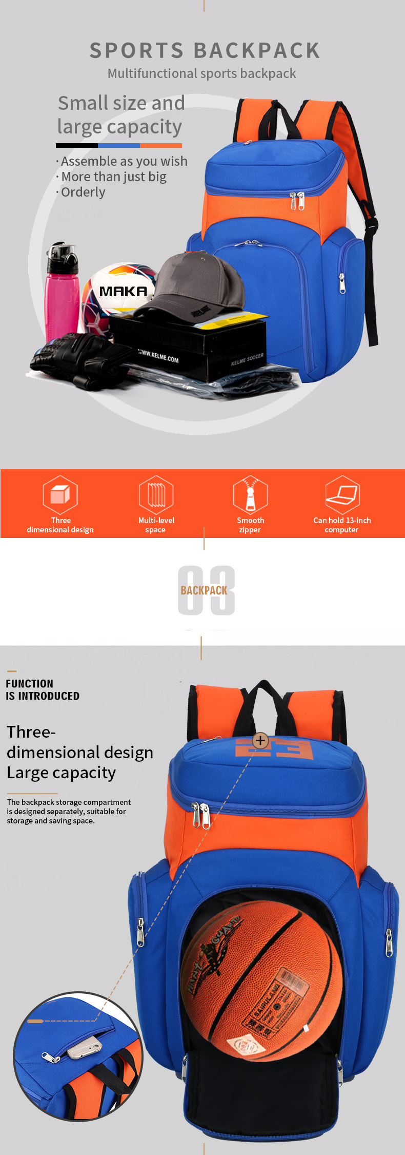0054 Basketball Backpack Hiking Bag Daypack Sport Backpack sports Shoulder Bag for Yoga Camping Traveling Swimming Volleyball