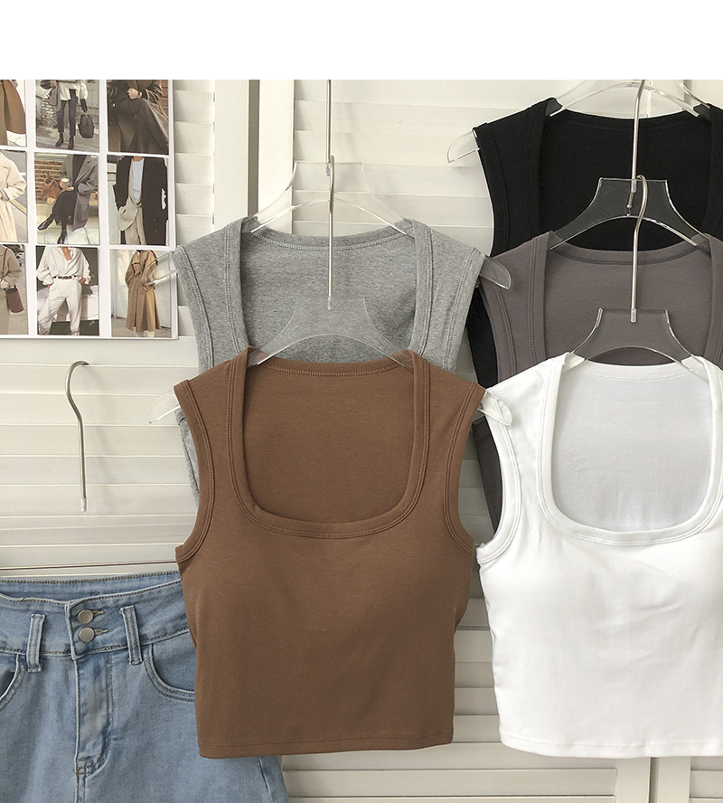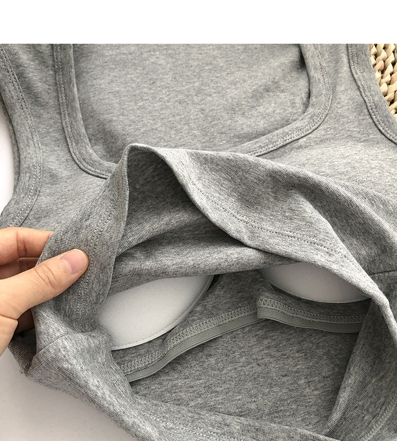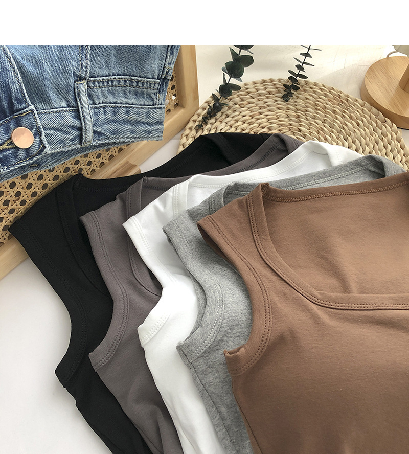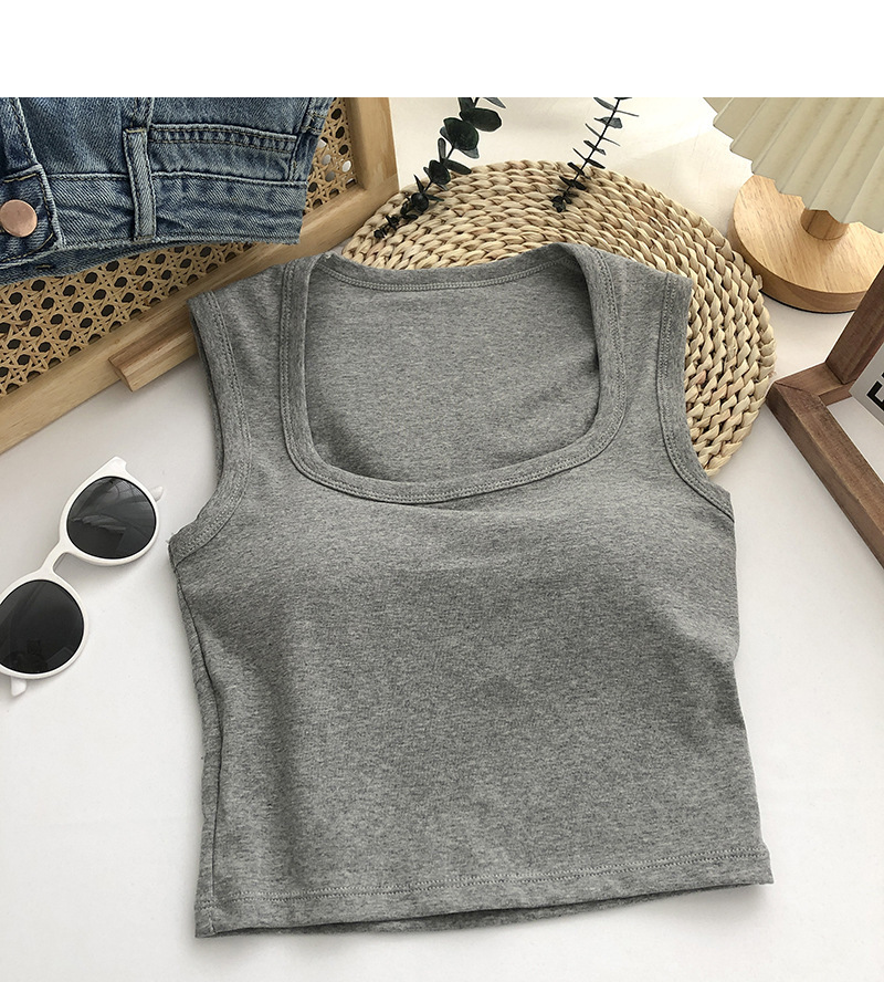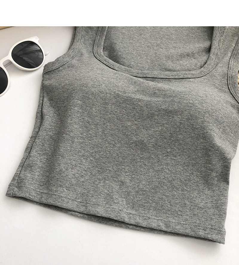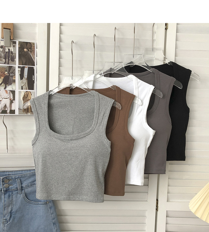 8833 Solid Color Sport Basic Vest Stretch Plain Ribbed Cotton Sleeveless Women Crop U neck Tank Top