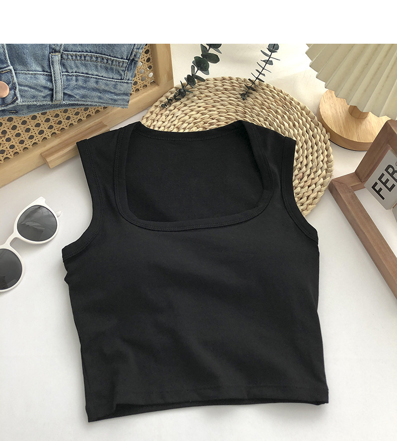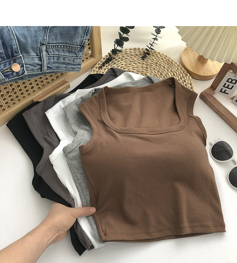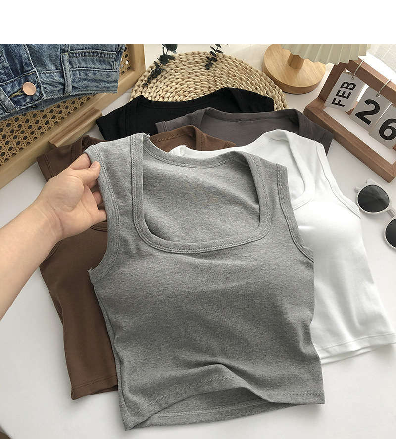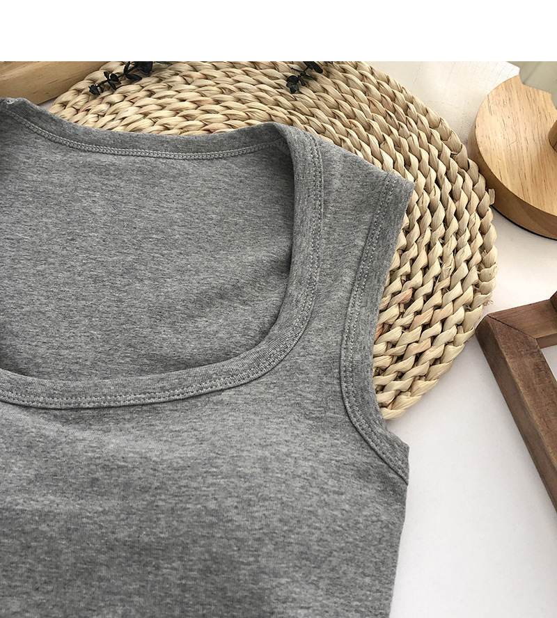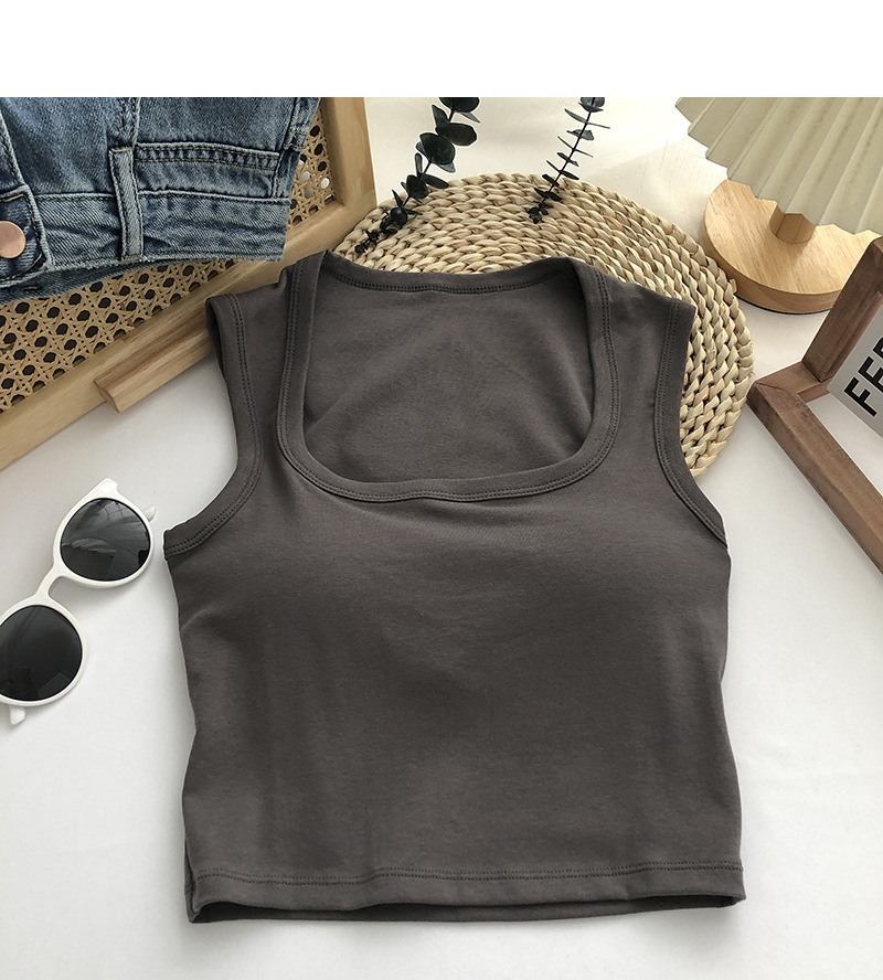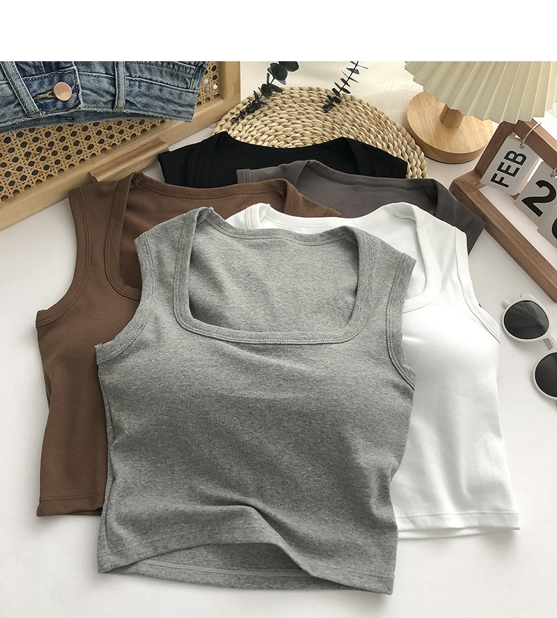 8833 Solid Color Sport Basic Vest Stretch Plain Ribbed Cotton Sleeveless Women Crop U neck Tank Top