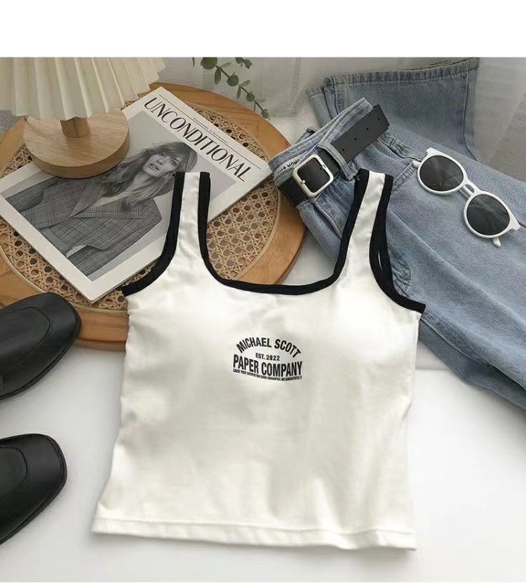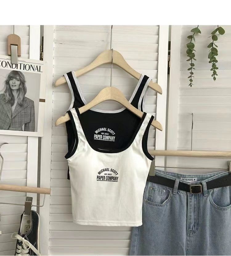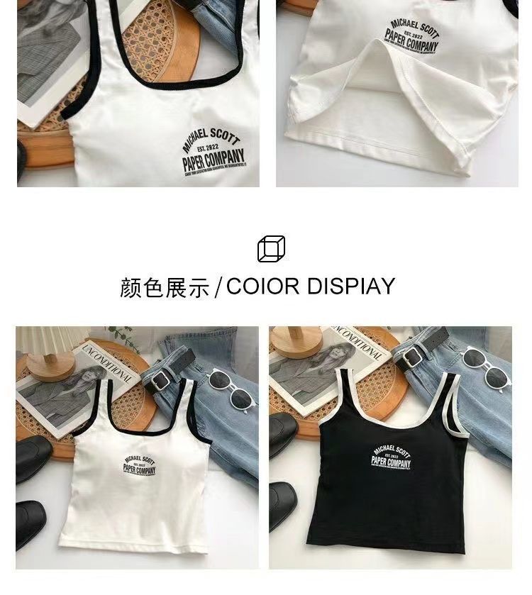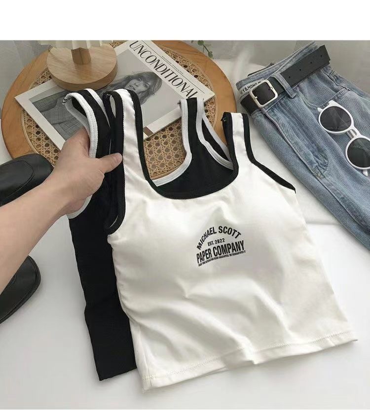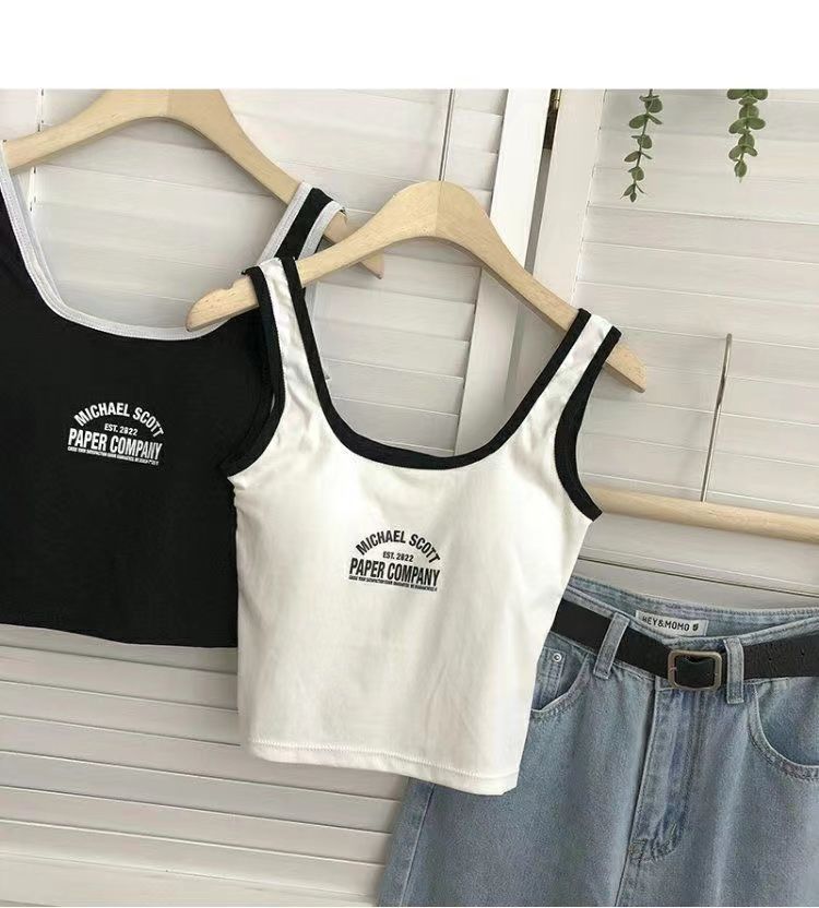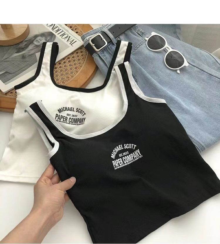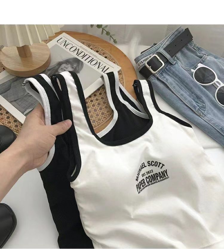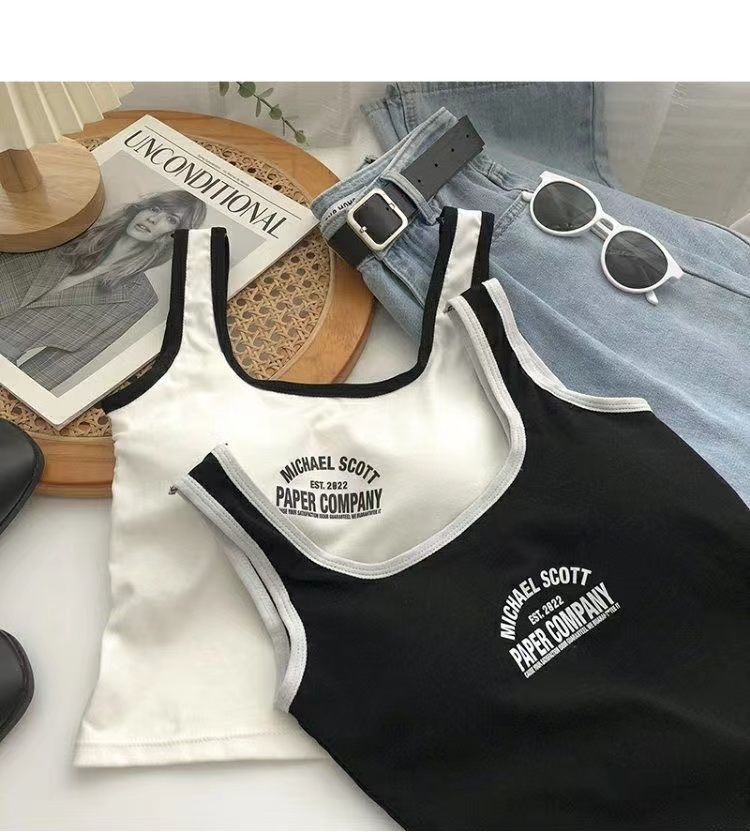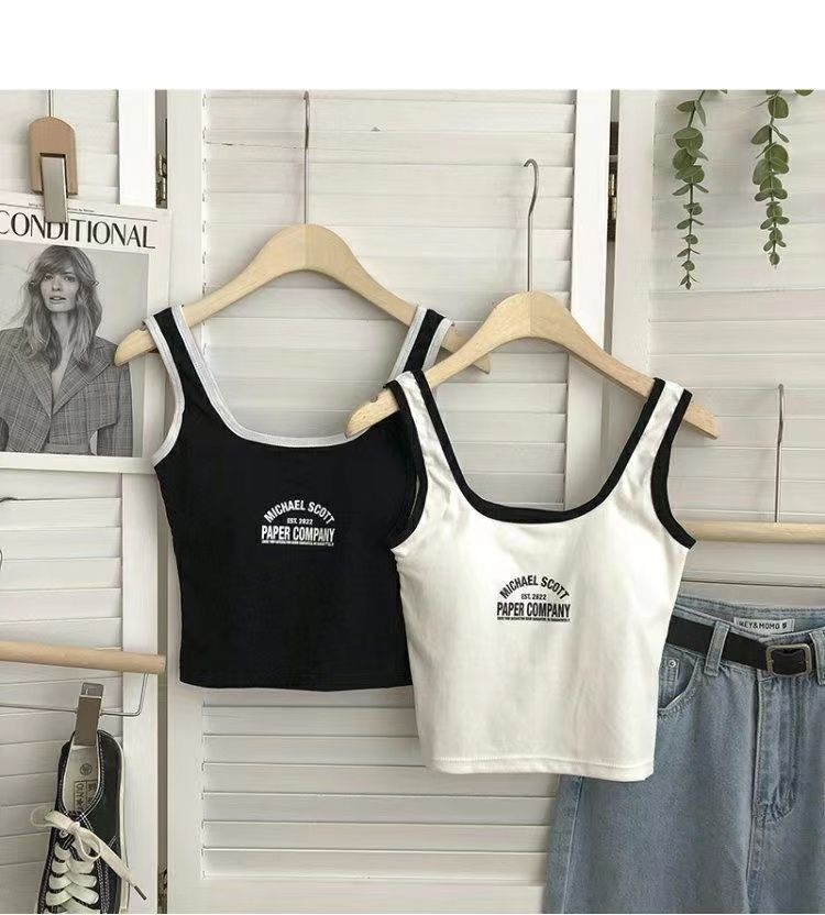 766 Printed Letter Suspender Tank Top with Chest Pad for Women to Wear with Sexy Hot Girls