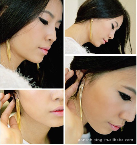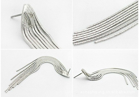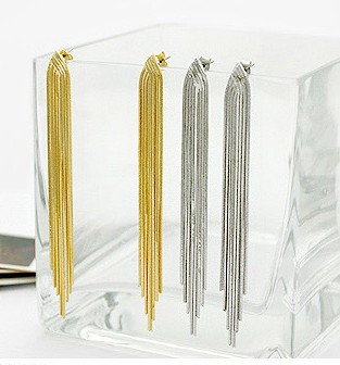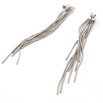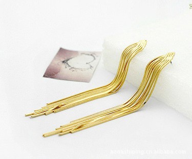 00189-1 Simple Fashion Design Custom Plated Stainless Steel Long Drop Sleek Chain Tassel Hanging Earrings