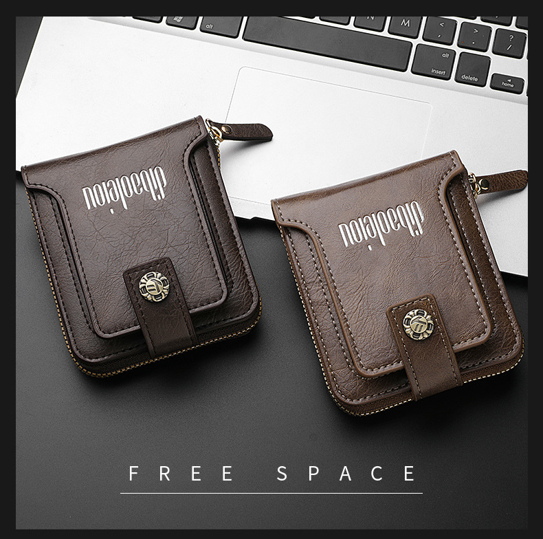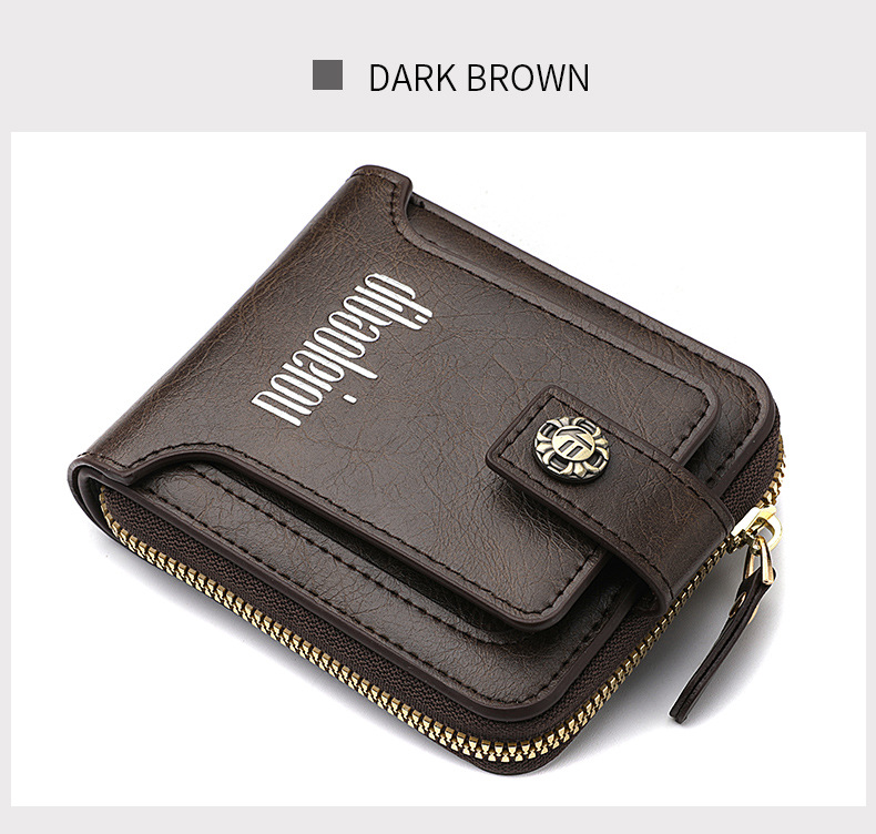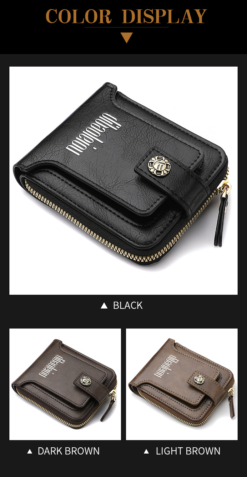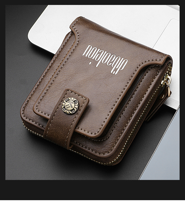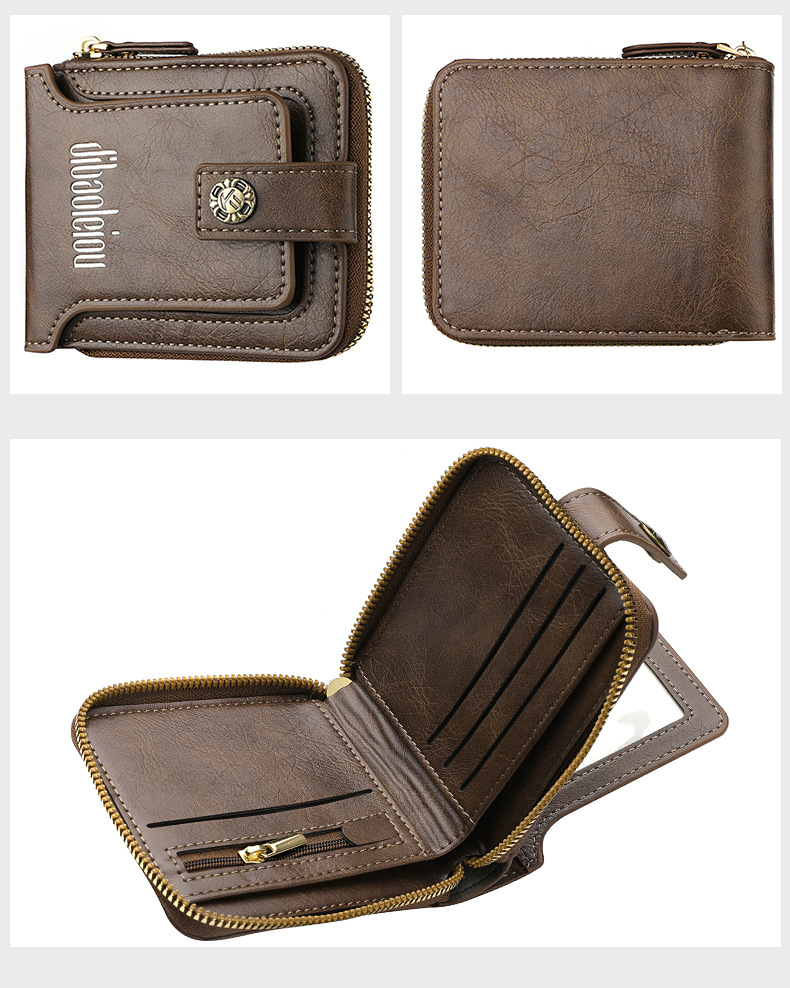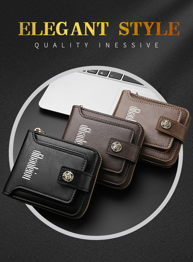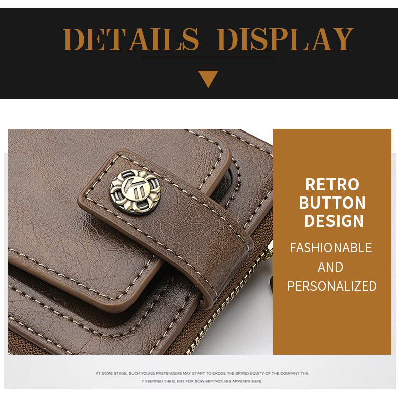 k3283 Vintage Premium Crazy PU Leather Men Bi-fold Short Wallet Double Zippers Wallet With Removable Coin Purse Chain