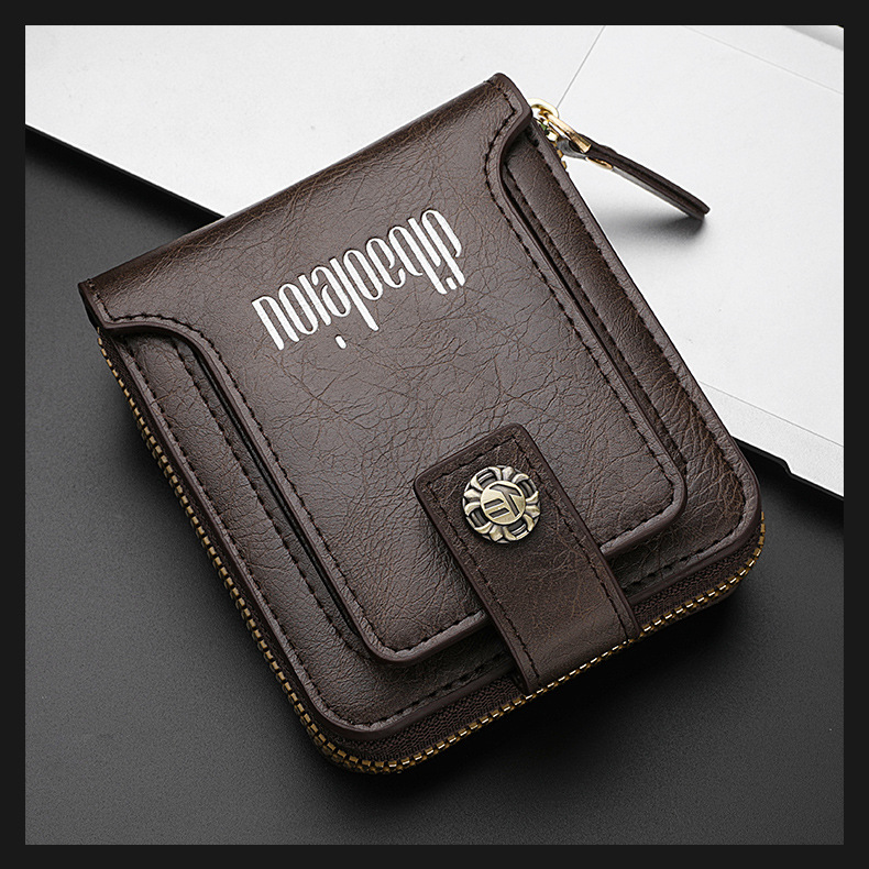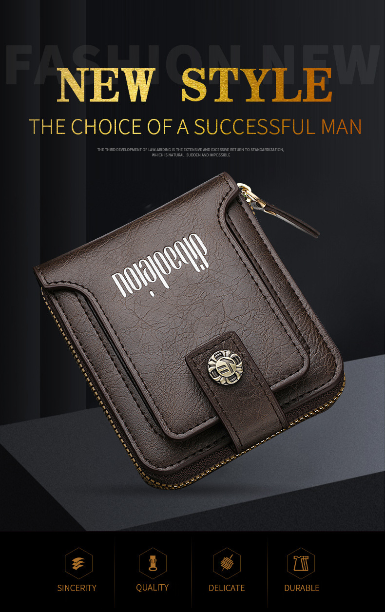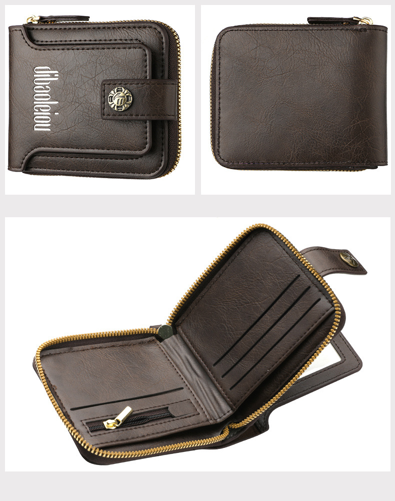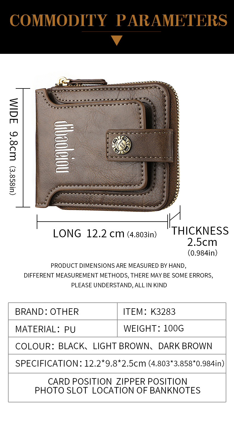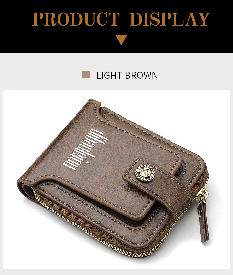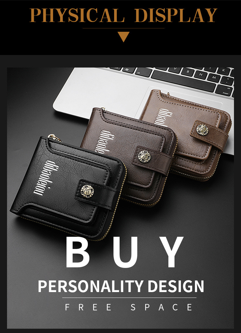 k3283 Vintage Premium Crazy PU Leather Men Bi-fold Short Wallet Double Zippers Wallet With Removable Coin Purse Chain