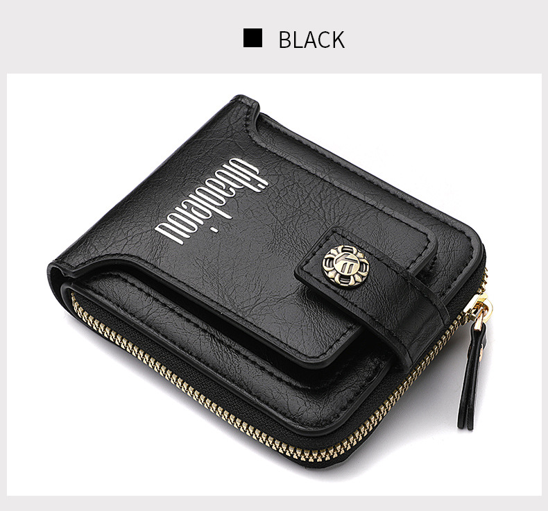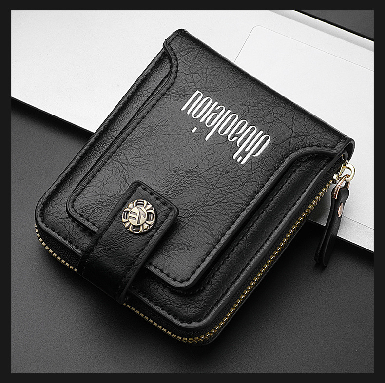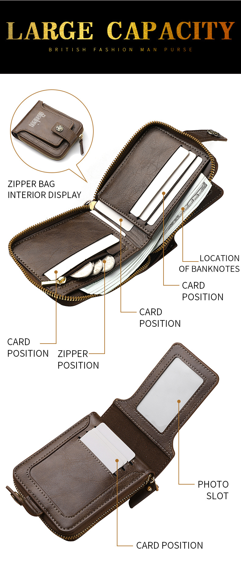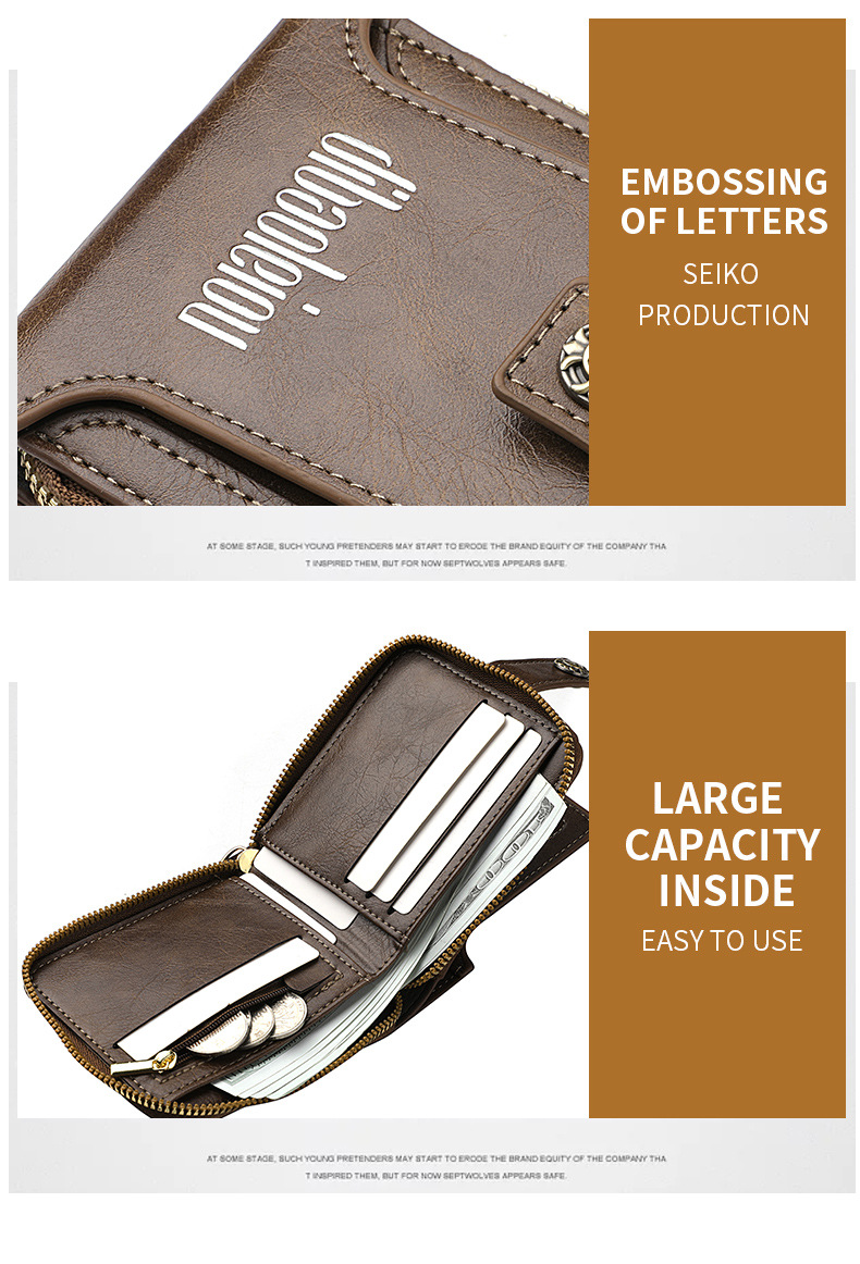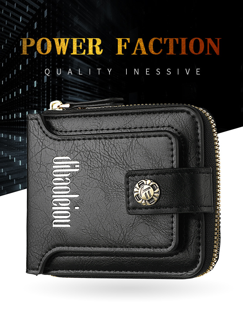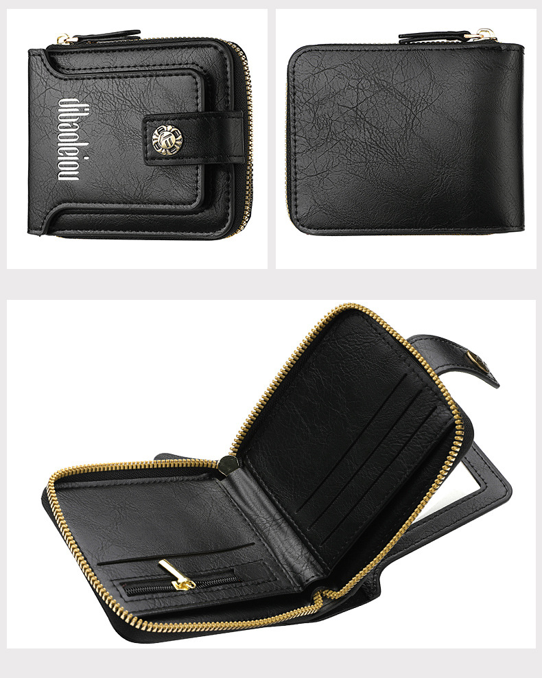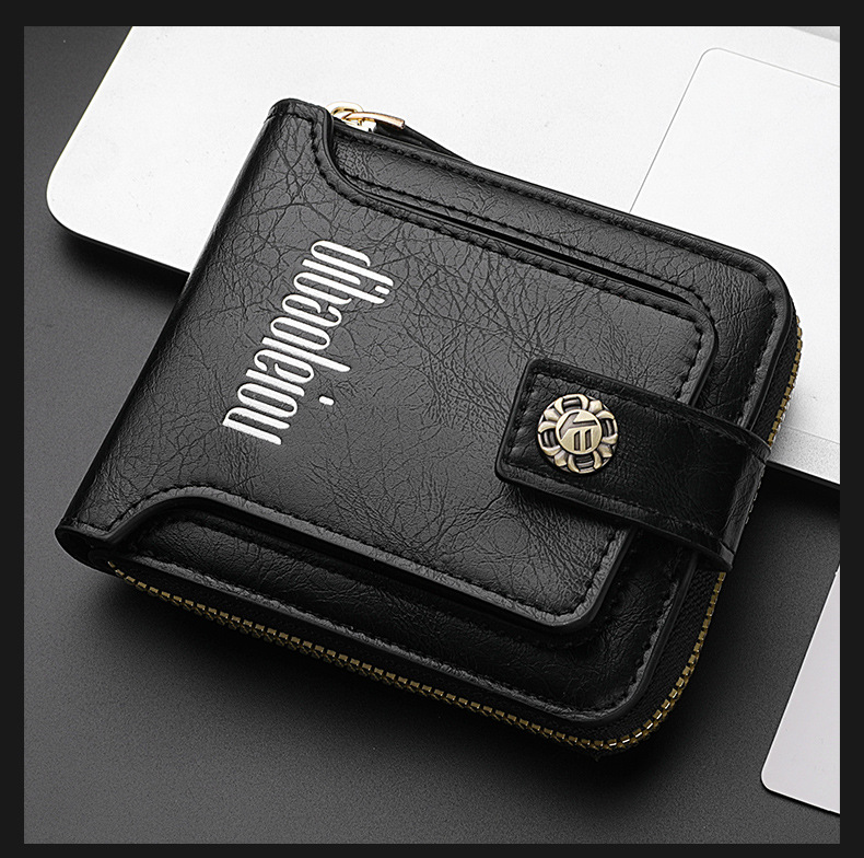 k3283 Vintage Premium Crazy PU Leather Men Bi-fold Short Wallet Double Zippers Wallet With Removable Coin Purse Chain