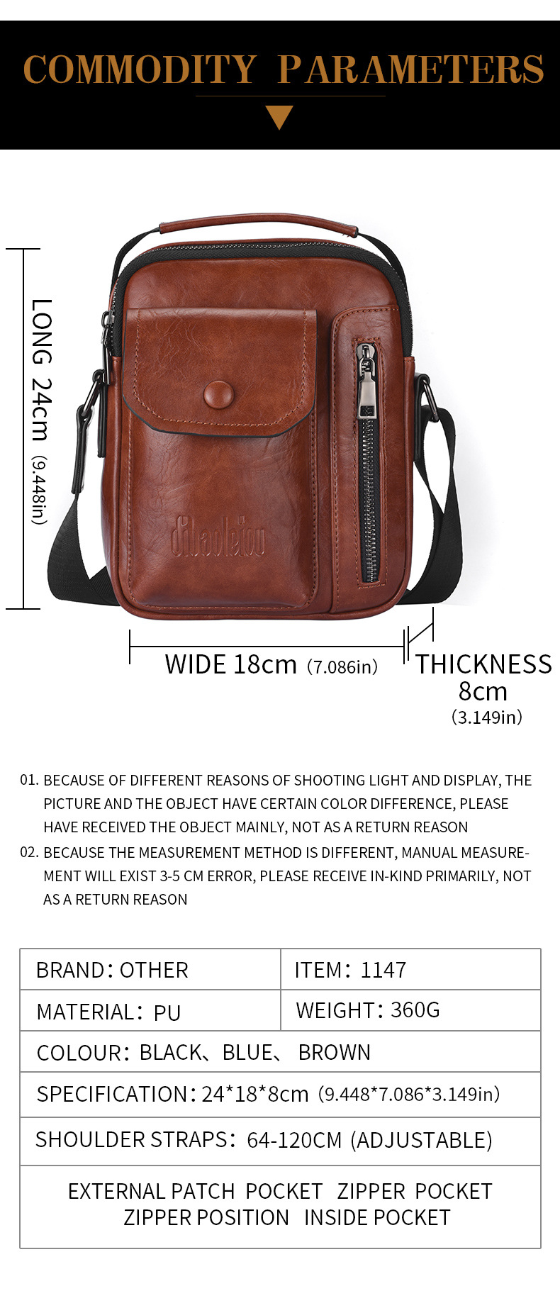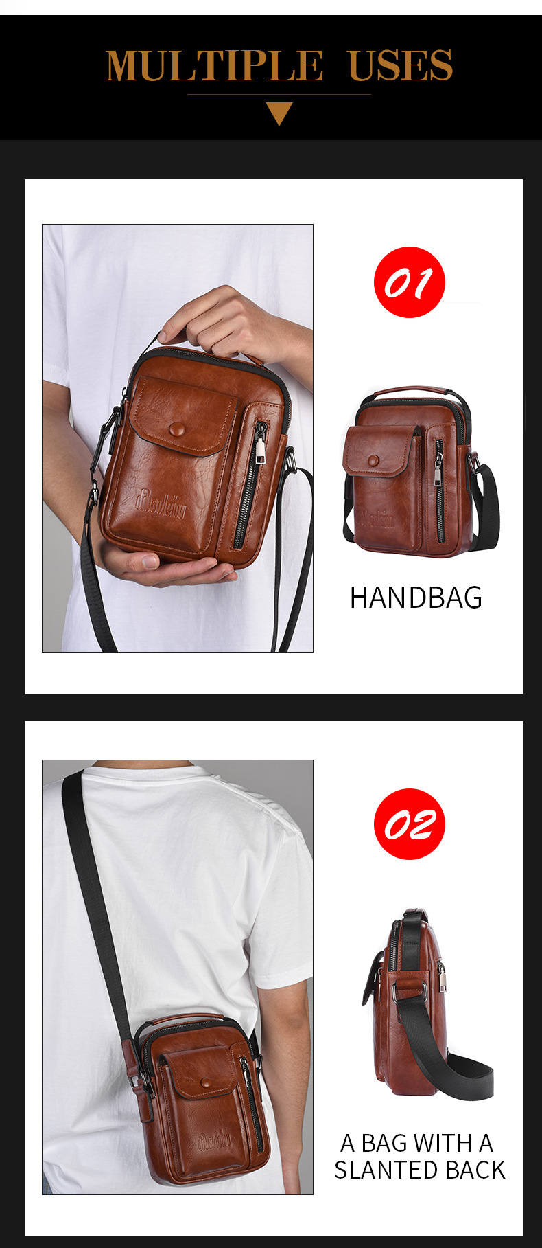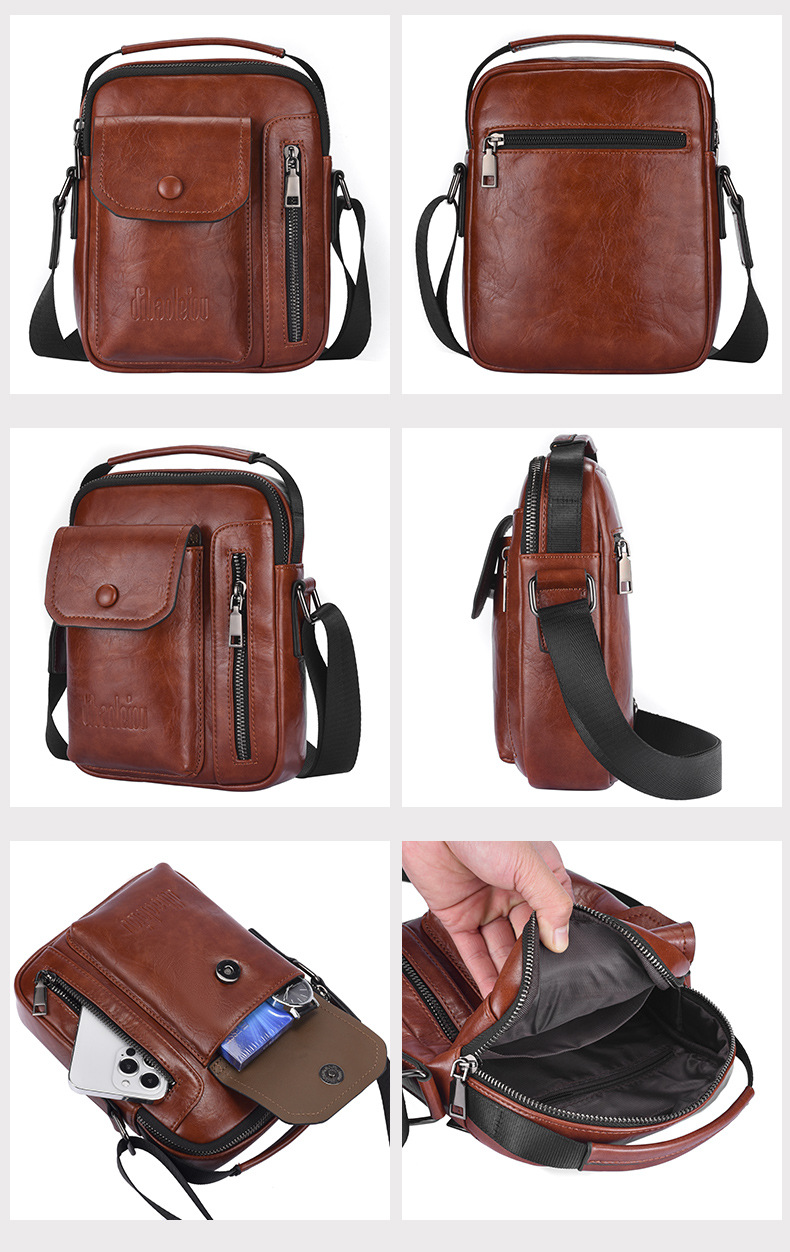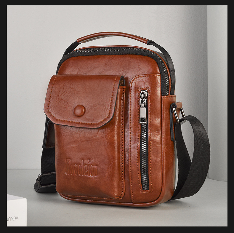 1147 Luxury Business Man Sling Bag Vintage Soft Cow Leather Messenger Bag