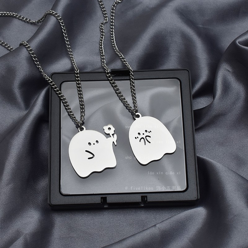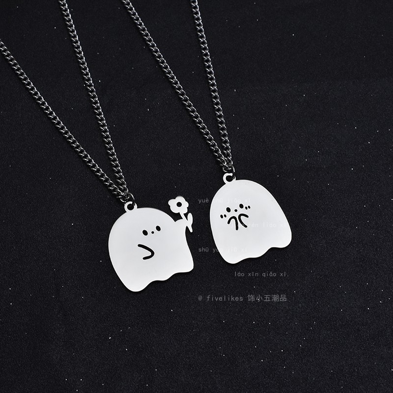 F5039 Romantic Love Ghost Necklace Stainless Steel Interesting couple set pendant Give Flowers Confession Couple Pendant Necklace
