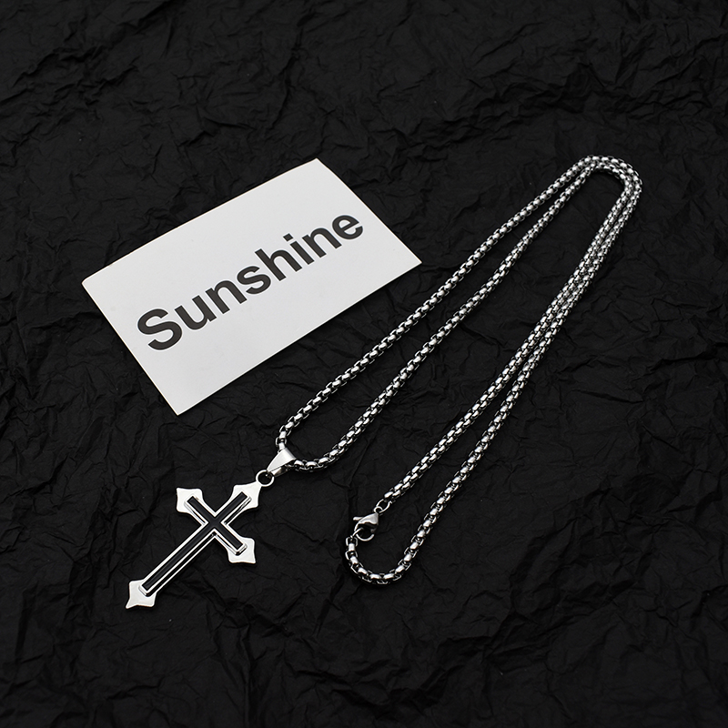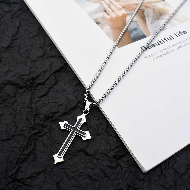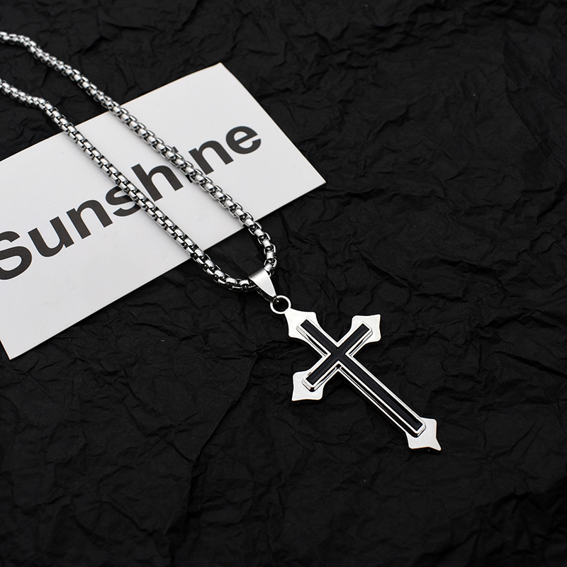 23547 Good Quality Silver Plated Cross Necklace Stainless Steel Crucifix Pendant Man Necklace for Men