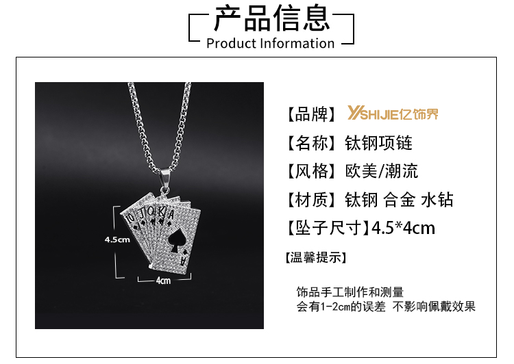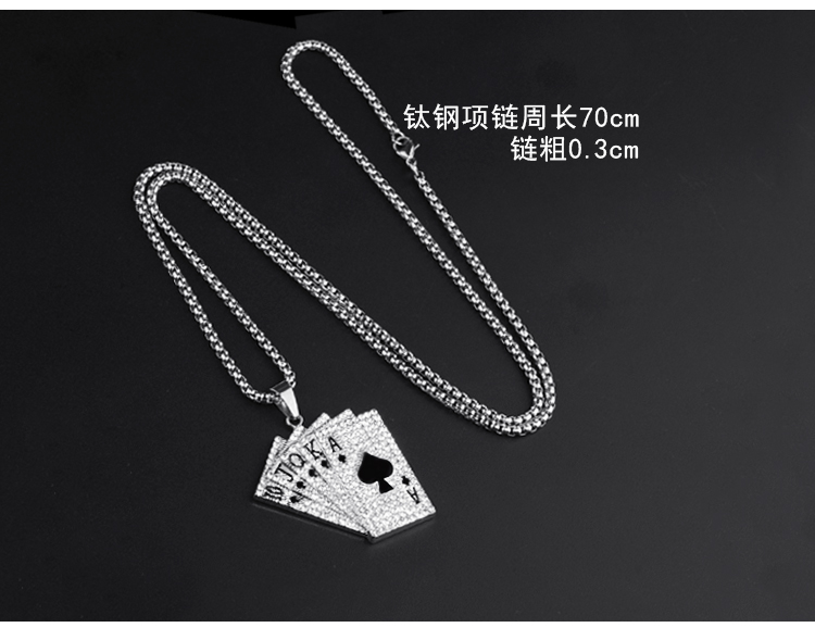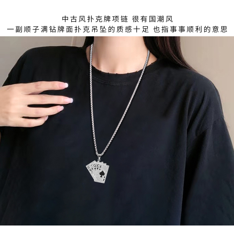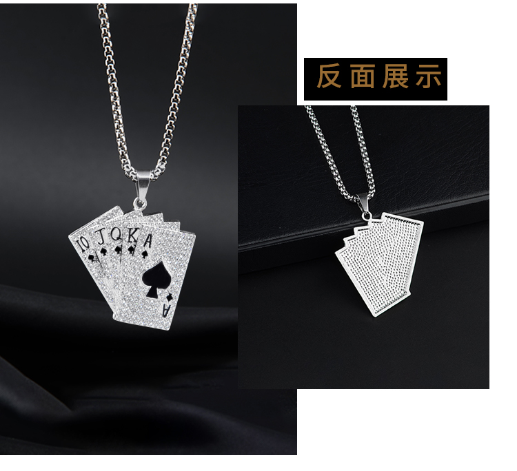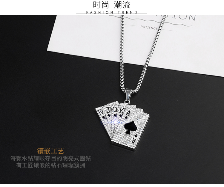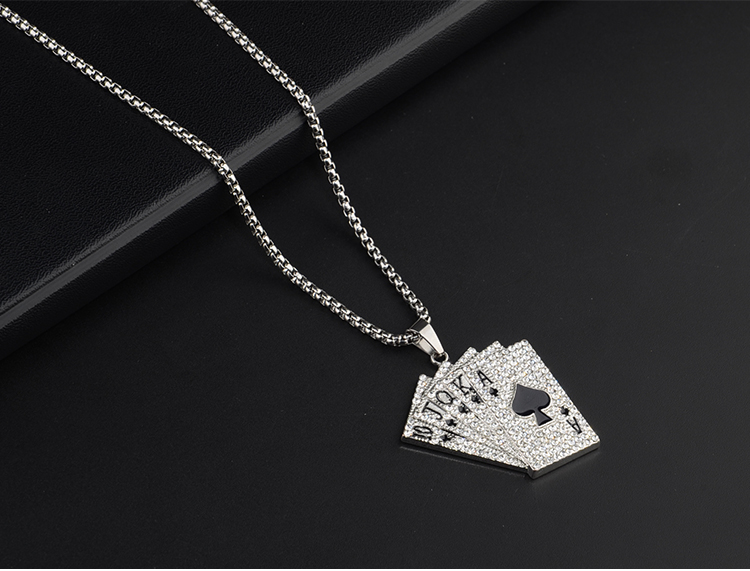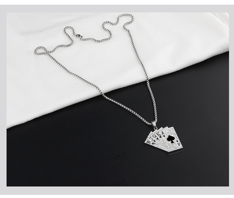 345 Hip Hop Square Plate Pendant Choker Necklace Silver Plated Stainless Steel Box Chain Full Diamond Inlay Spades Poker Necklace