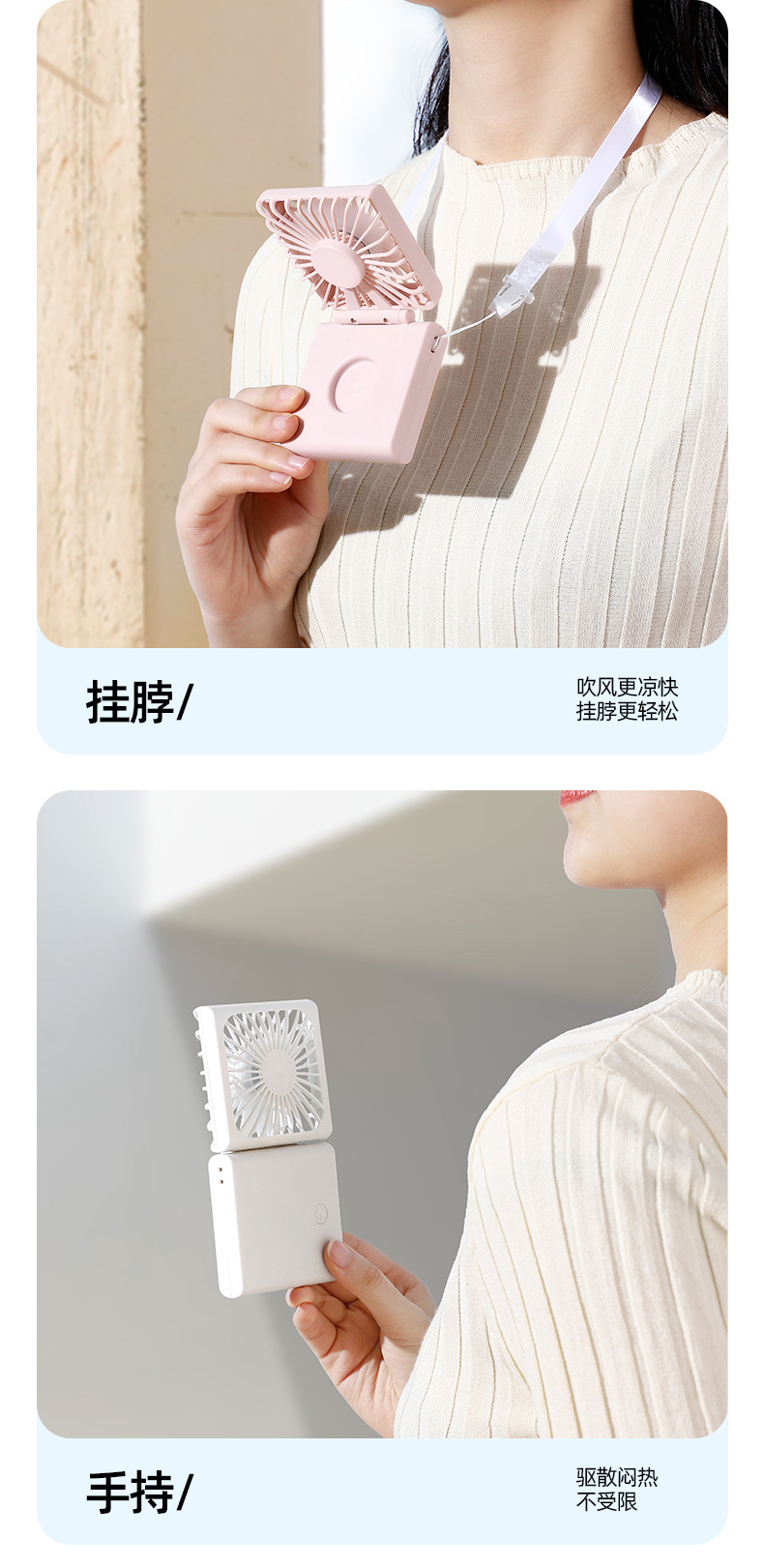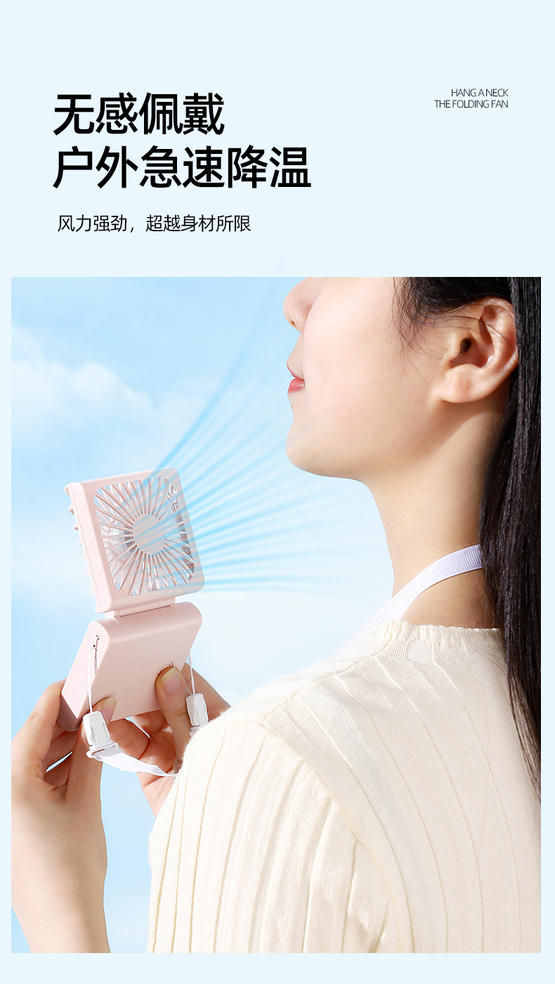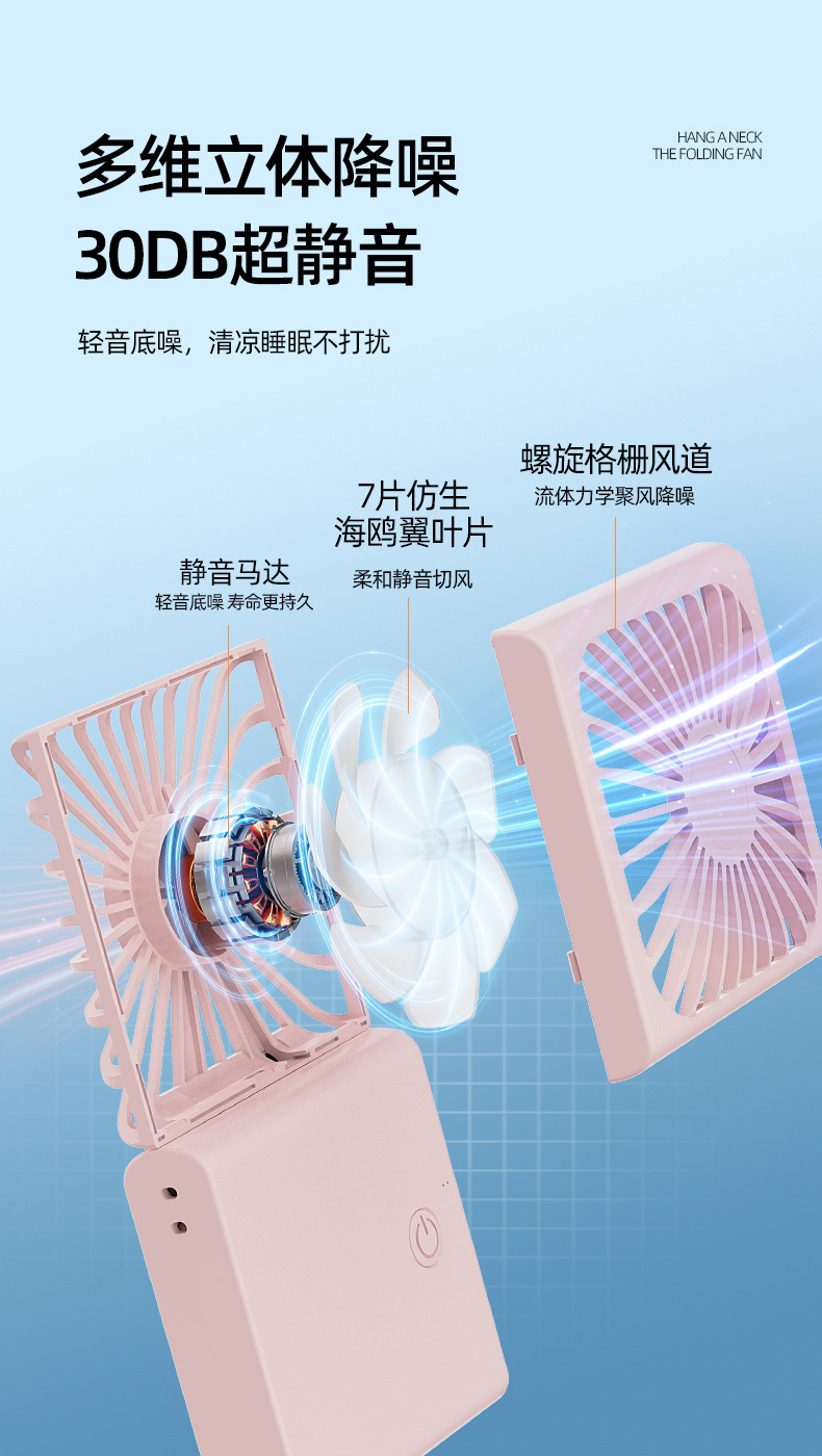 BLK309 Portable Neck Fan Mini Quiet Handheld Personal Foldable USB Rechargeable Fan Operated for Home Office Outdoor Travel, 1500mAh Power Bank Hands Free Necklace Fans