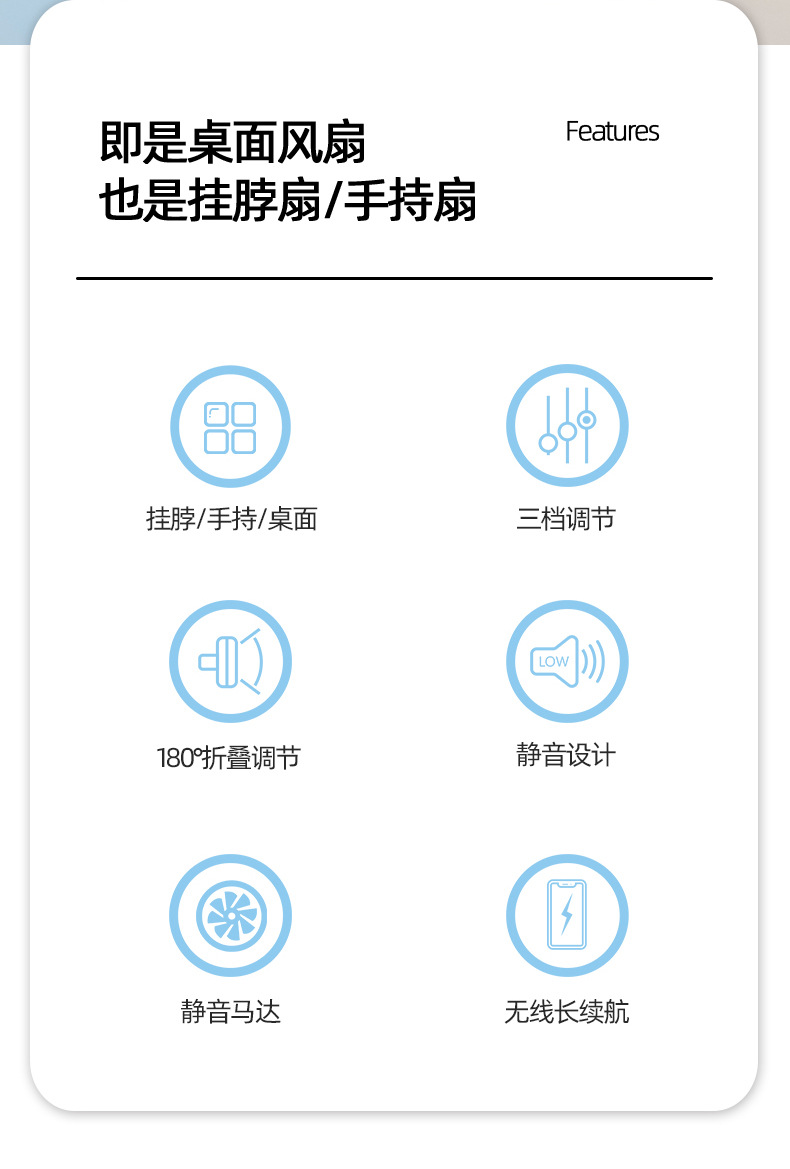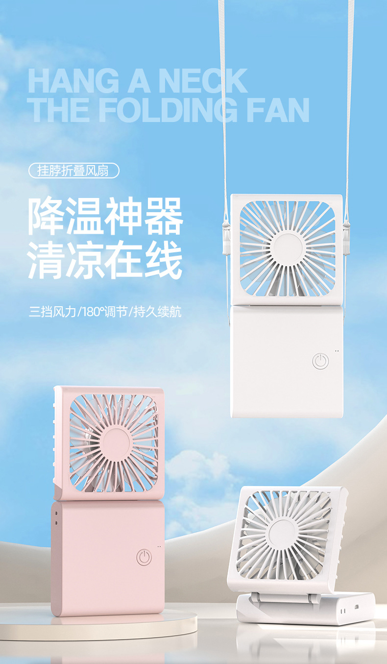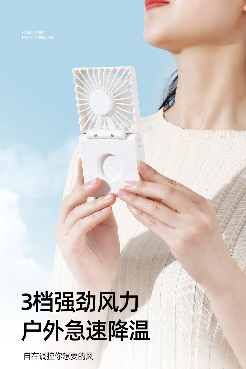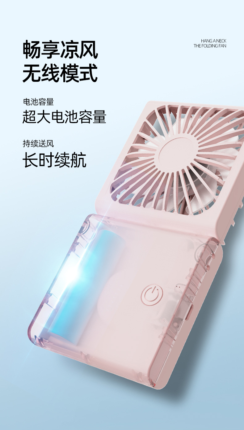 BLK309 Portable Neck Fan Mini Quiet Handheld Personal Foldable USB Rechargeable Fan Operated for Home Office Outdoor Travel, 1500mAh Power Bank Hands Free Necklace Fans
