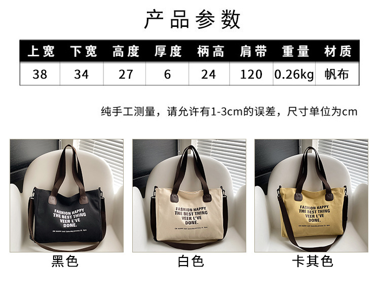 463 New Canvas Tote Bag Summer Travel Messenger Crossbody Bags with Large Capacity Girls Shoulder Bag