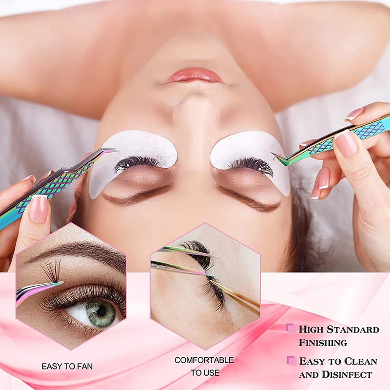 Our curved tweezers grasp the lash completely, with no worry of the lash slipping through the forceps. Light weight so does not cause hand fatigue