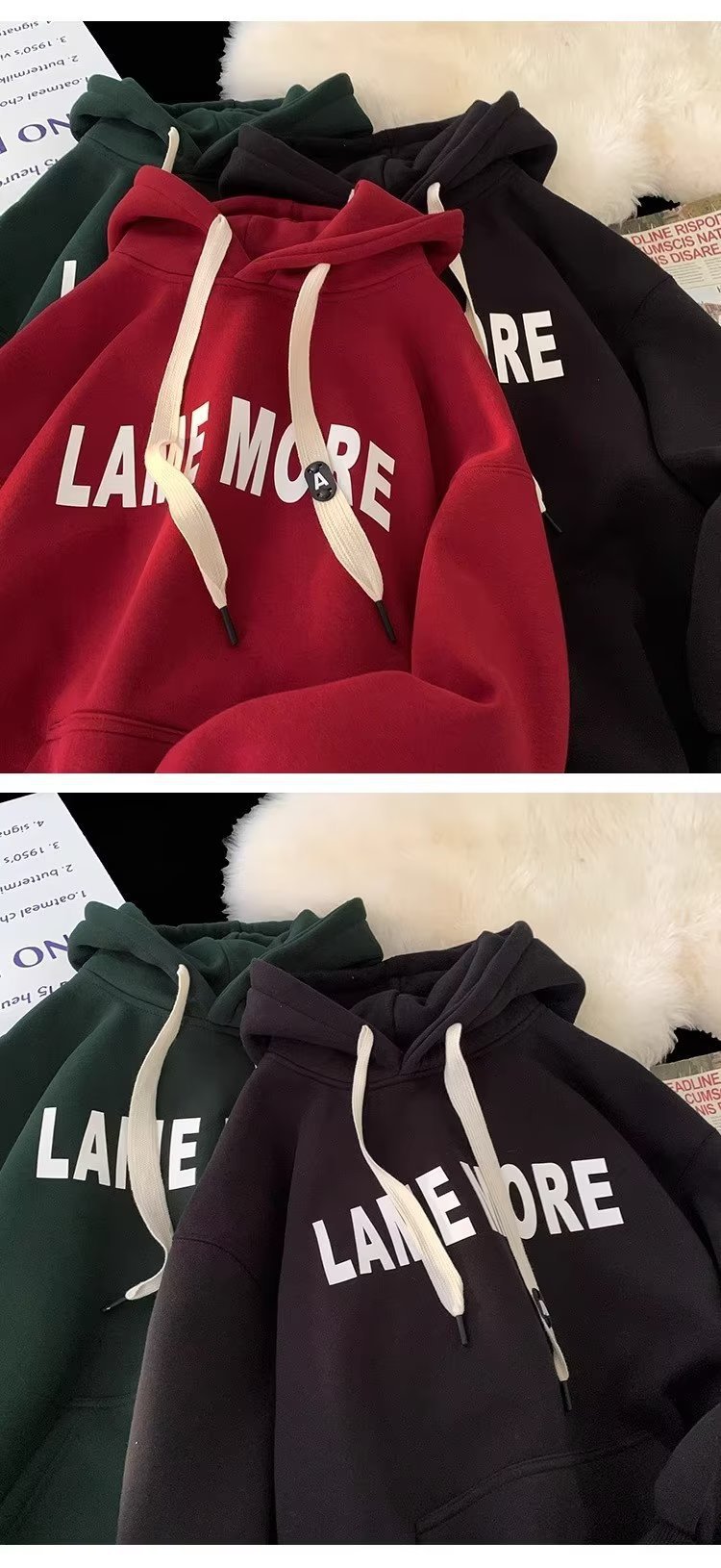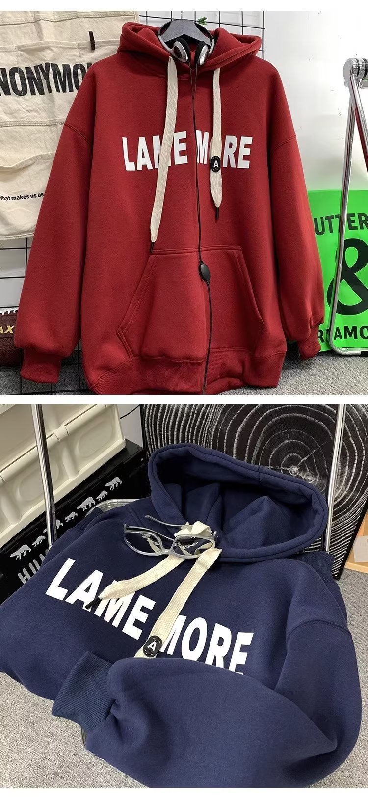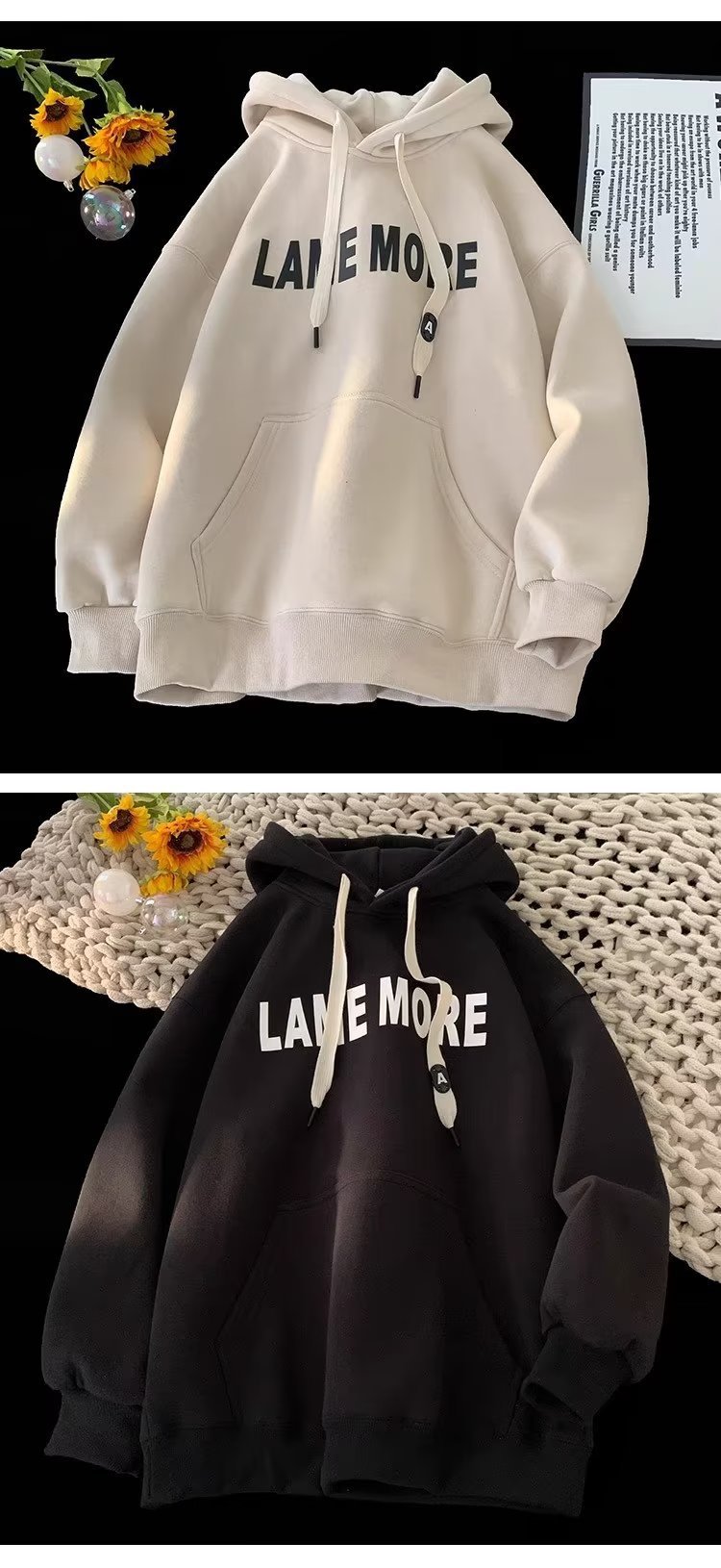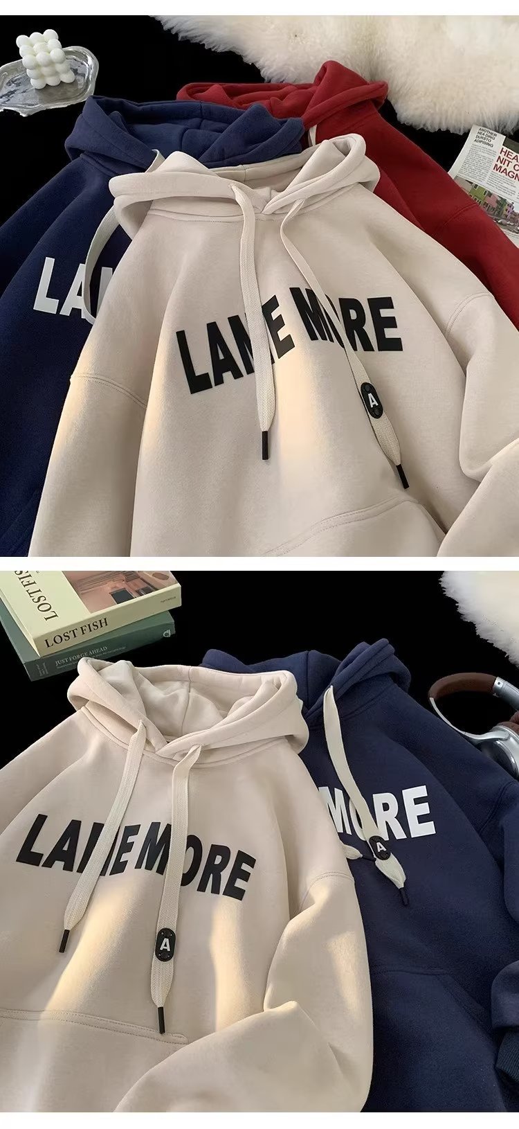 Y223 Autumn Winter Cotton Letter Hoodie Thickened And Loose Fitting Grey Letter Hooded Sweatshirts