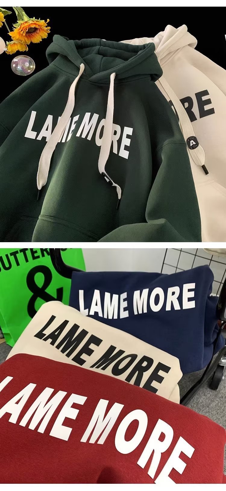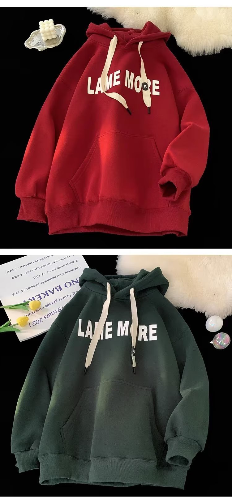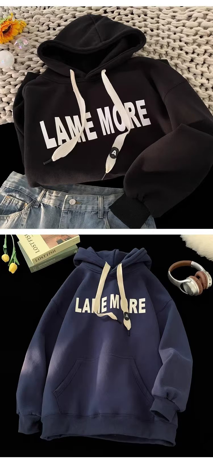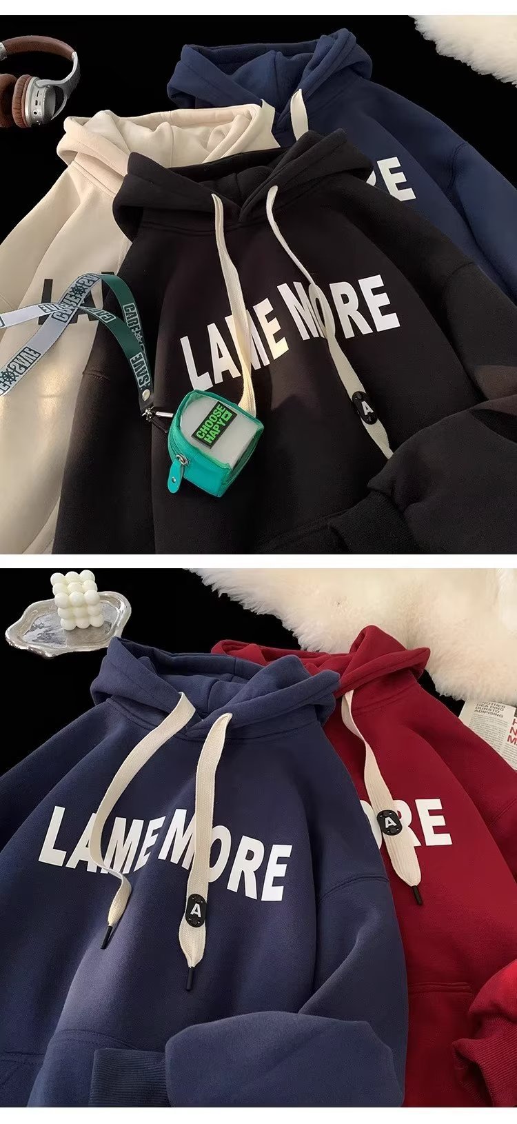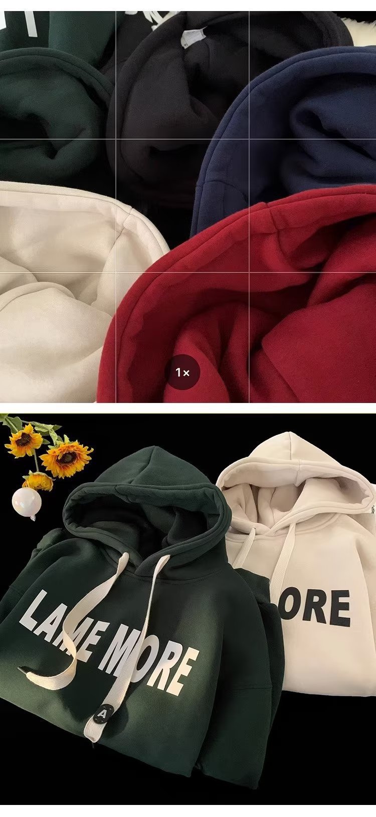 Y223 Autumn Winter Cotton Letter Hoodie Thickened And Loose Fitting Grey Letter Hooded Sweatshirts