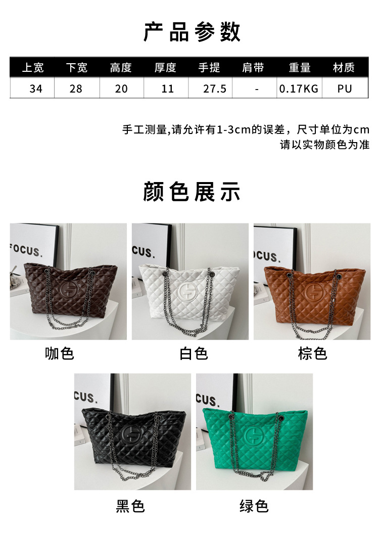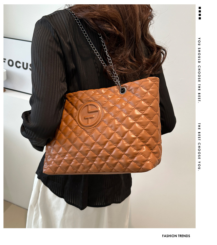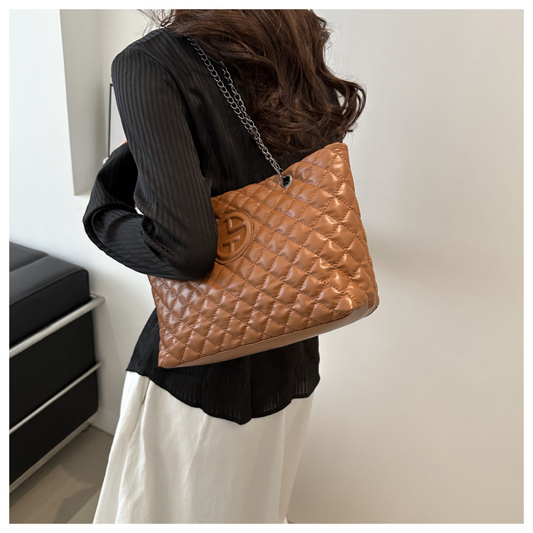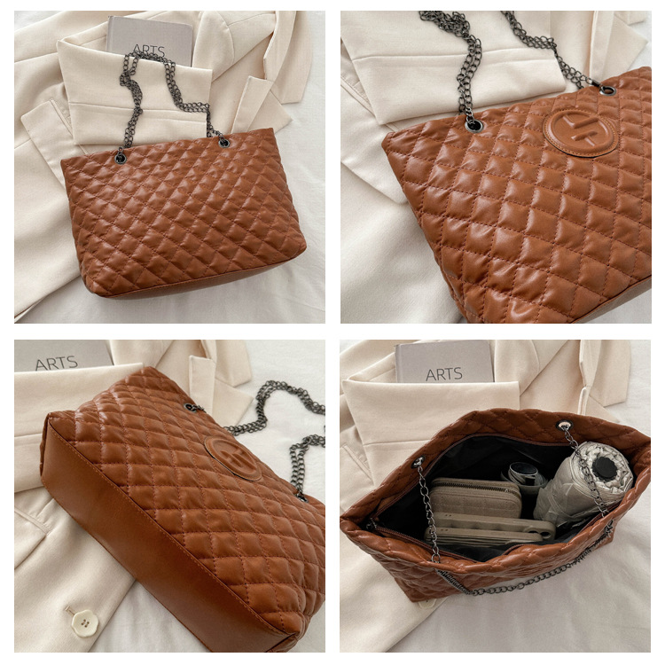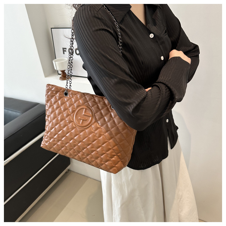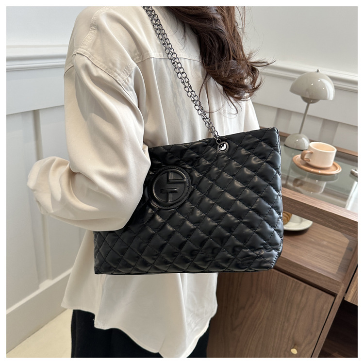 ty6480 Women's New Printed Tote Bag Pure Color Large Capacity Single Shoulder Bag Pu Leather Soft Frame Handbag