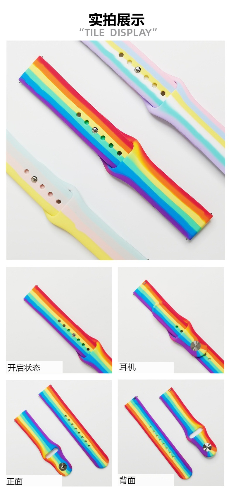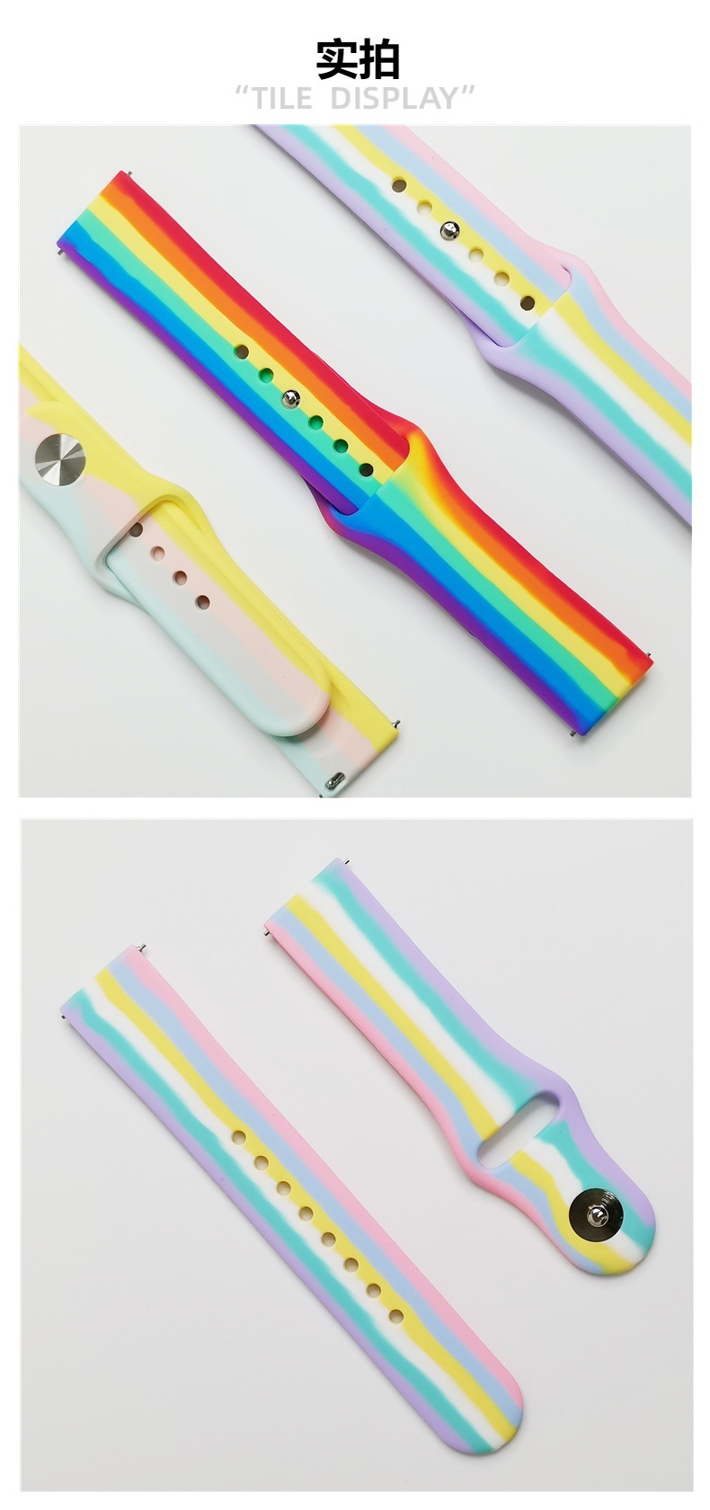 For Samsung Huawei Watch Rainbow Sports Silicone Watch with Raw Ears 20/22mm Silicone Strap