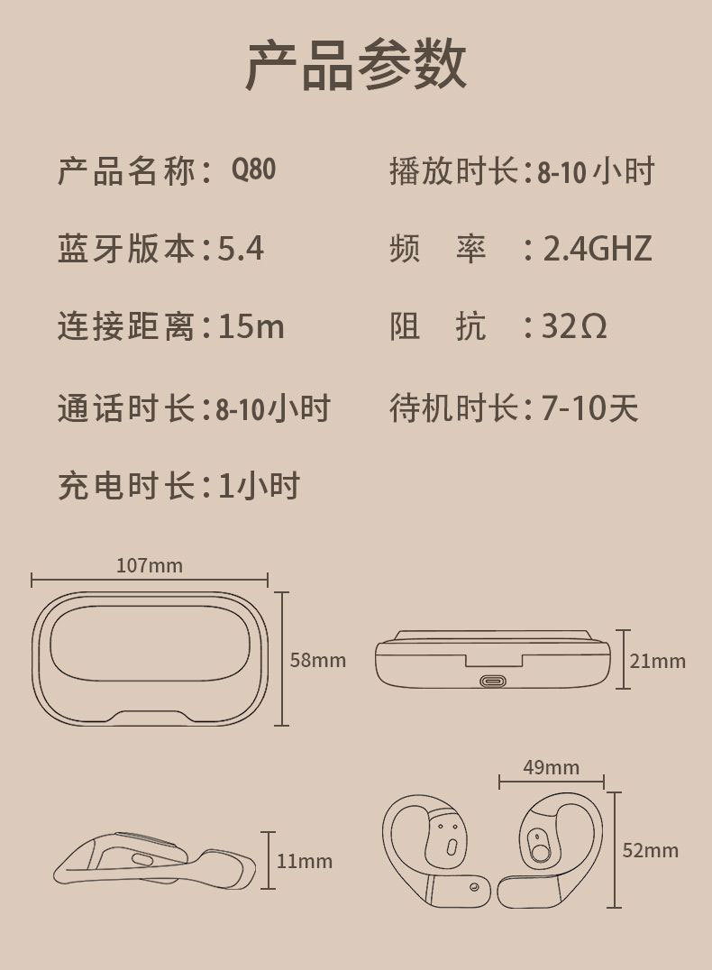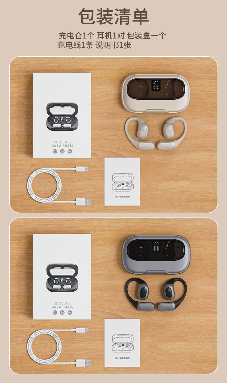 2024 new non-ear sports bluetooth headset ear-hanging high-power long-life wireless black technology headset