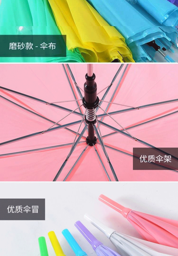 Wholesale frosted umbrella candy color gift umbrella long handle plastic student solid color fresh painting performance advertising umbrella