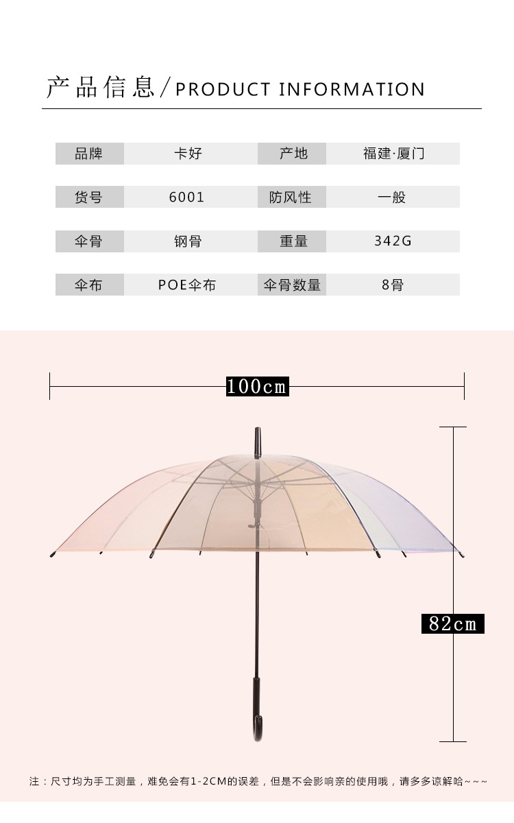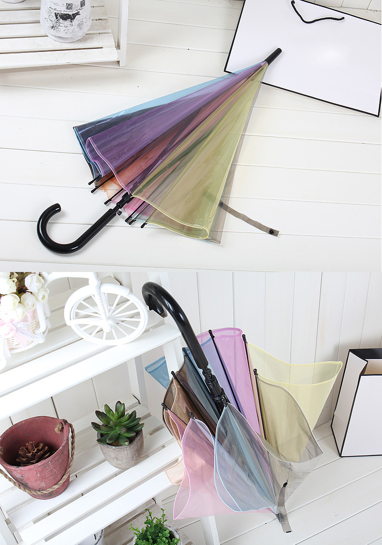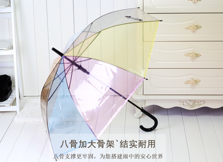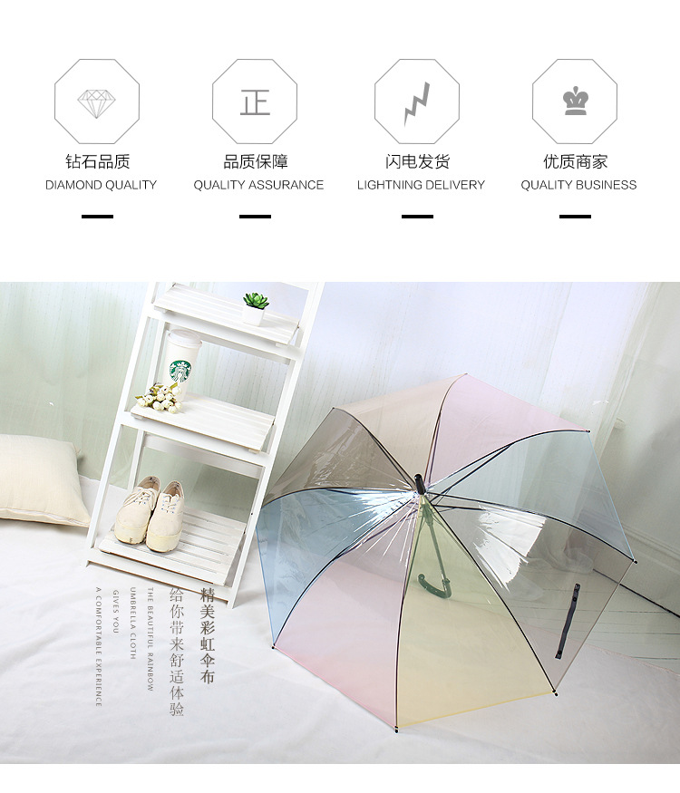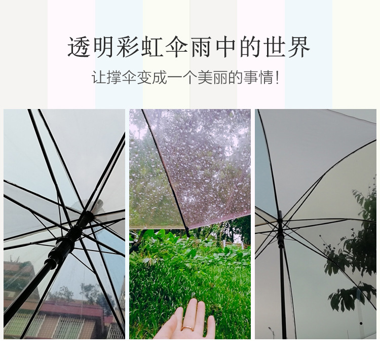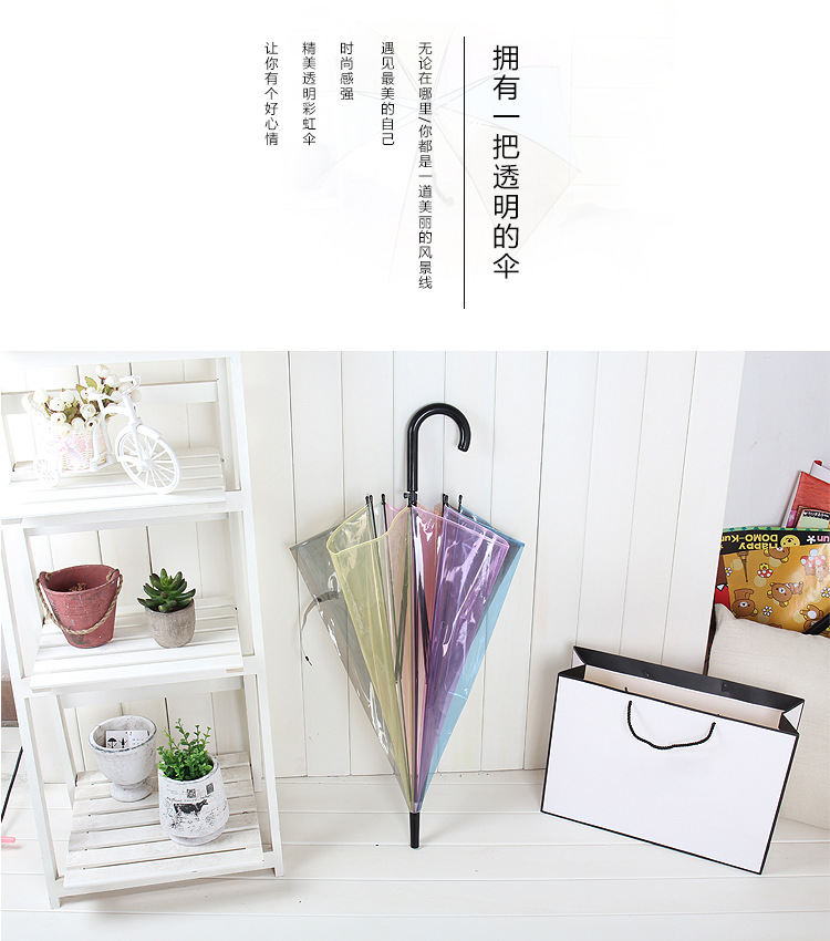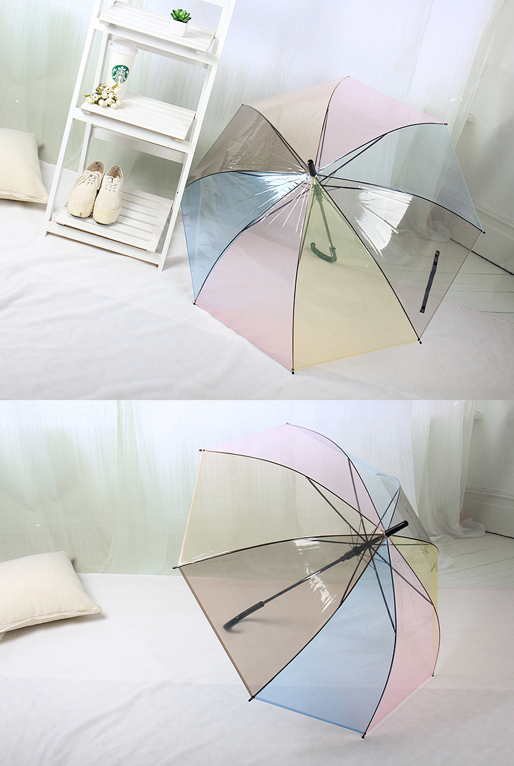 Creative Japanese Style Mori Style Internet Celebrous Transparent Umbrella Small Clear New Color Value Rainbow Advertising Umbrella Girl's Long Handle Umbrella