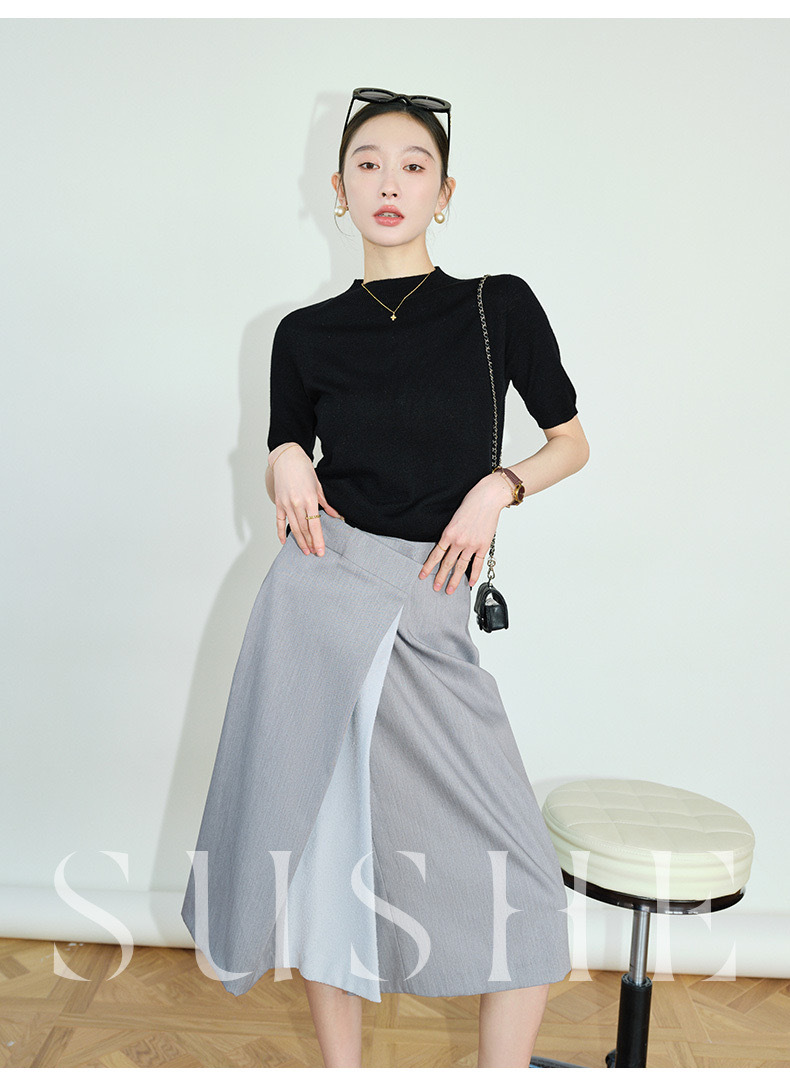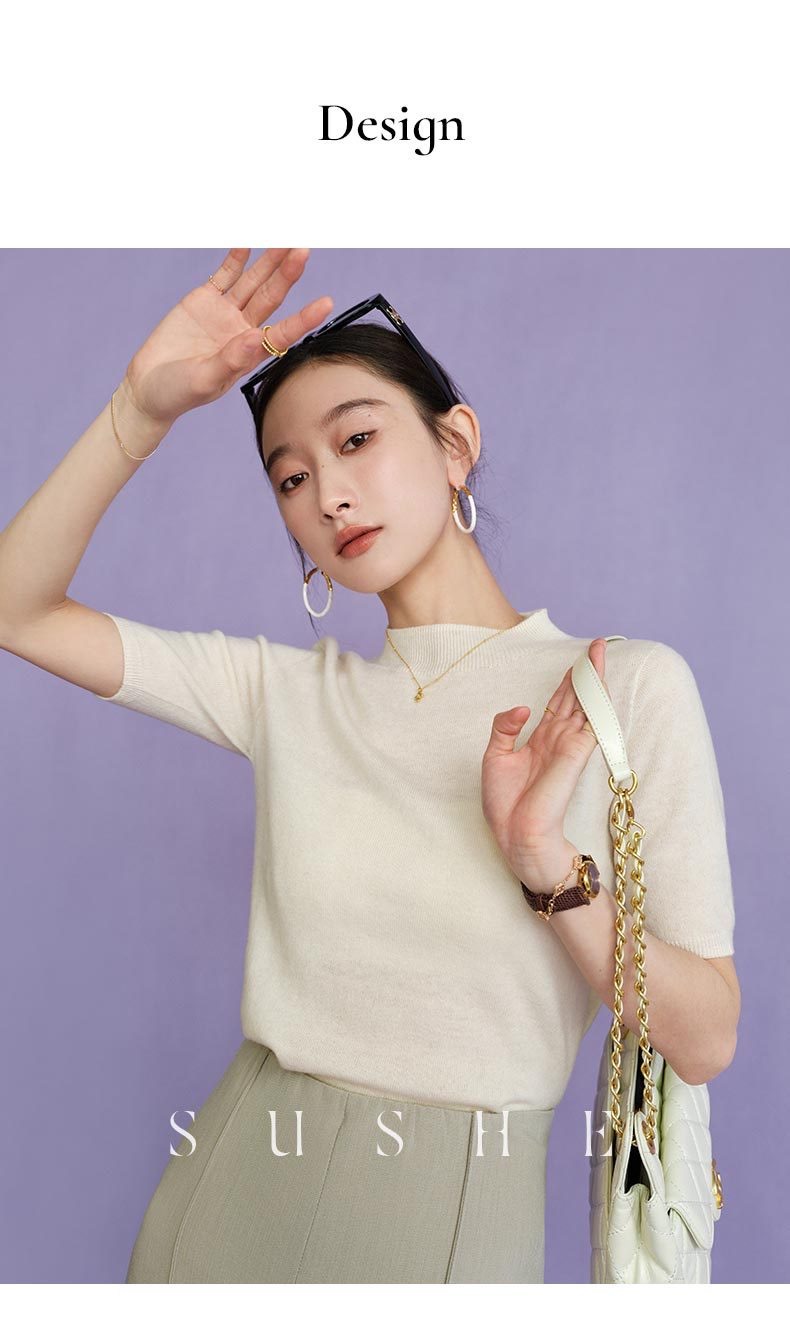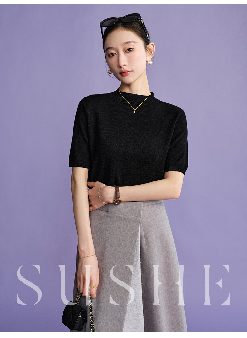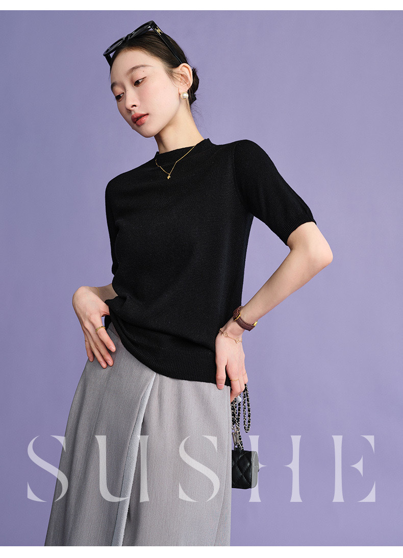 2024 Summer wool knitted sweater women's simple inner half sleeve high-grade half turtleneck sweater top women's Korean style