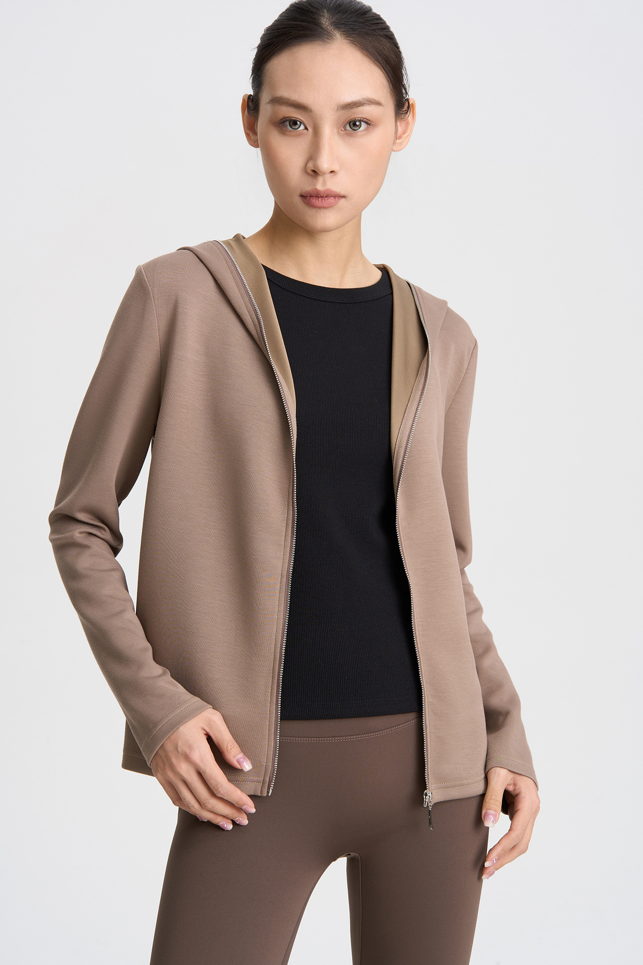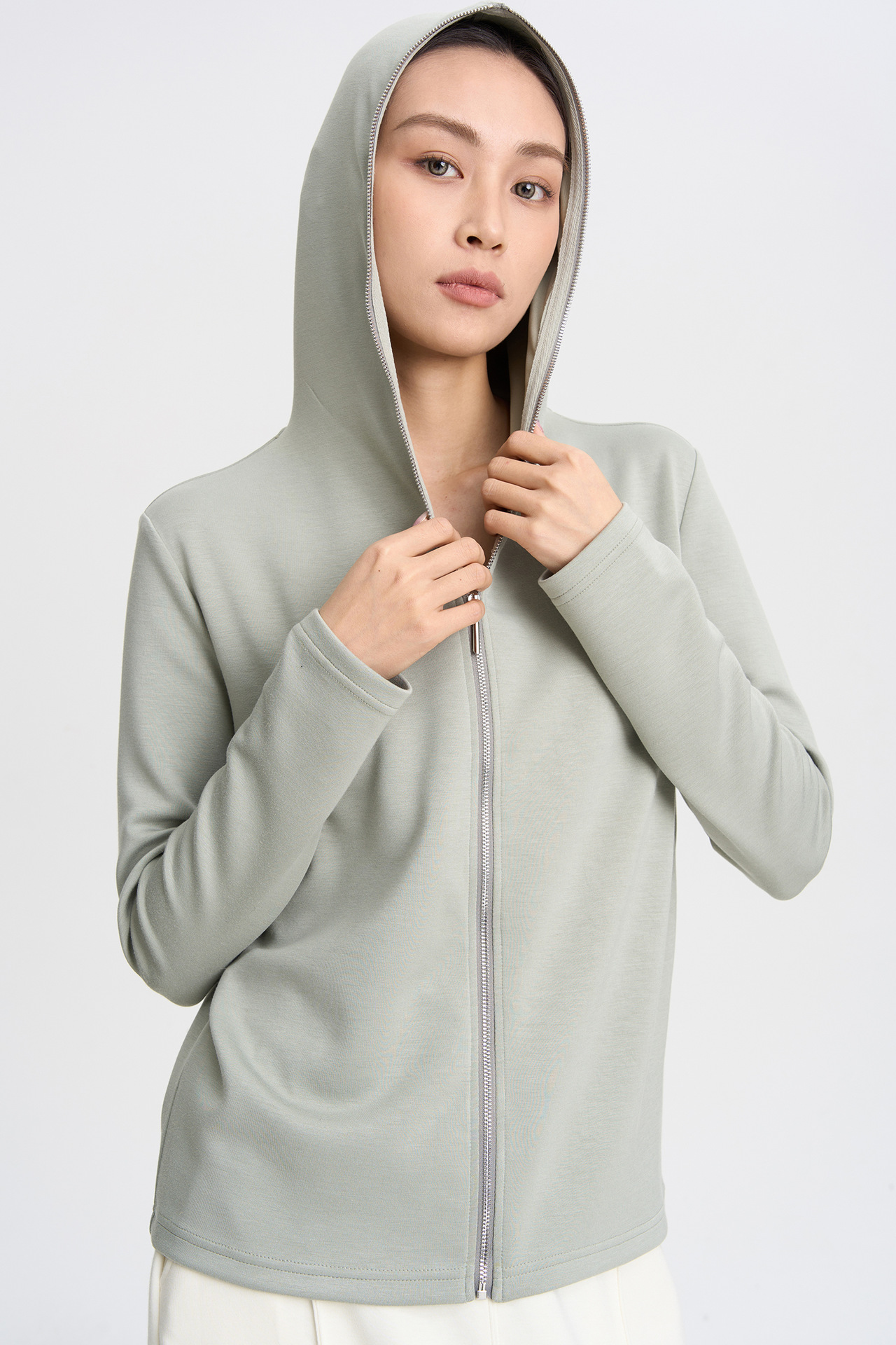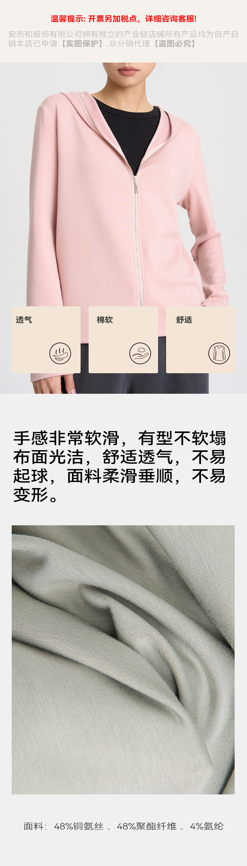 Copper ammonia silk casual hooded sweater zipper cardigan coat 2024 early spring skin-friendly comfortable slimming sports top