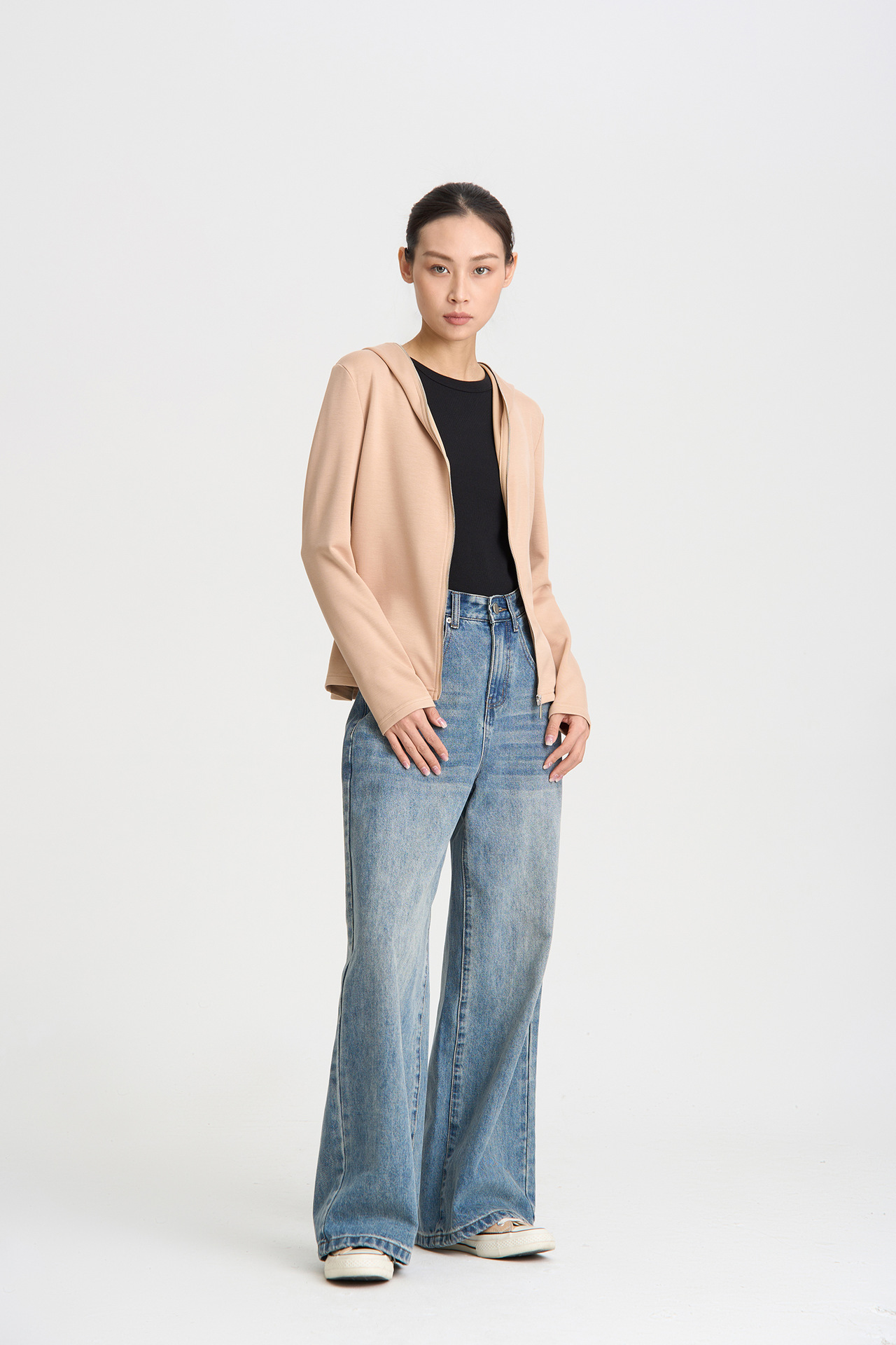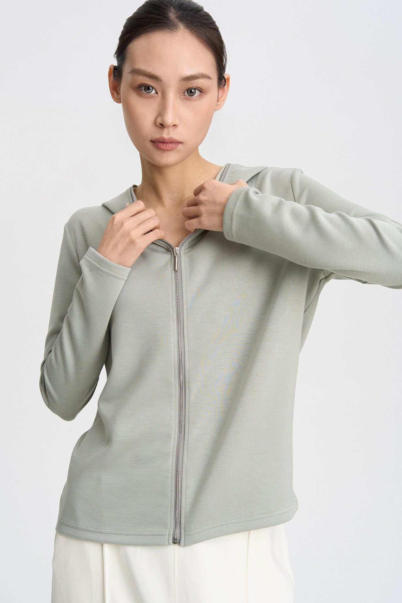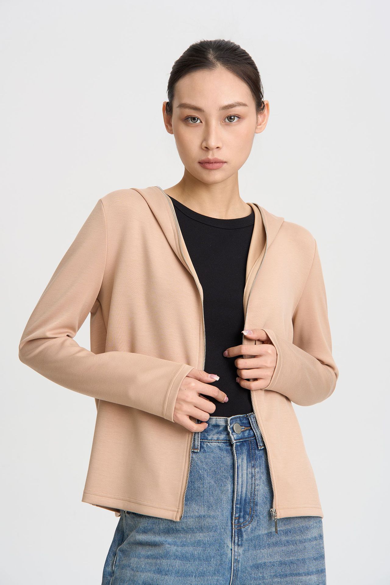 Copper ammonia silk casual hooded sweater zipper cardigan coat 2024 early spring skin-friendly comfortable slimming sports top