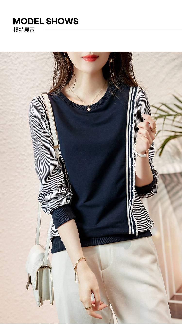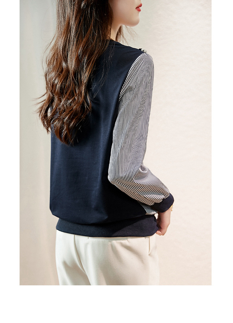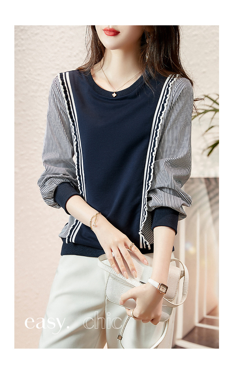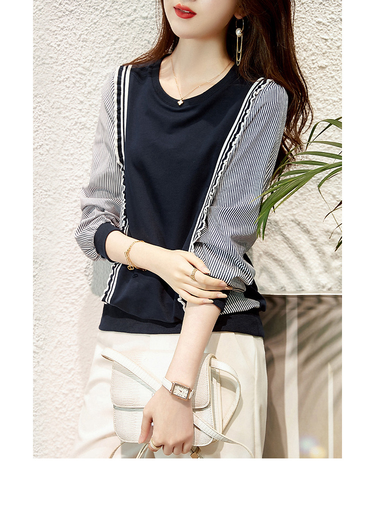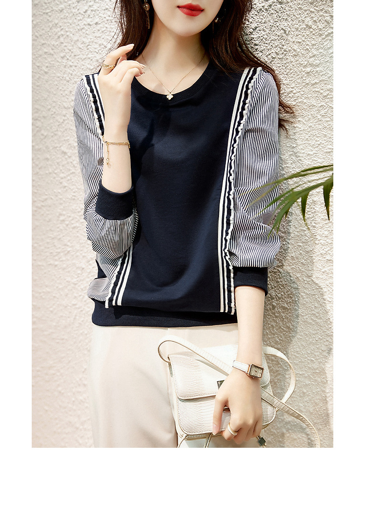 Sweater for women 2024 Spring and Autumn New Korean style contrast color stitching elegant loose round neck pullover long sleeve fake two-piece top