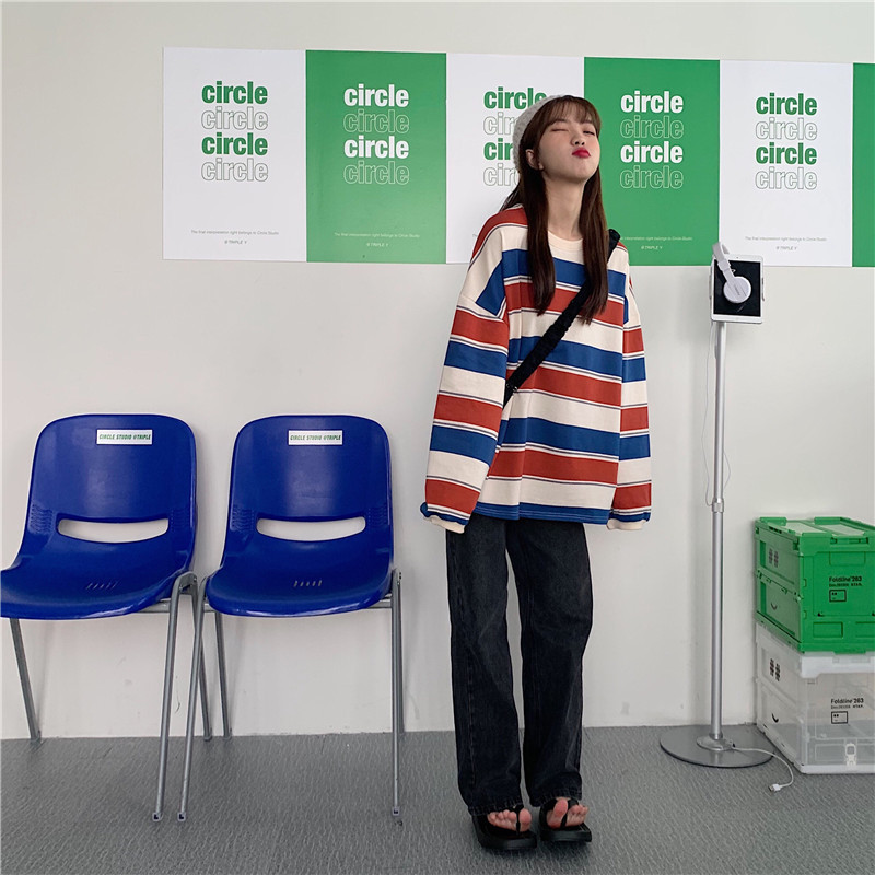 Cotton Super Popular CEC Sweater Women's Korean-style 2024 Autumn and Winter New Loose Striped Thin Top Women's Ins Trendy