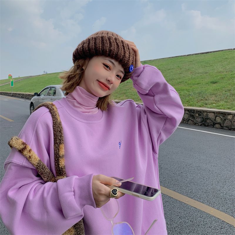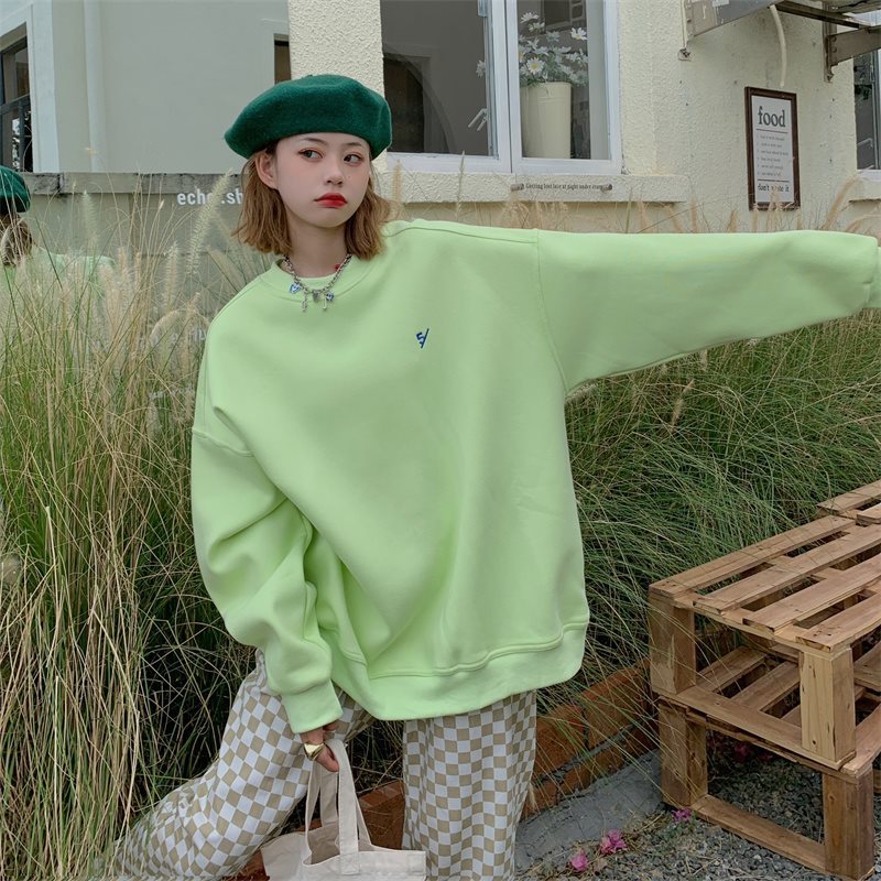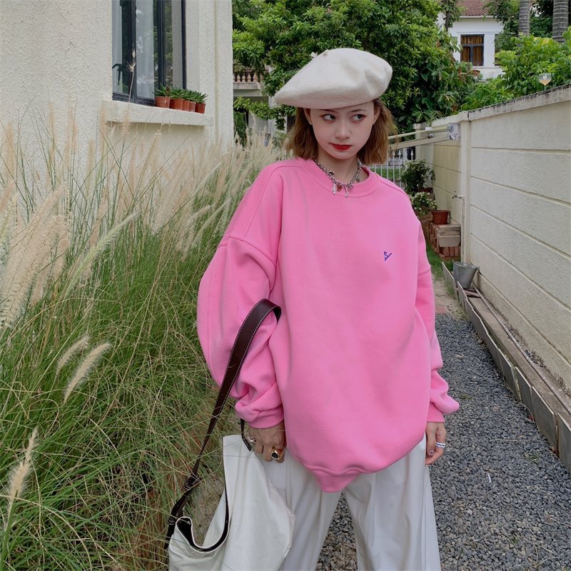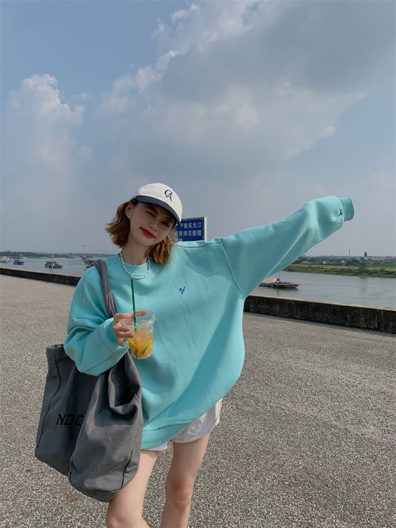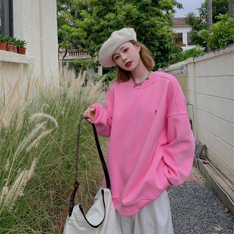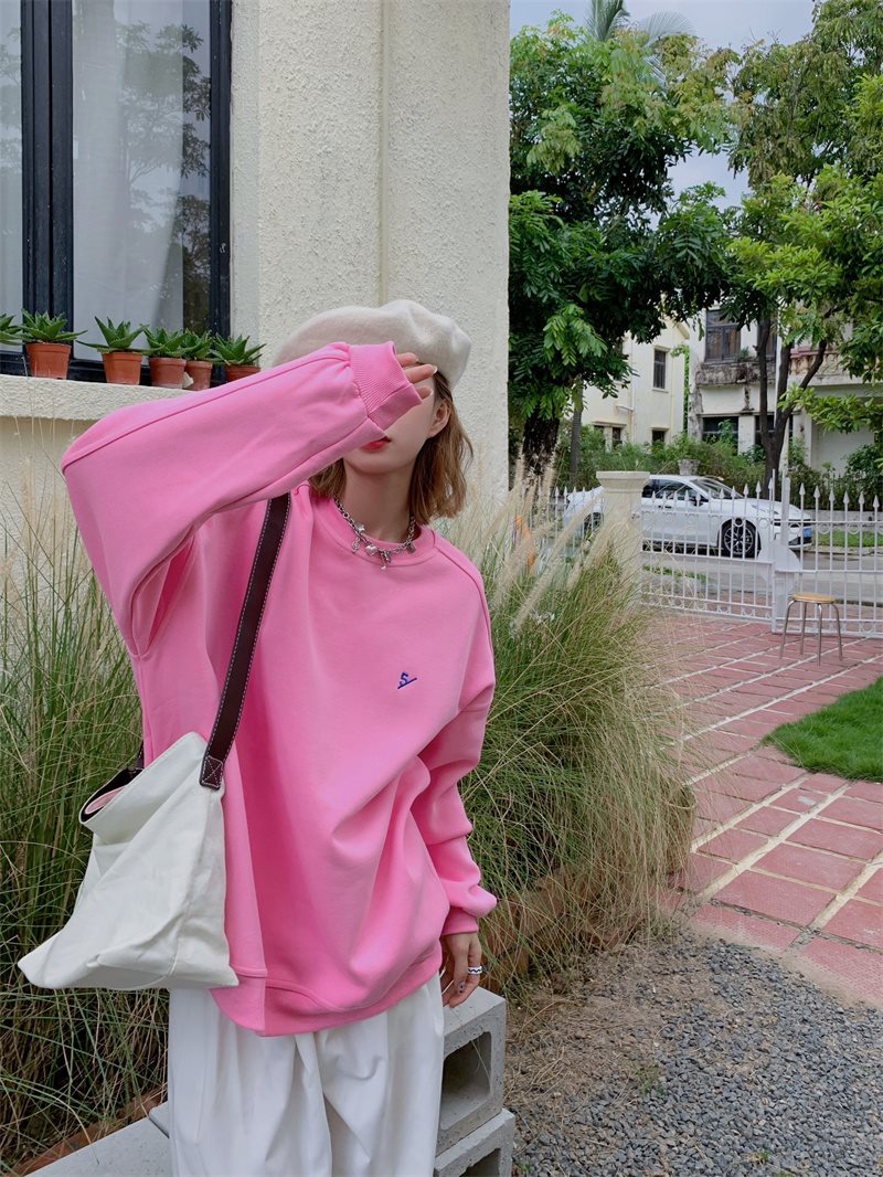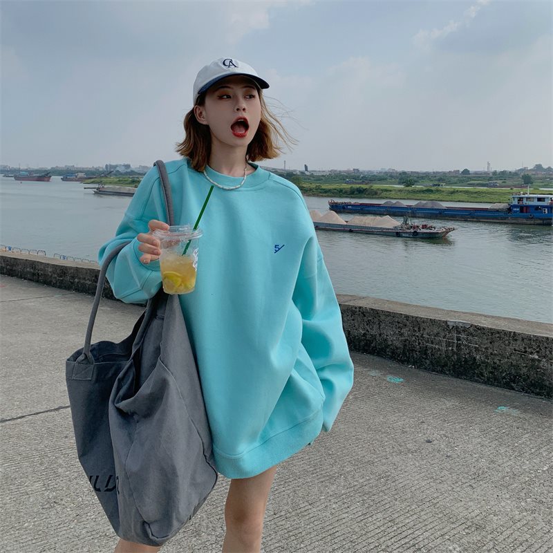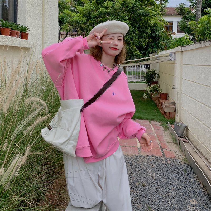 Lazy style round neck pullover sweater women's clothing 2023 autumn new casual loose Korean style long sleeve thick top