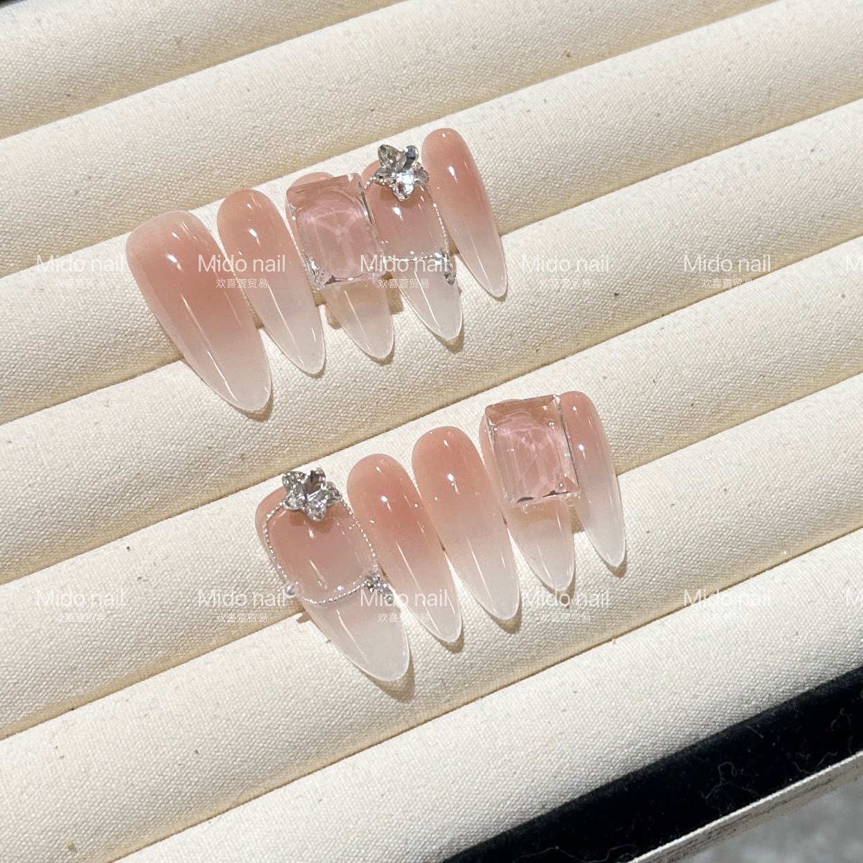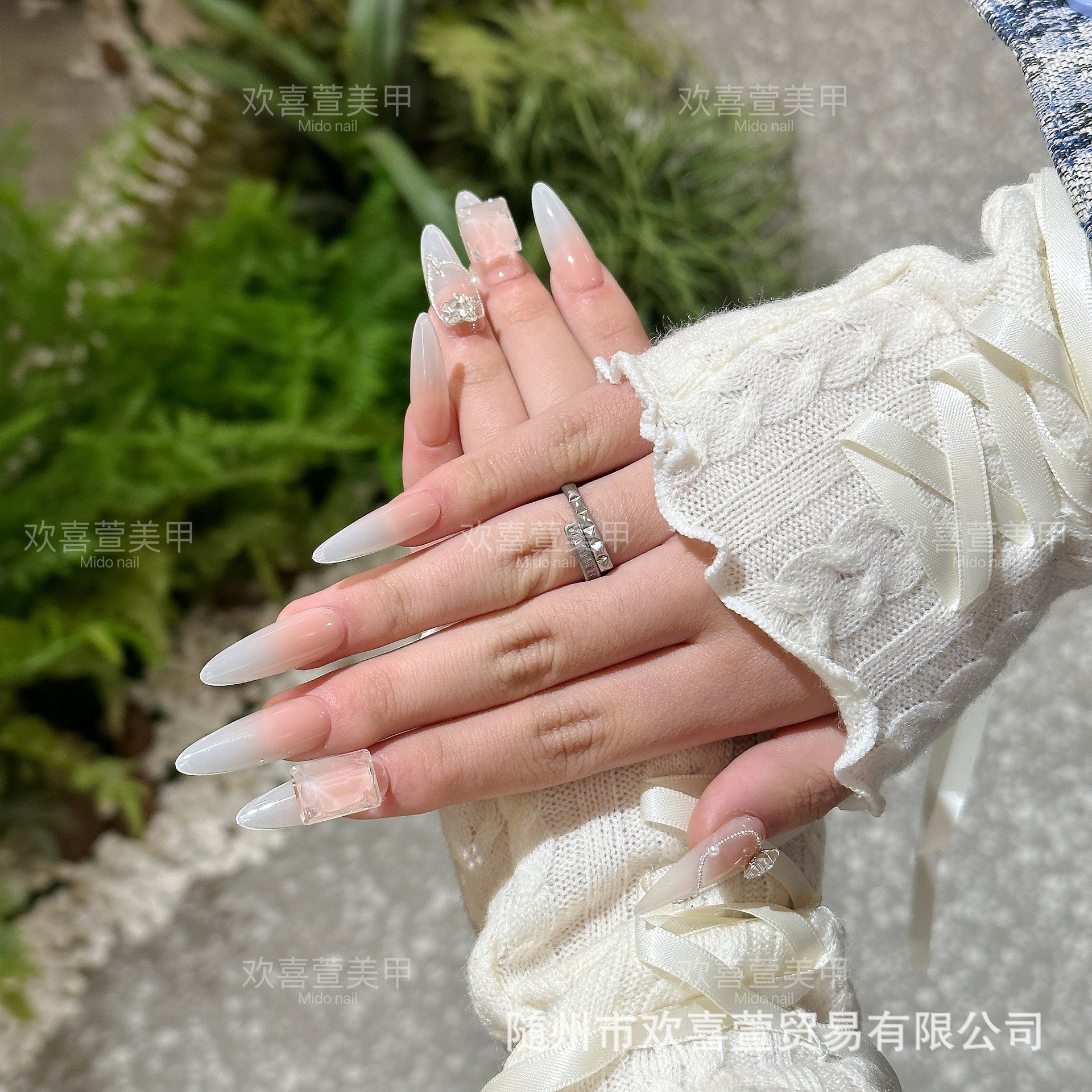 Pink pure heart popular original design high-end wear nail high quality pile diamond supply nail finished product White