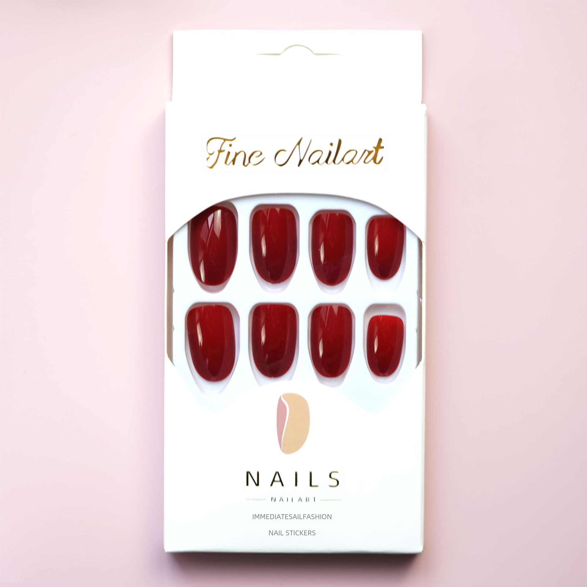 CS-79 wine red round fake nail piece wear nail sticker finished nail patch 24 pieces nail sticker wholesale
