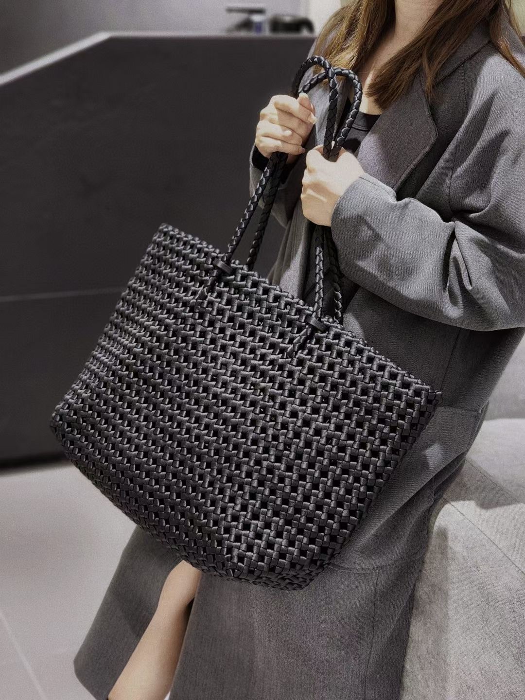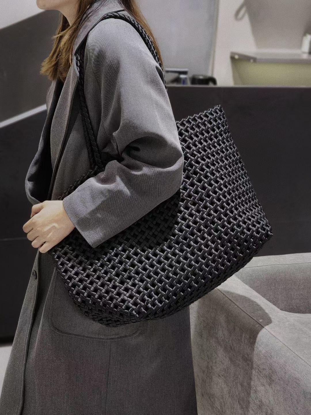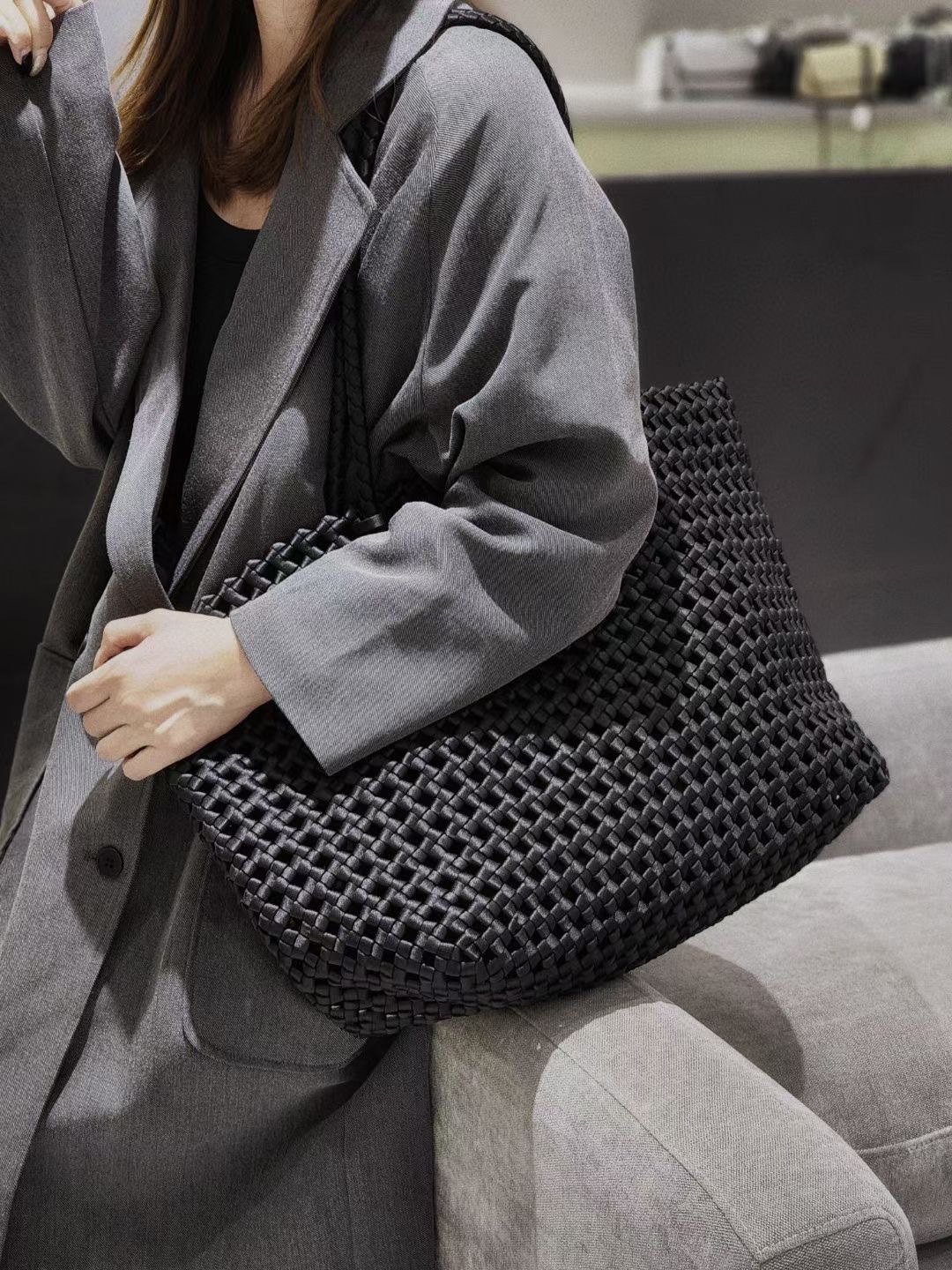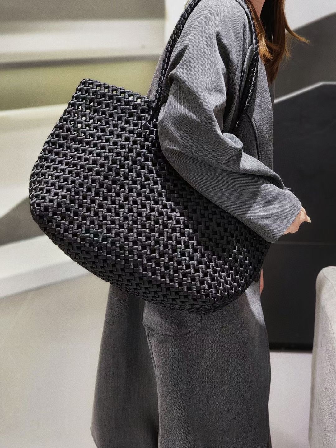 Satin Woven Bag Hollow Large Bag Large Capacity All-match Commuter Underarm Bag Niche Design High-end Shoulder Bag
