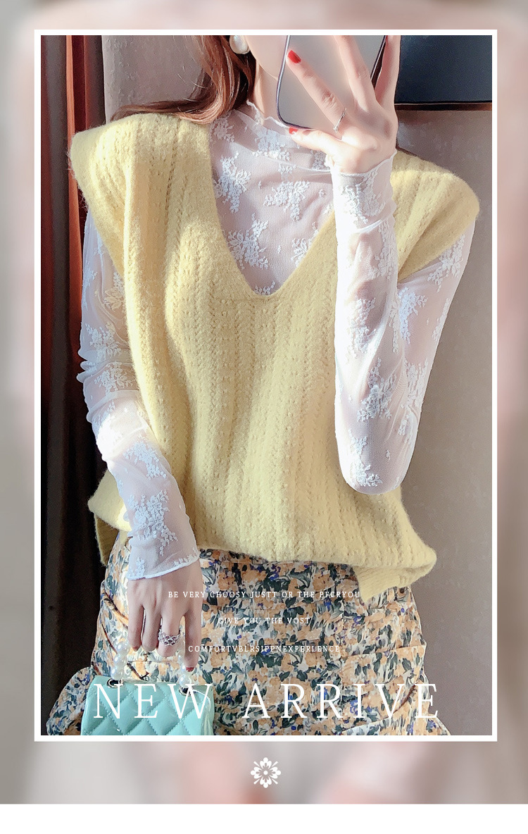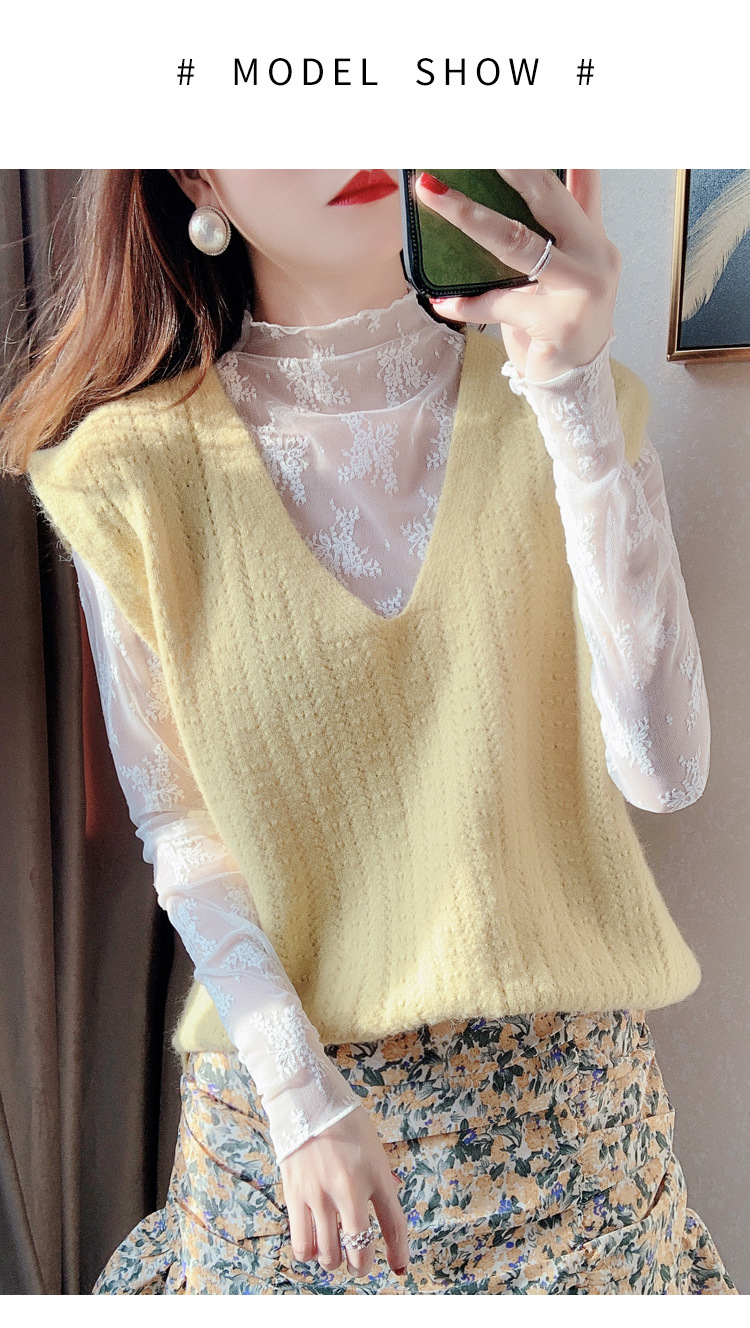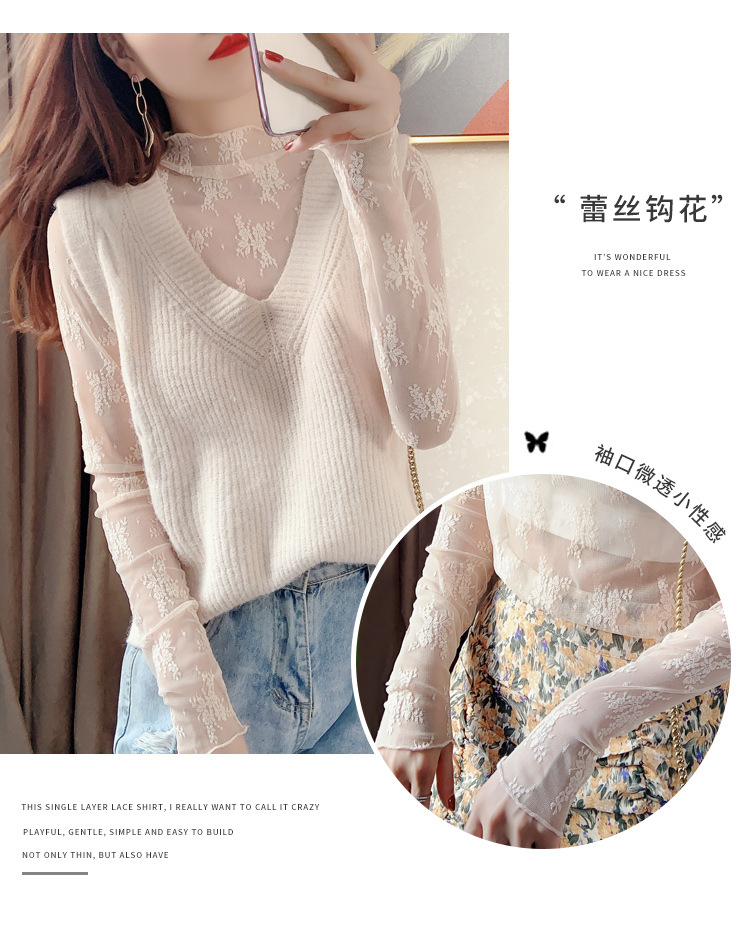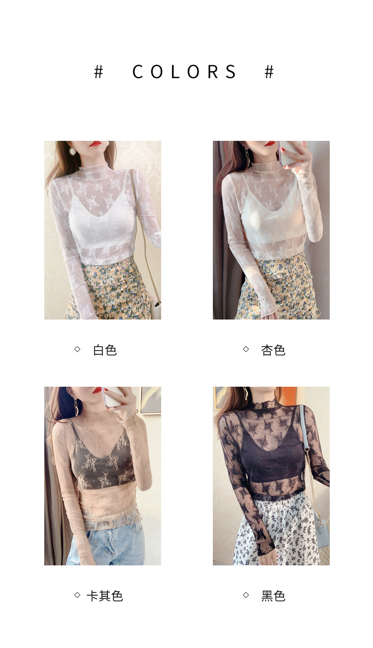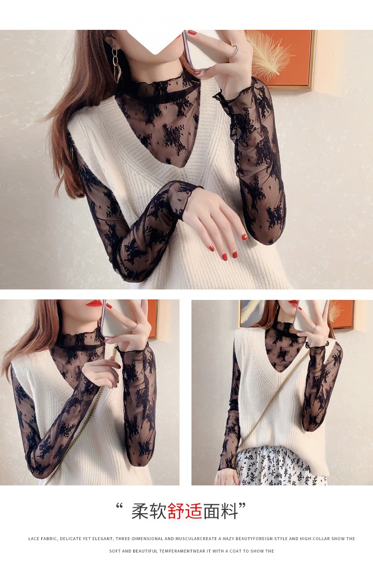 White turtleneck lace inner top for women autumn and winter New Western style small shirt wooden ear mesh bottoming shirt
