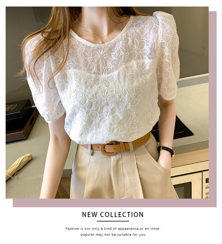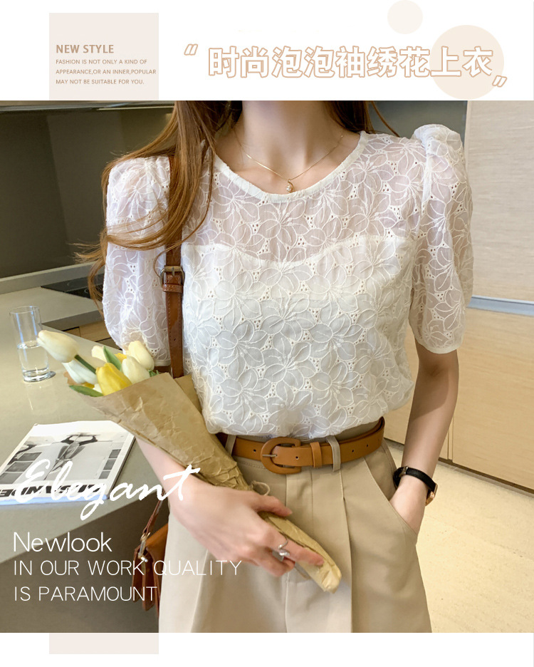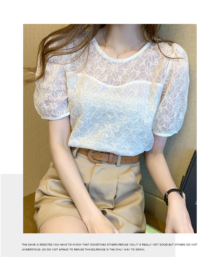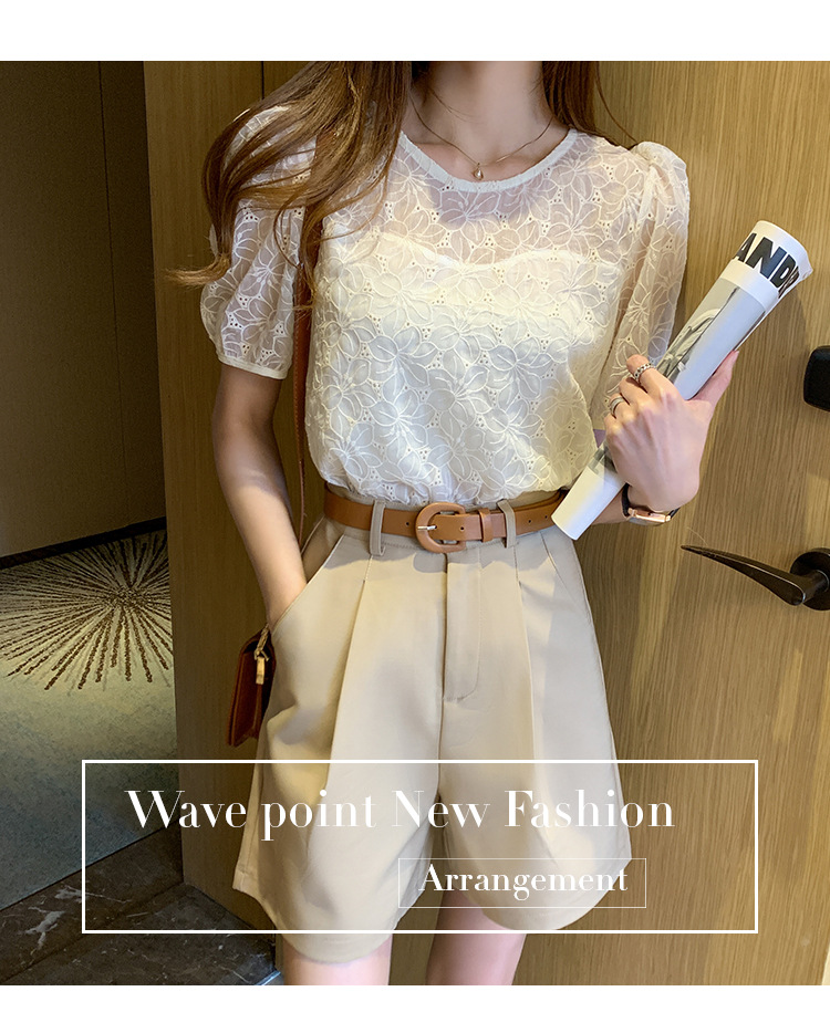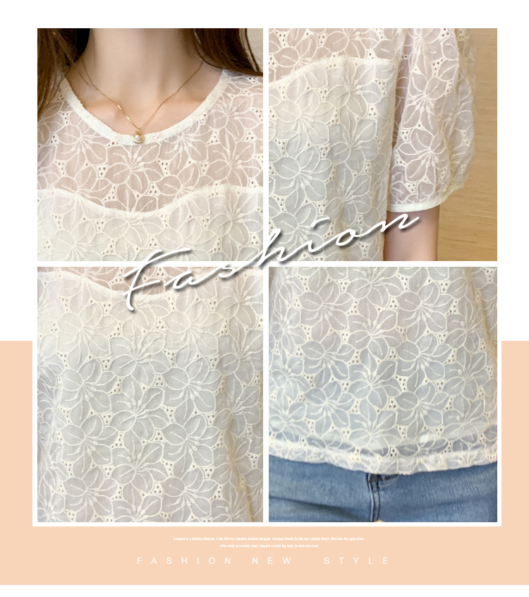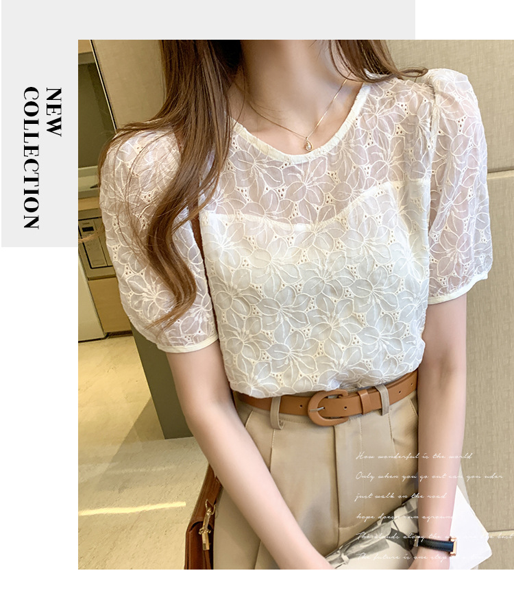 Chiffon shirt plus size women's top 2024 Summer new lace bottoming shirt puff sleeve short sleeve Korean style small shirt