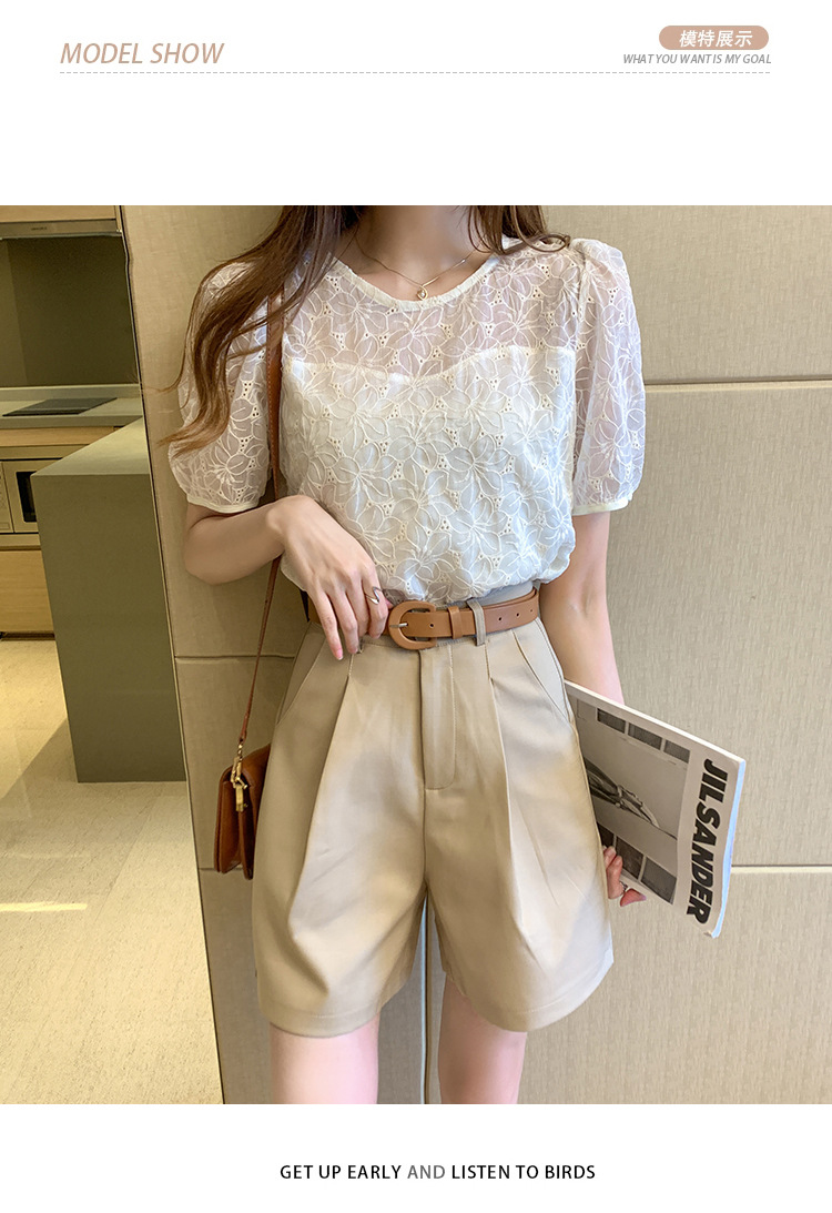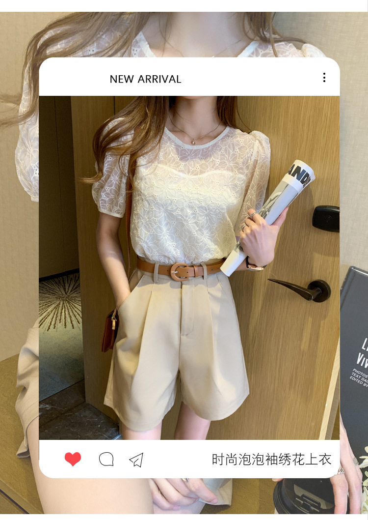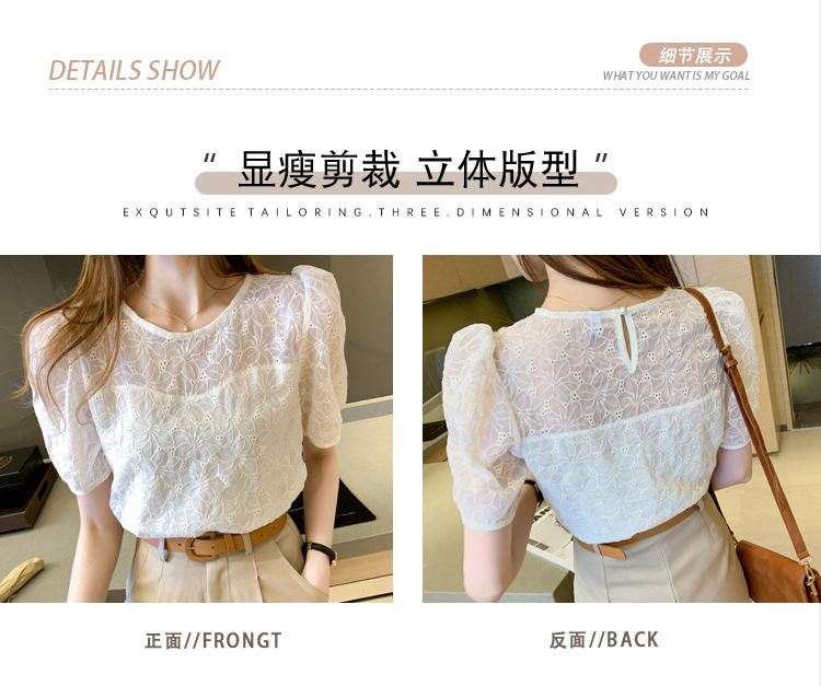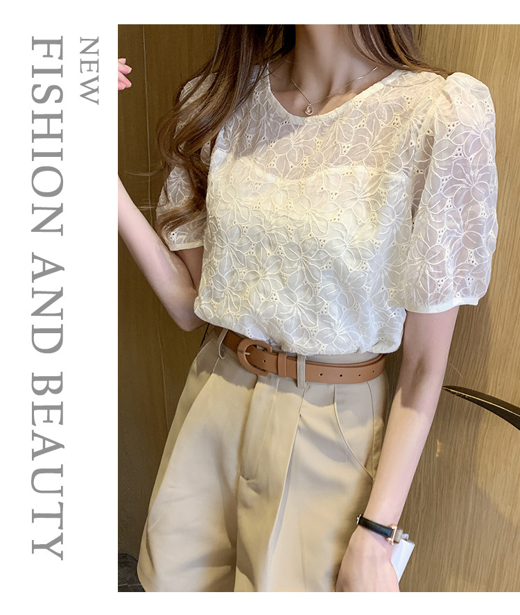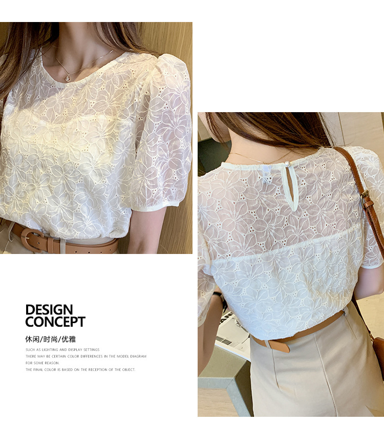 Chiffon shirt plus size women's top 2024 Summer new lace bottoming shirt puff sleeve short sleeve Korean style small shirt