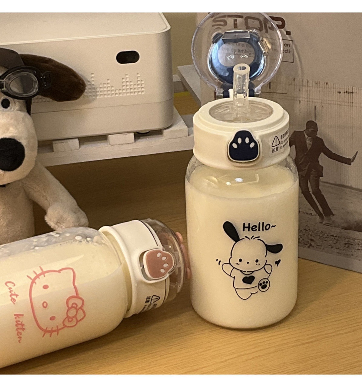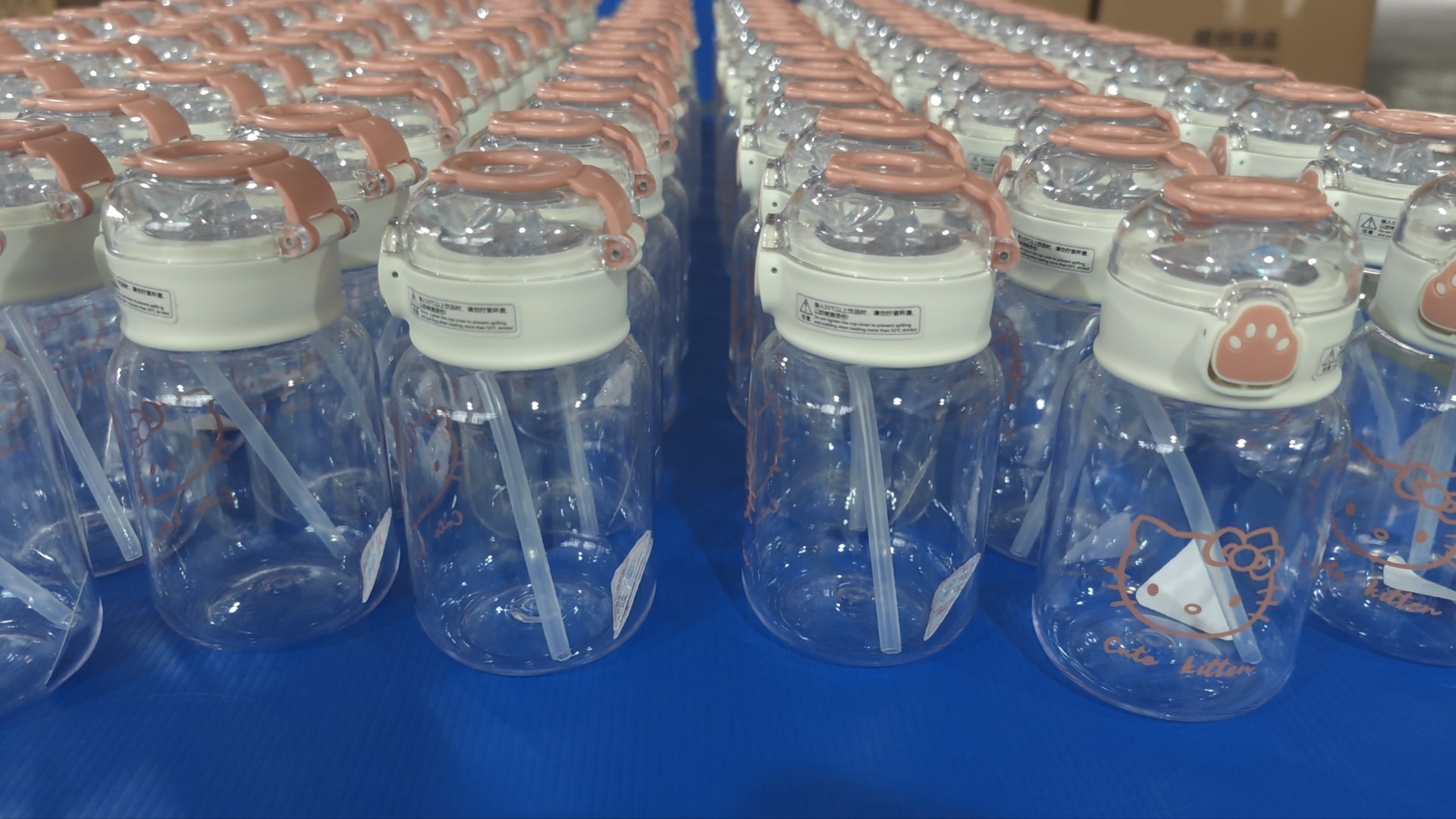 High color value plastic straw water cup high temperature resistant Girls cute children's casual Cup portable cat claw water Cup