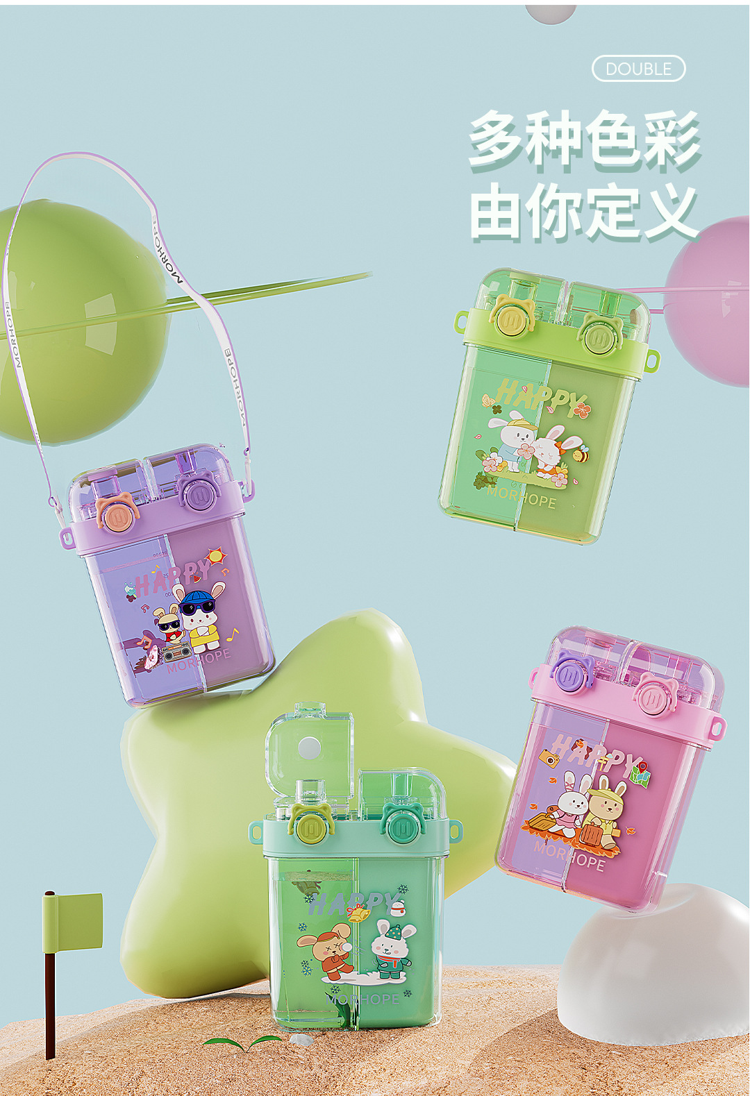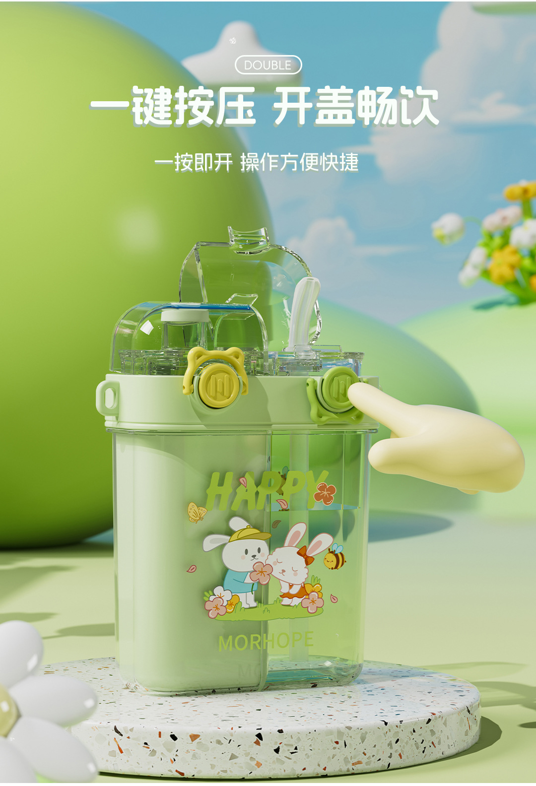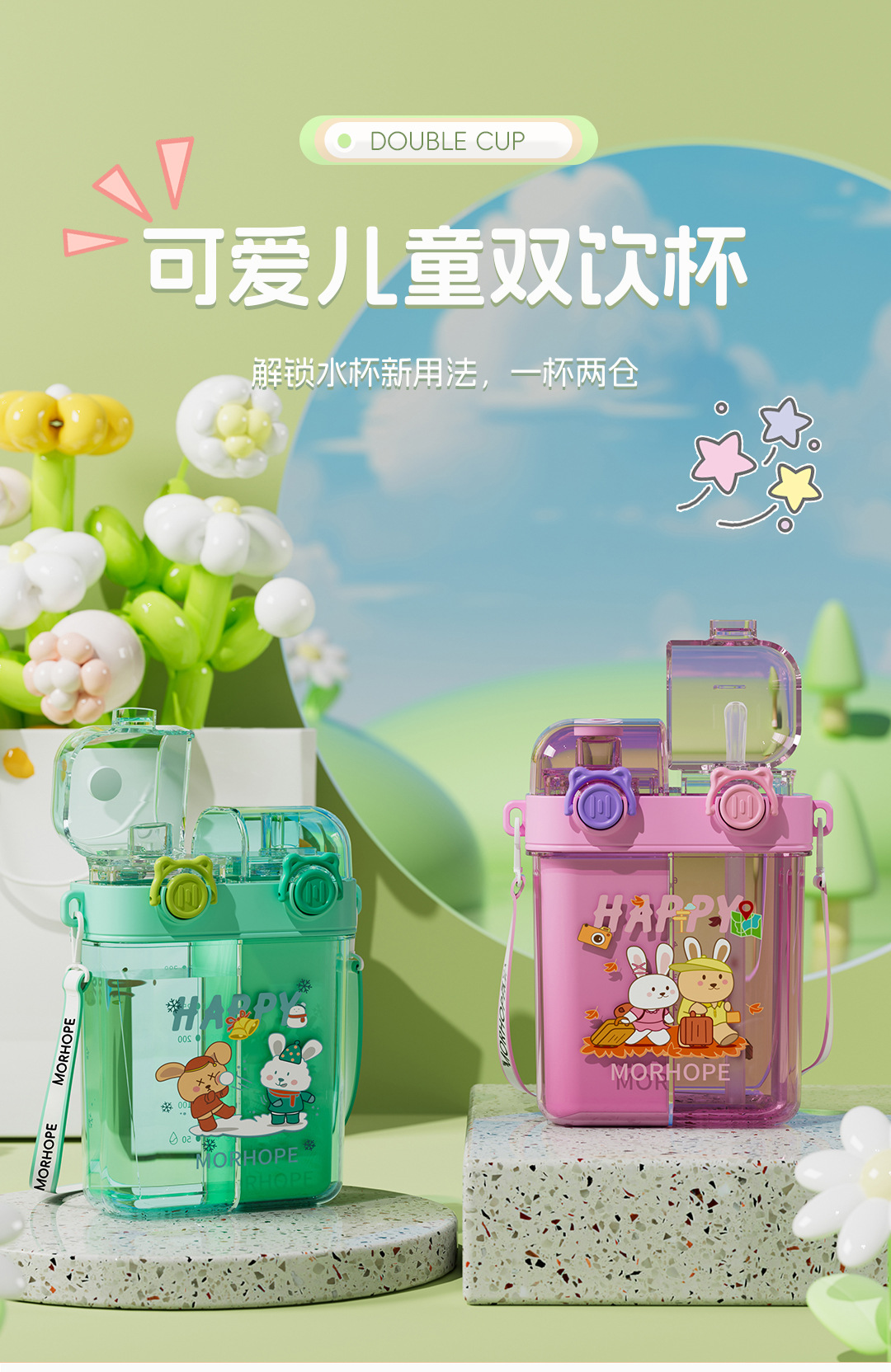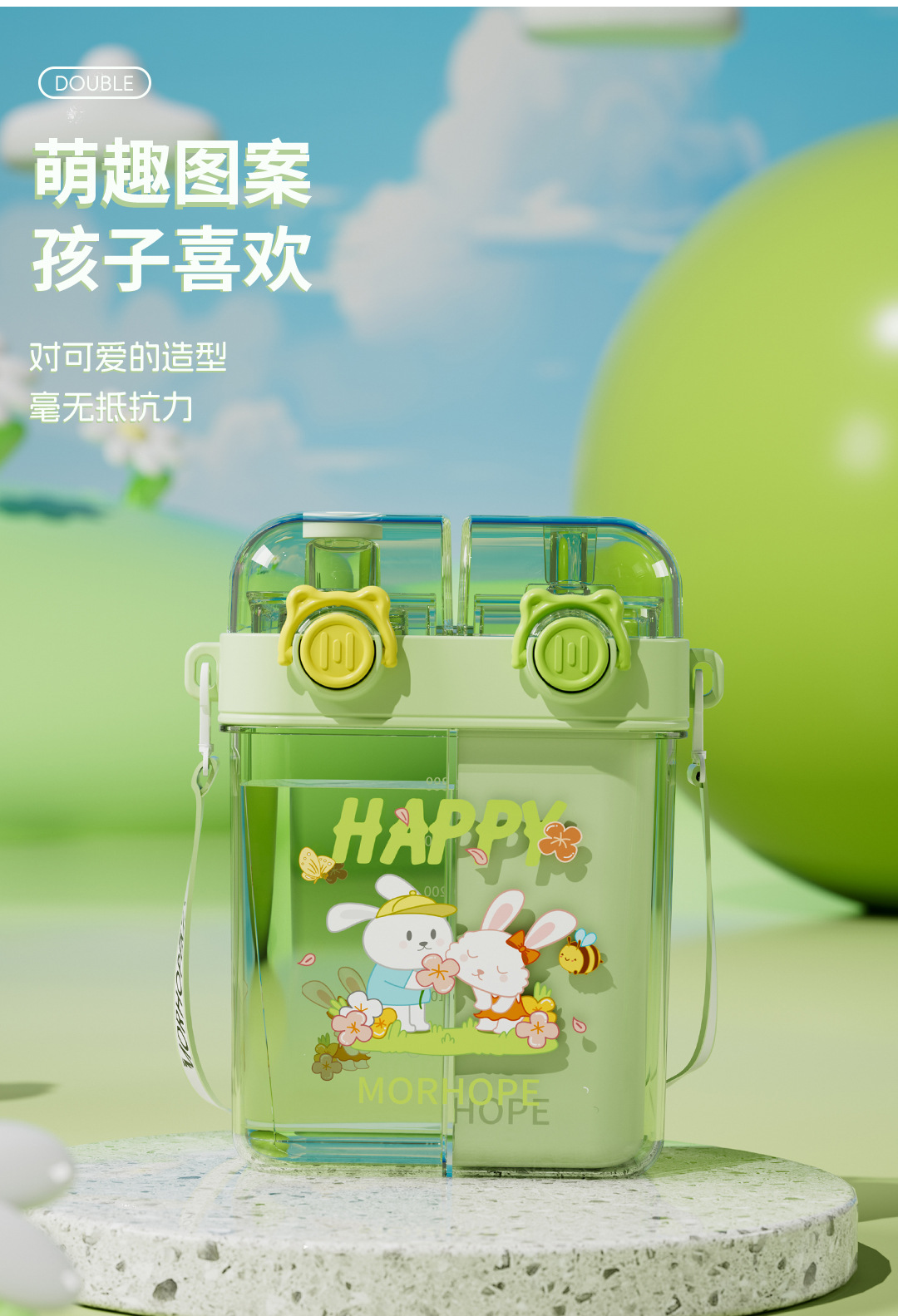 2024 Summer New Children's Water Cup Student Double Drink Suction Cup Cute Cartoon Water Cup Outdoor Portable Carry-on Cup