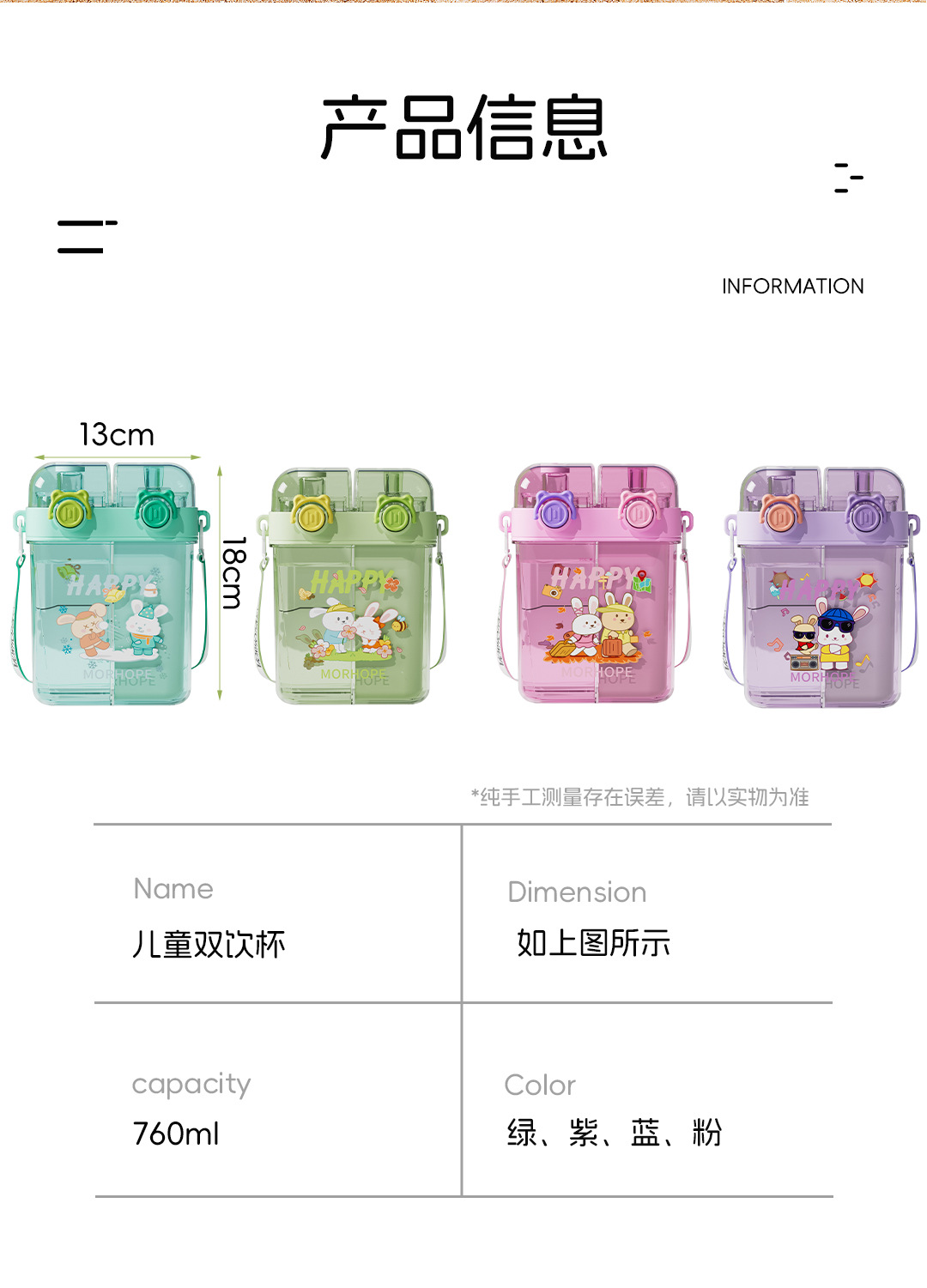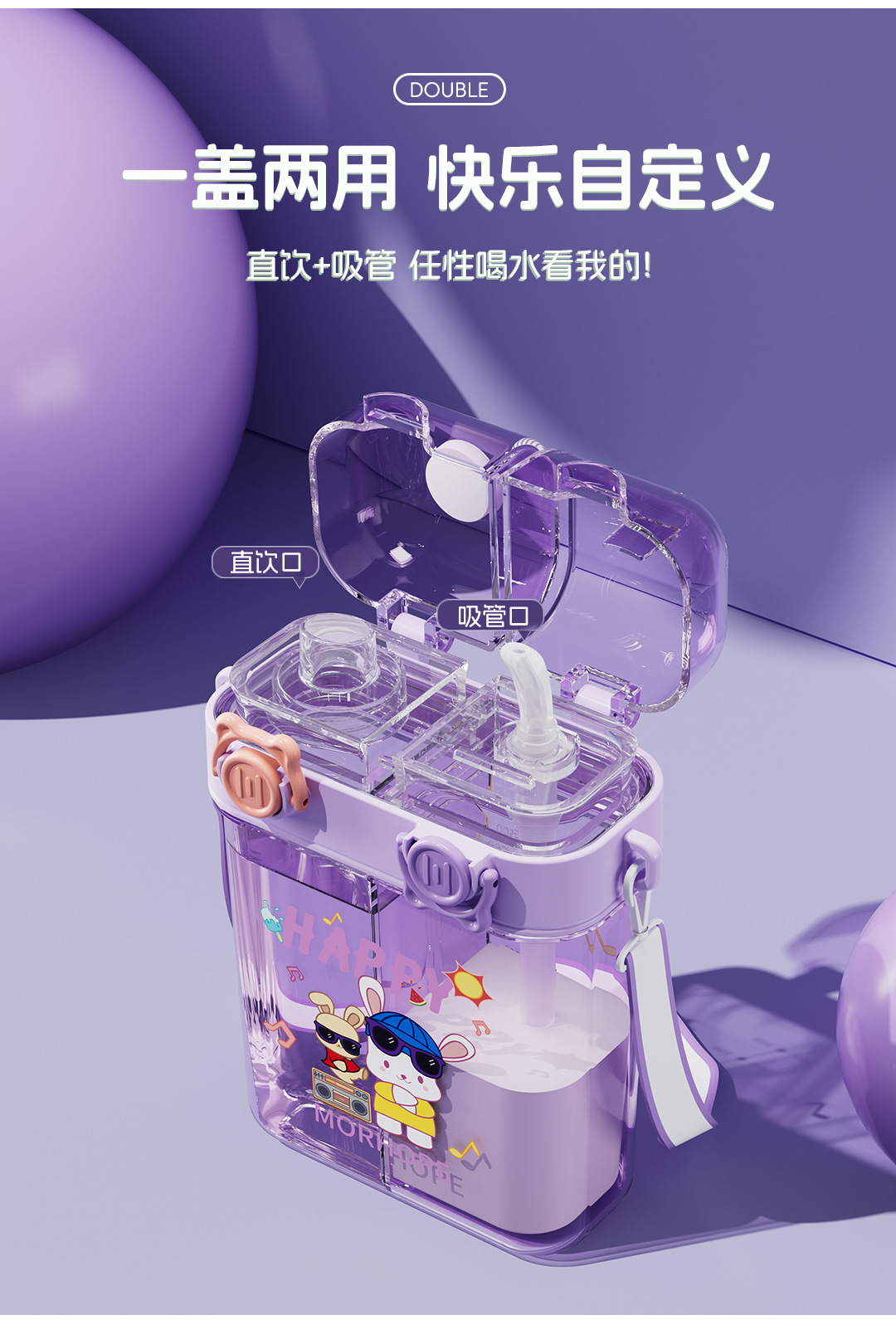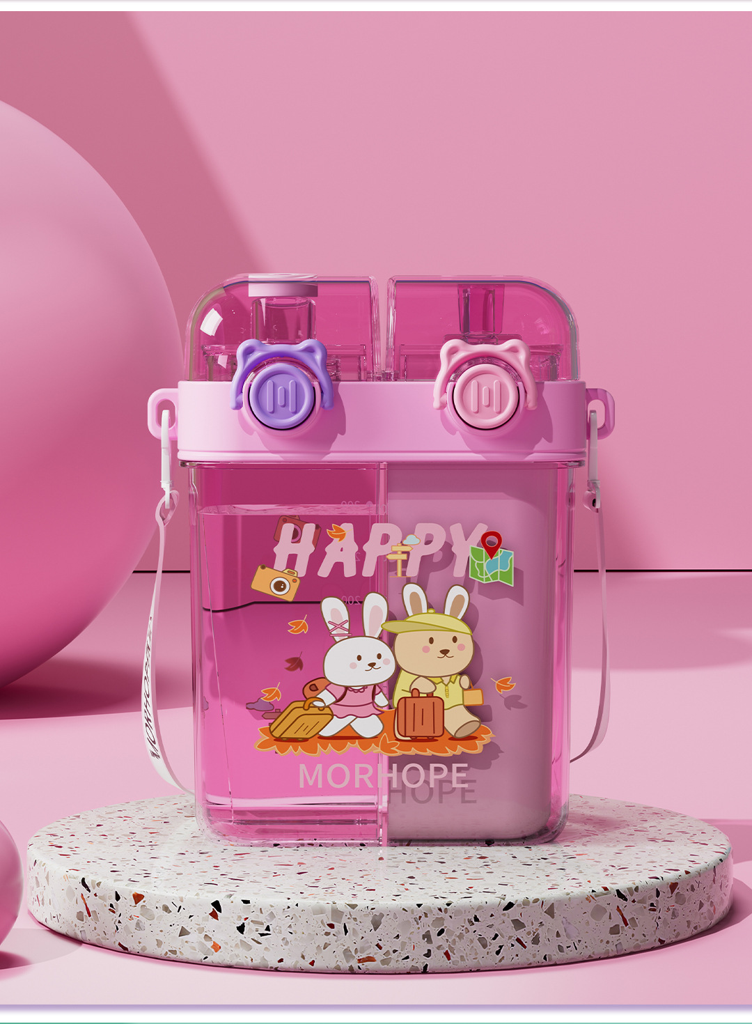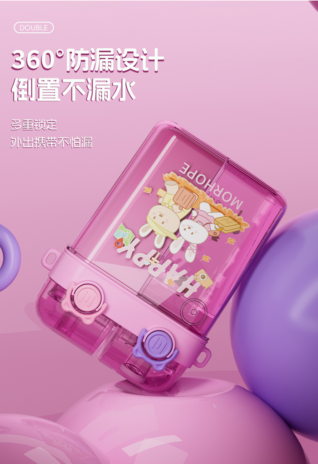 2024 Summer New Children's Water Cup Student Double Drink Suction Cup Cute Cartoon Water Cup Outdoor Portable Carry-on Cup