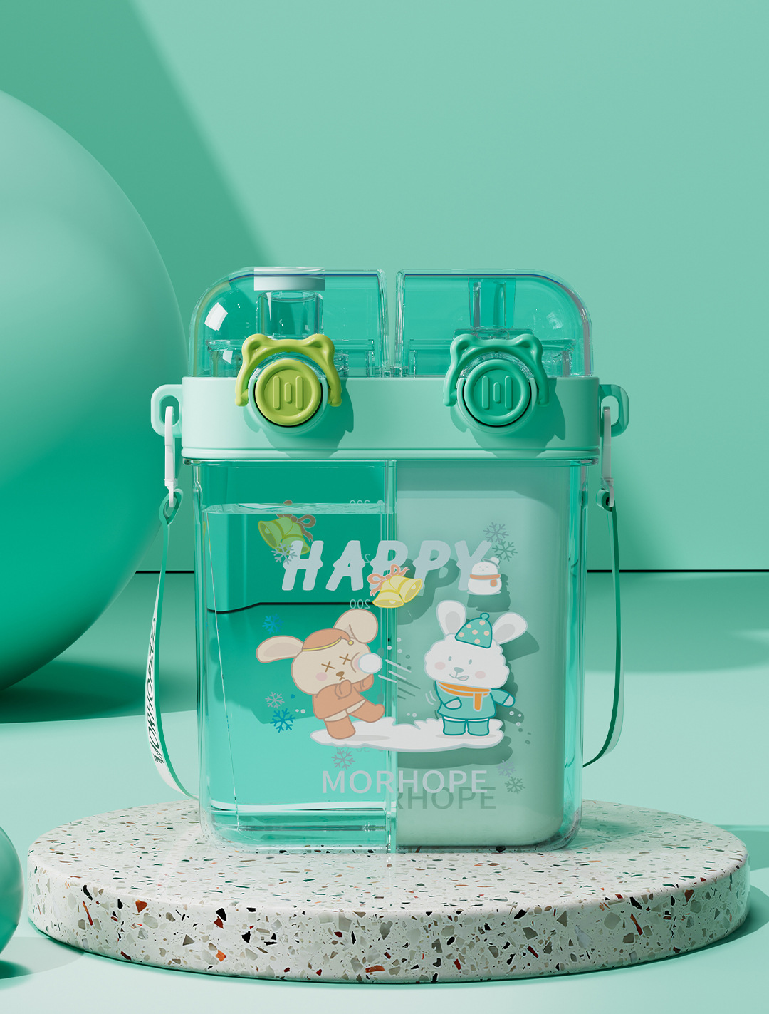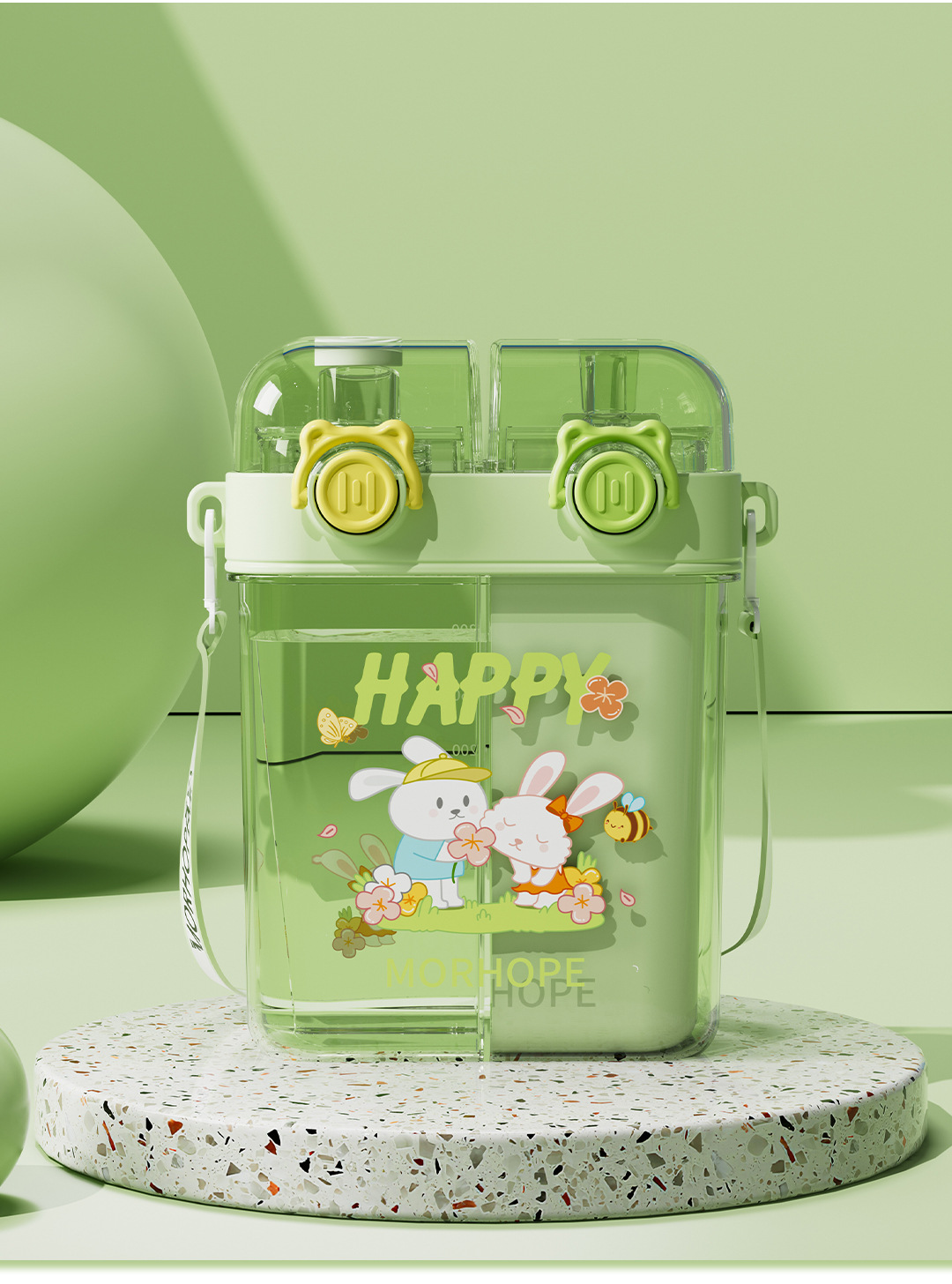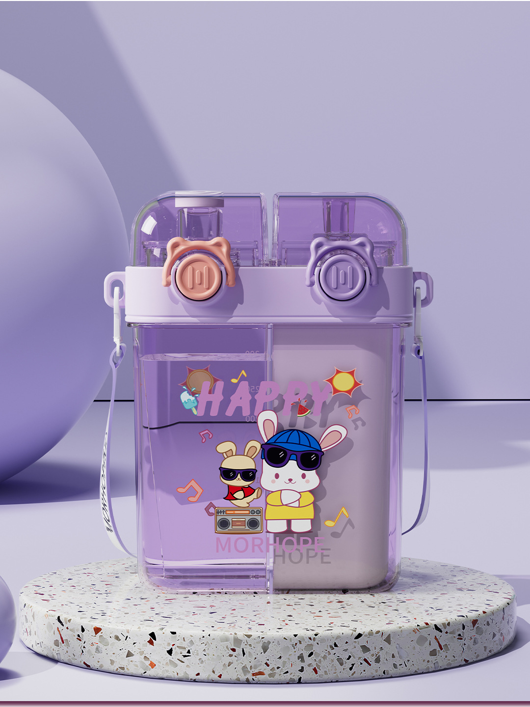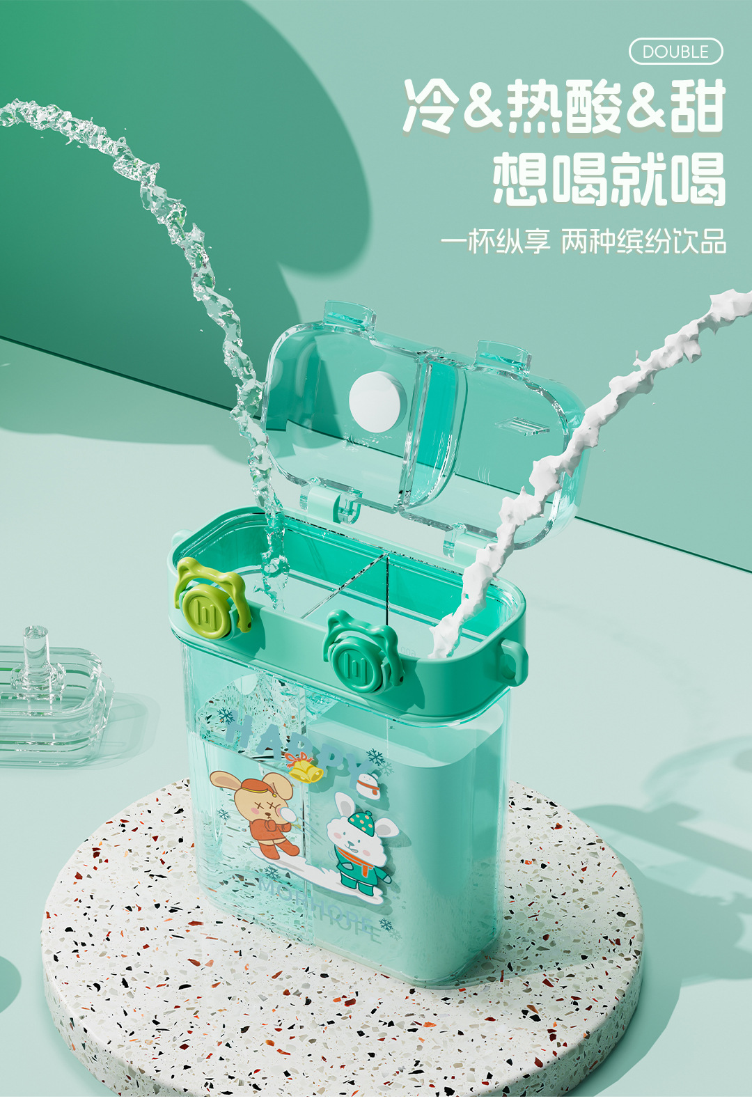 2024 Summer New Children's Water Cup Student Double Drink Suction Cup Cute Cartoon Water Cup Outdoor Portable Carry-on Cup