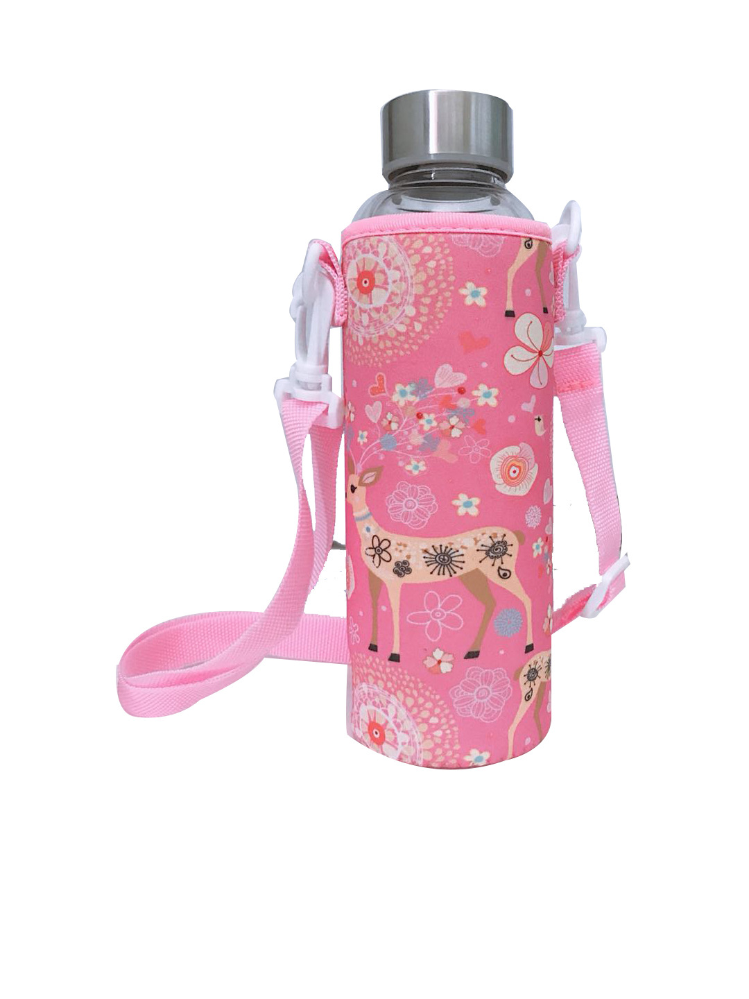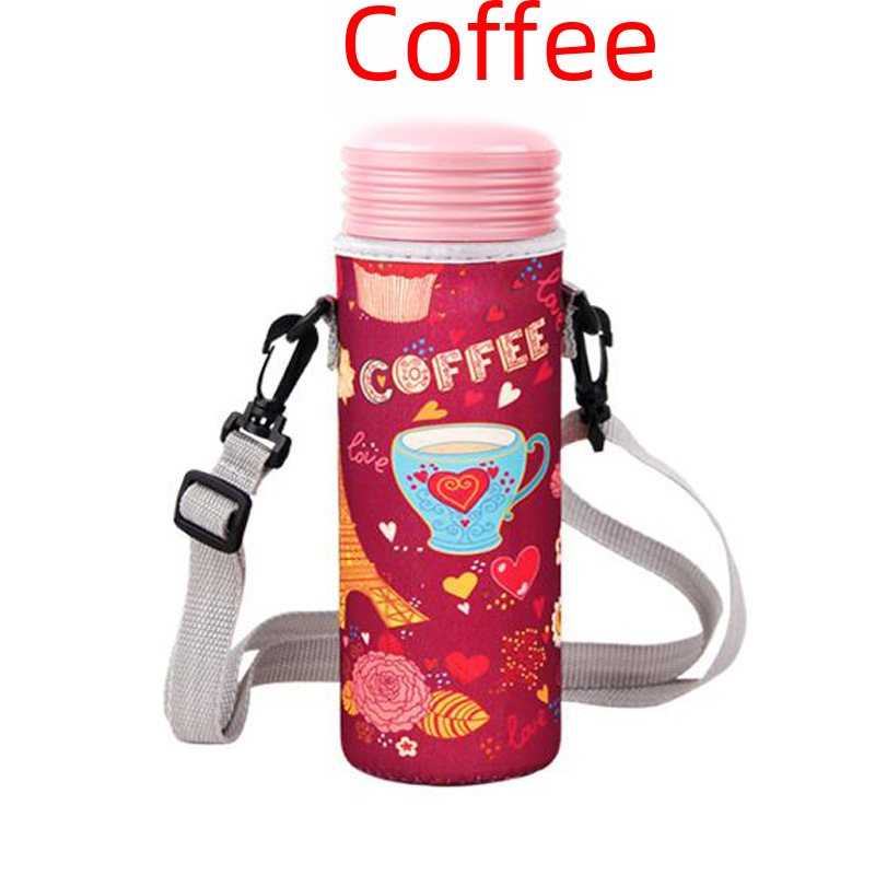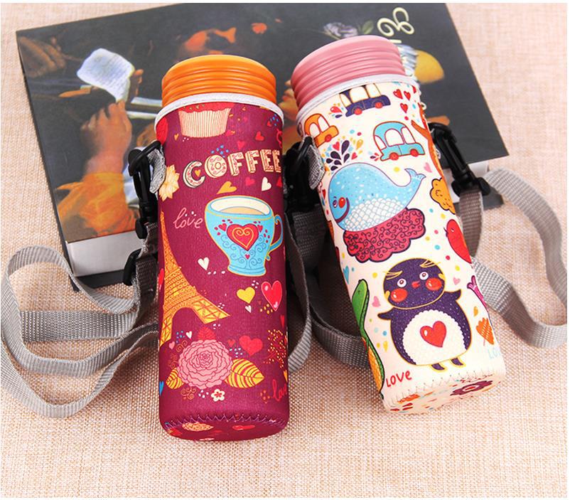 550ml strap thermos cup set cartoon children's water bottle set glass cup heat insulation diving material shoulder strap pot set