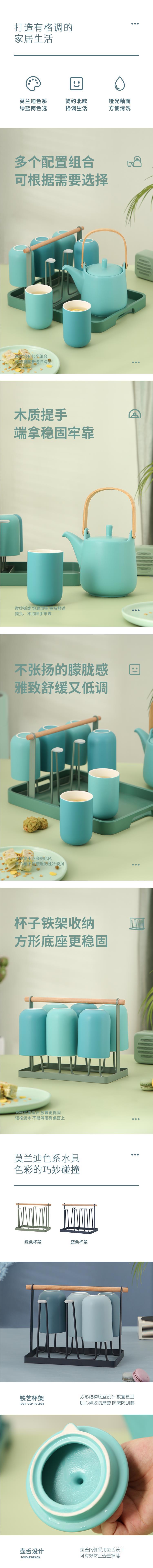 Morandi Nordic Water Set Household Water Cup Set Living Room Tea Cup Simple with Tray 6 Pack Cup Holder