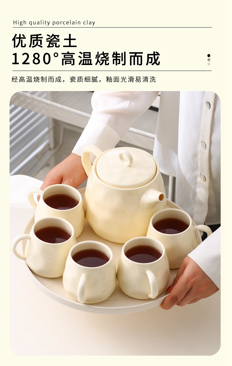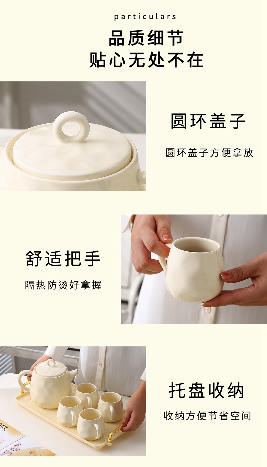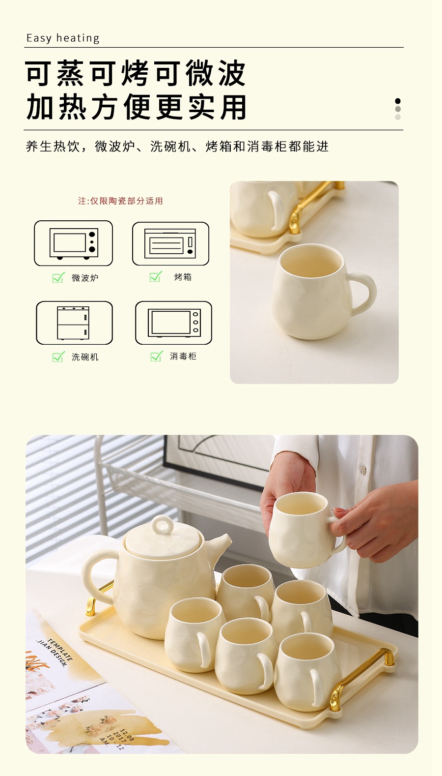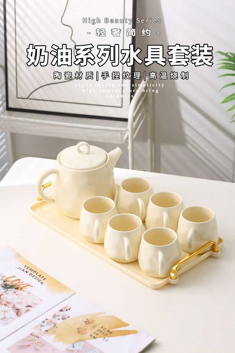 Light luxury household water set with tray ceramic cup water cup high-end family suit living room tea cup tea set flower teapot