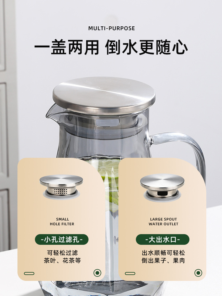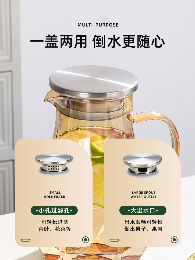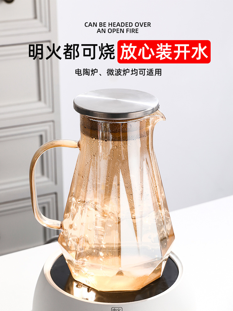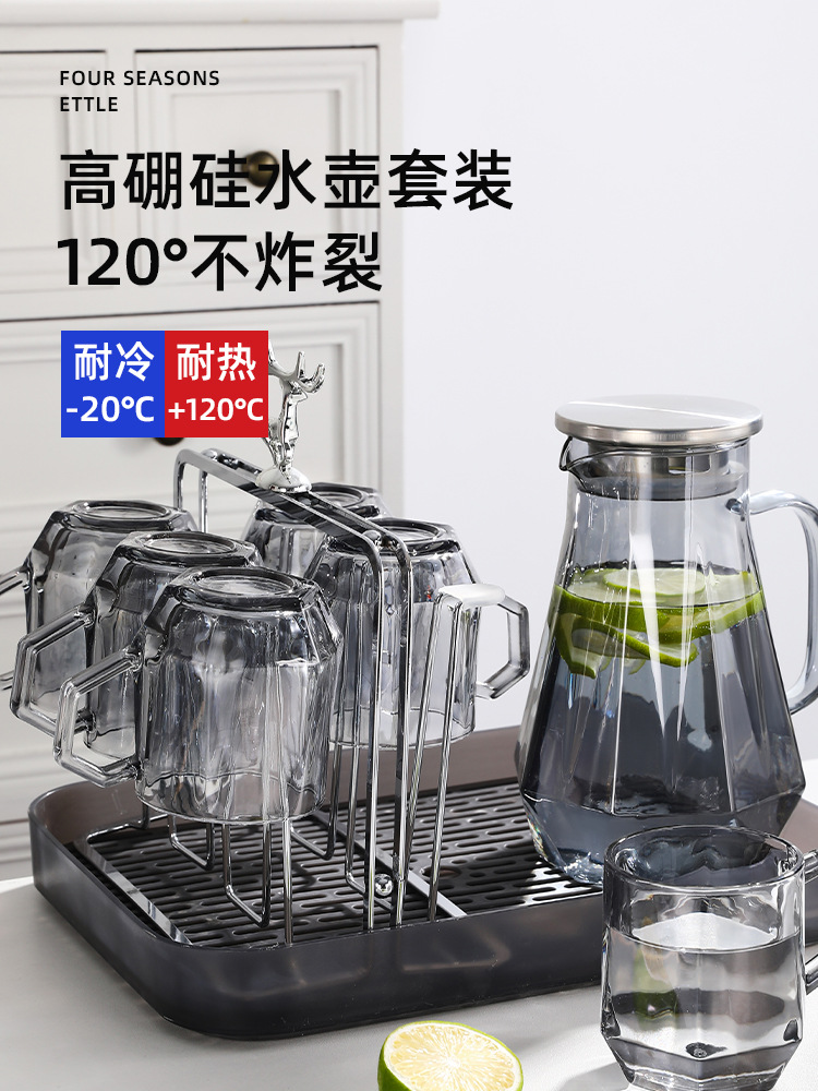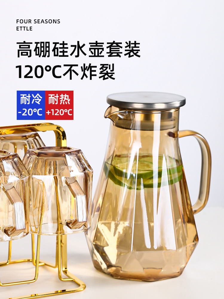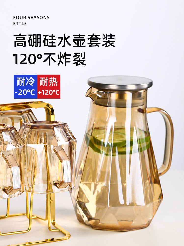 Light Luxury Diamond Borosilicate Glass Kettle Set Household Living Room Hexagon Handle Cup Water Cup