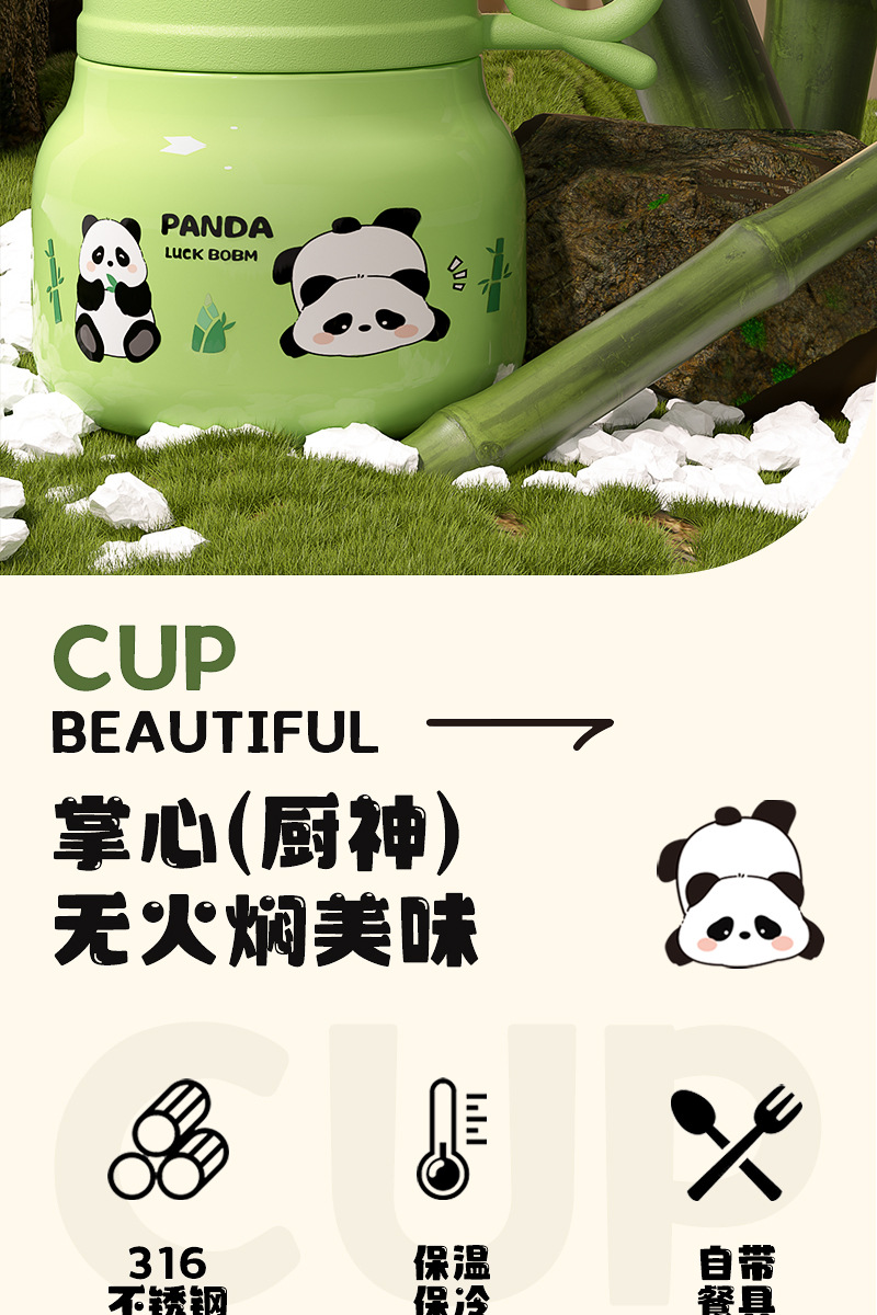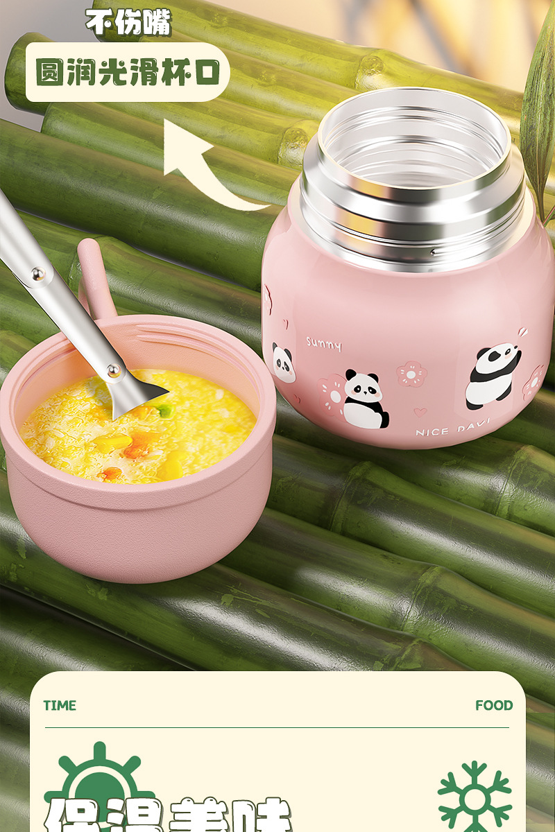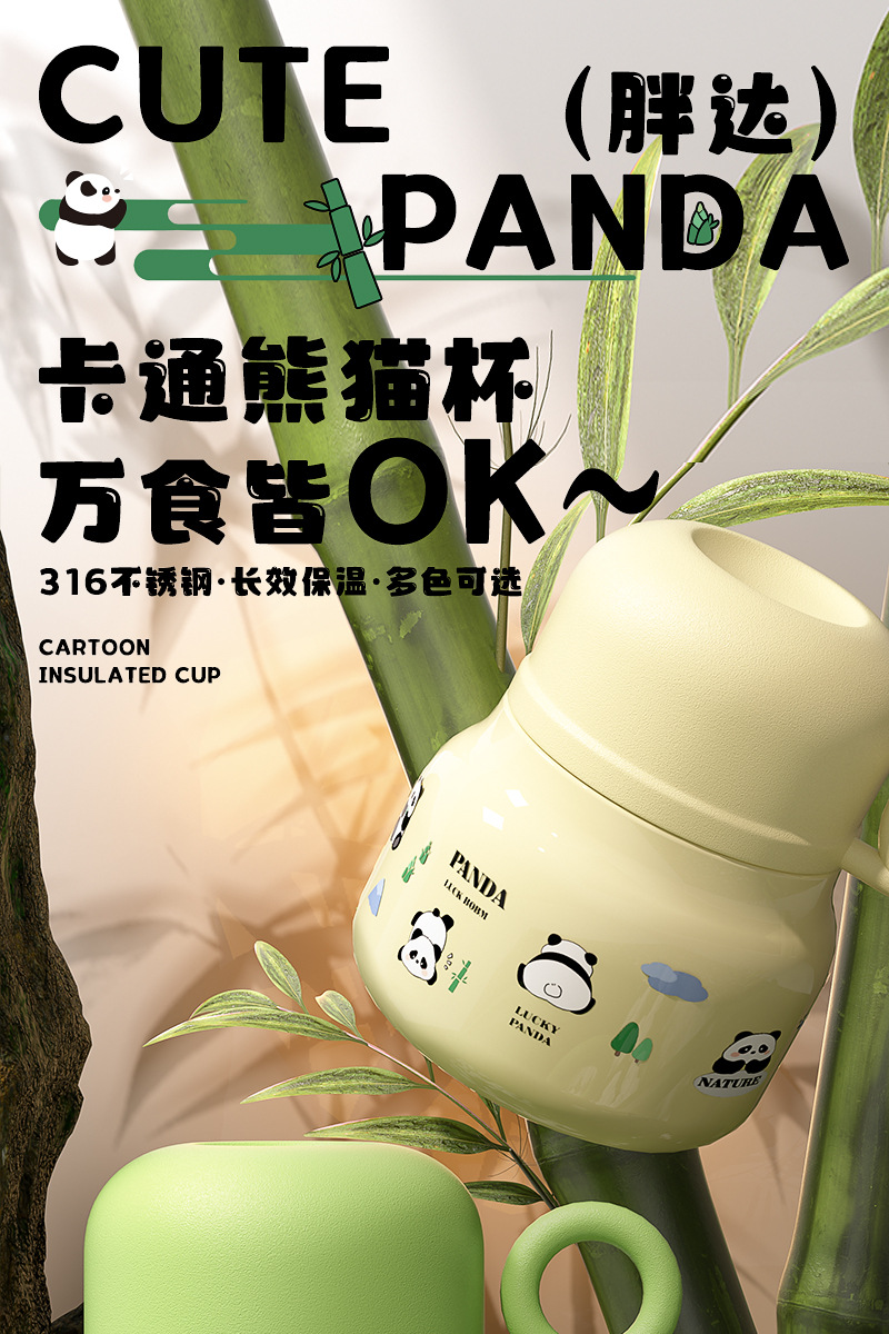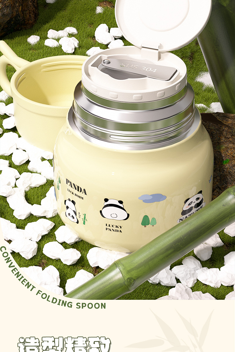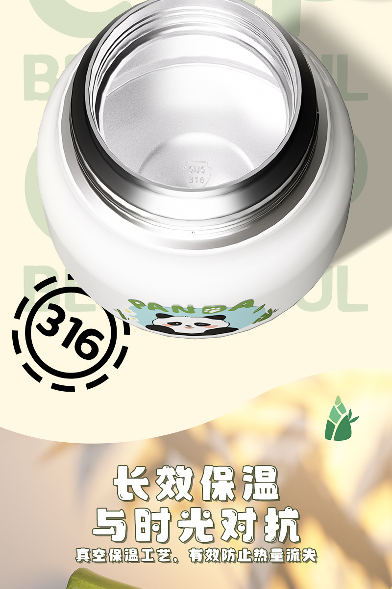 Cute panda bubble braised beaker 316 stainless steel vacuum liner thermos cup with Cup spoon