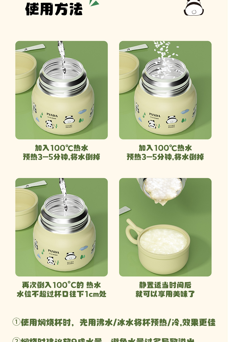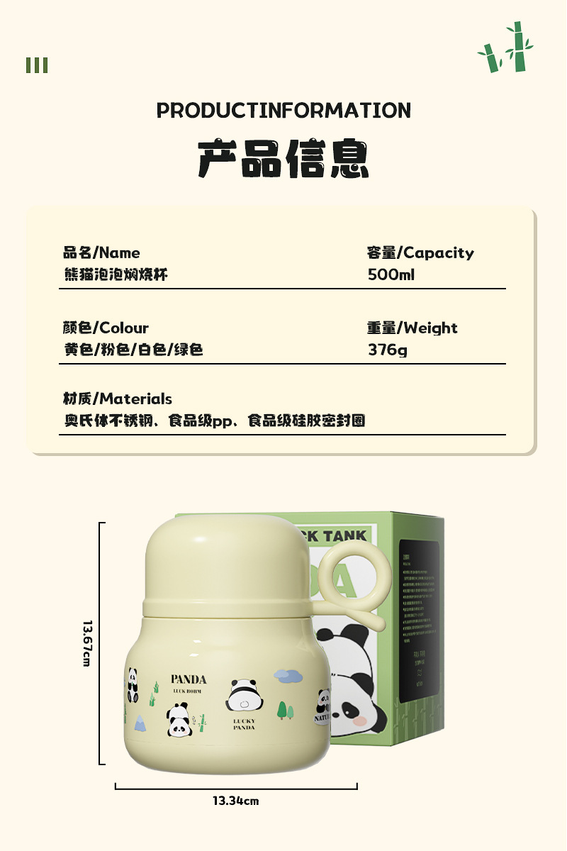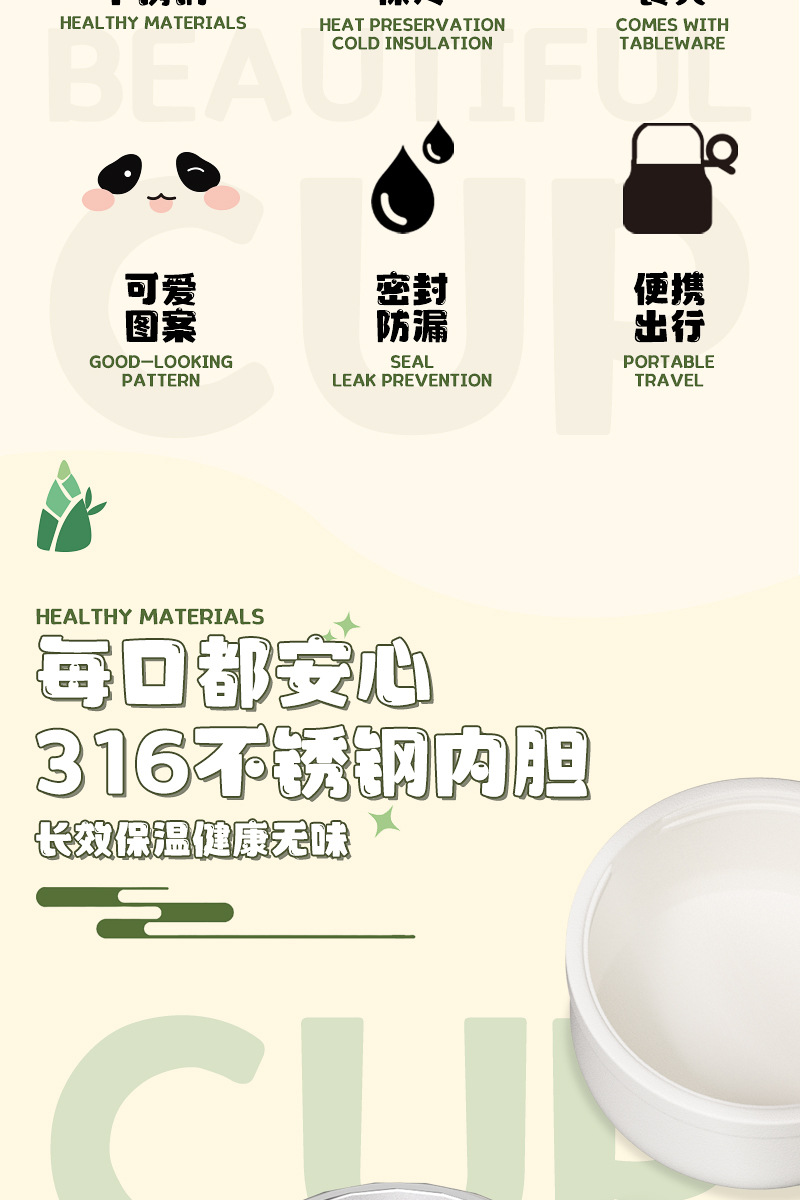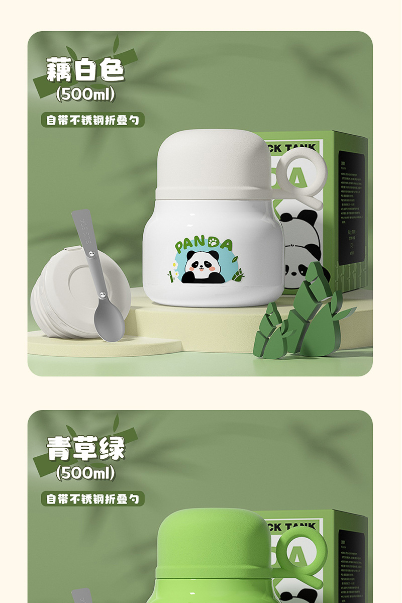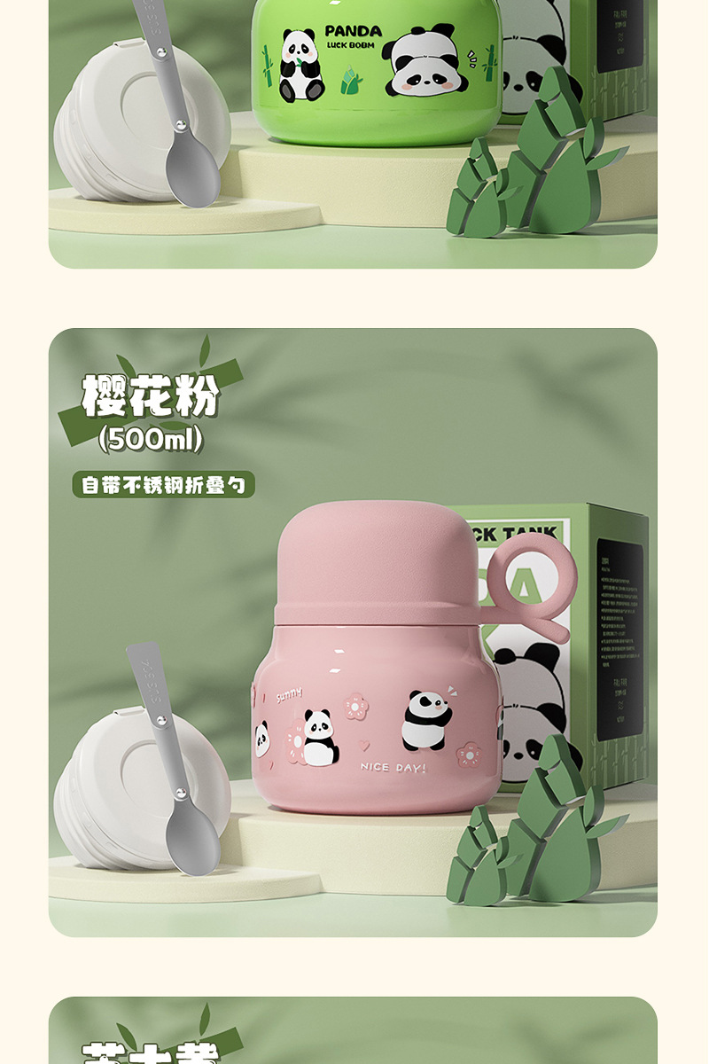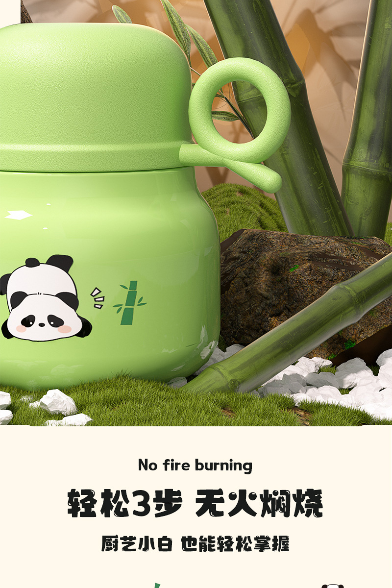 Cute panda bubble braised beaker 316 stainless steel vacuum liner thermos cup with Cup spoon