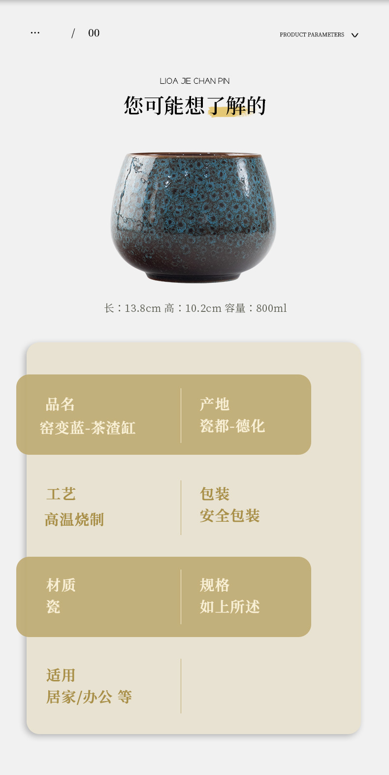 Ceramic Large Tea Dregs Jug Household Desktop Water Pon Jianshui Tea Water Tank Waste Water Bucket Kung Fu Tea Ceremony Accessories Tea Cup Washing