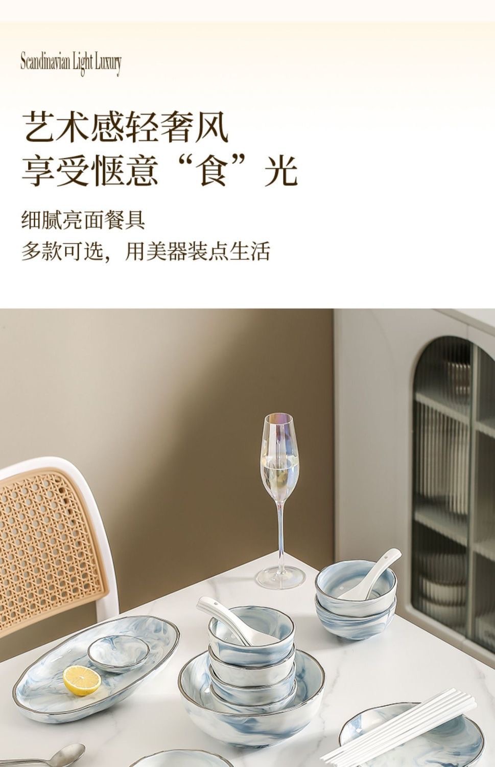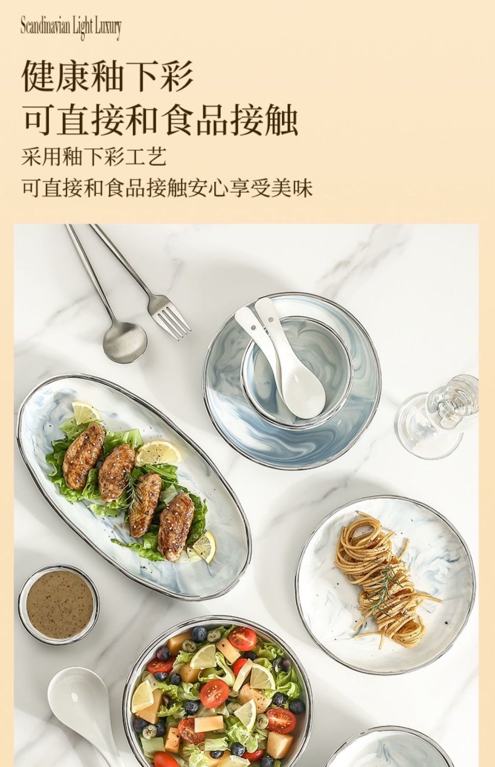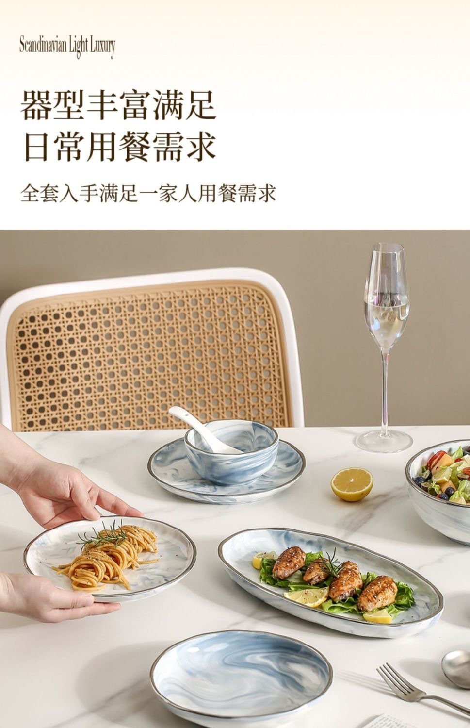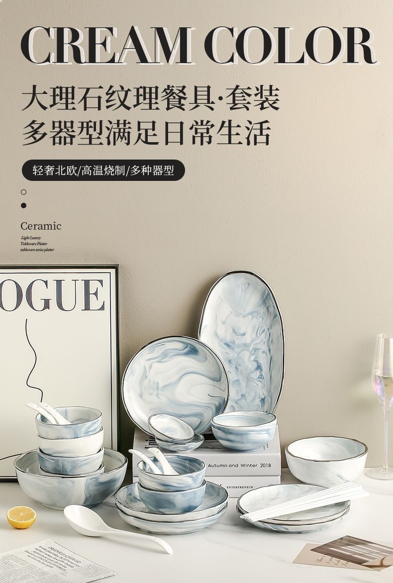 Nordic Light Luxury Marble Pattern Ceramic Tableware Set Household Internet Celebrity Rice Bowl Dish Fish Plate High-end Housewarming Gift