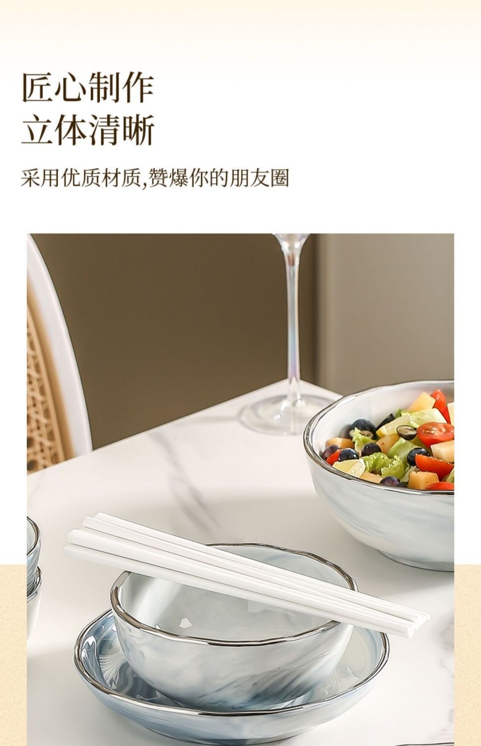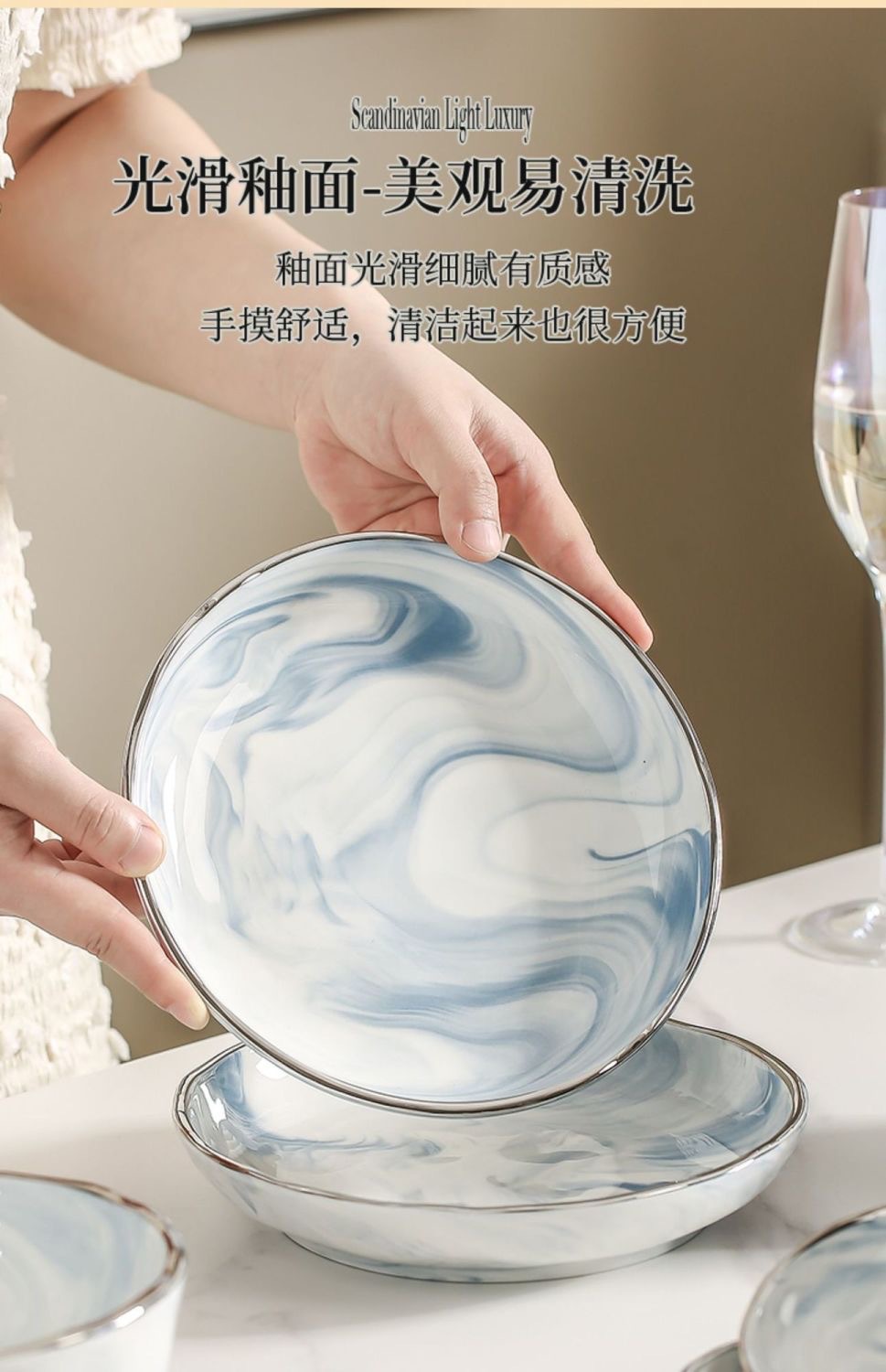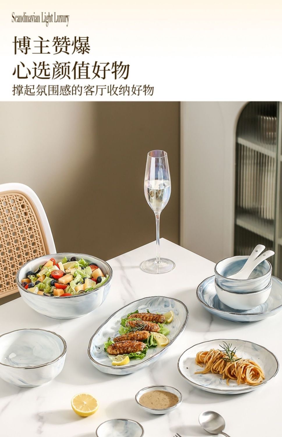 Nordic Light Luxury Marble Pattern Ceramic Tableware Set Household Internet Celebrity Rice Bowl Dish Fish Plate High-end Housewarming Gift